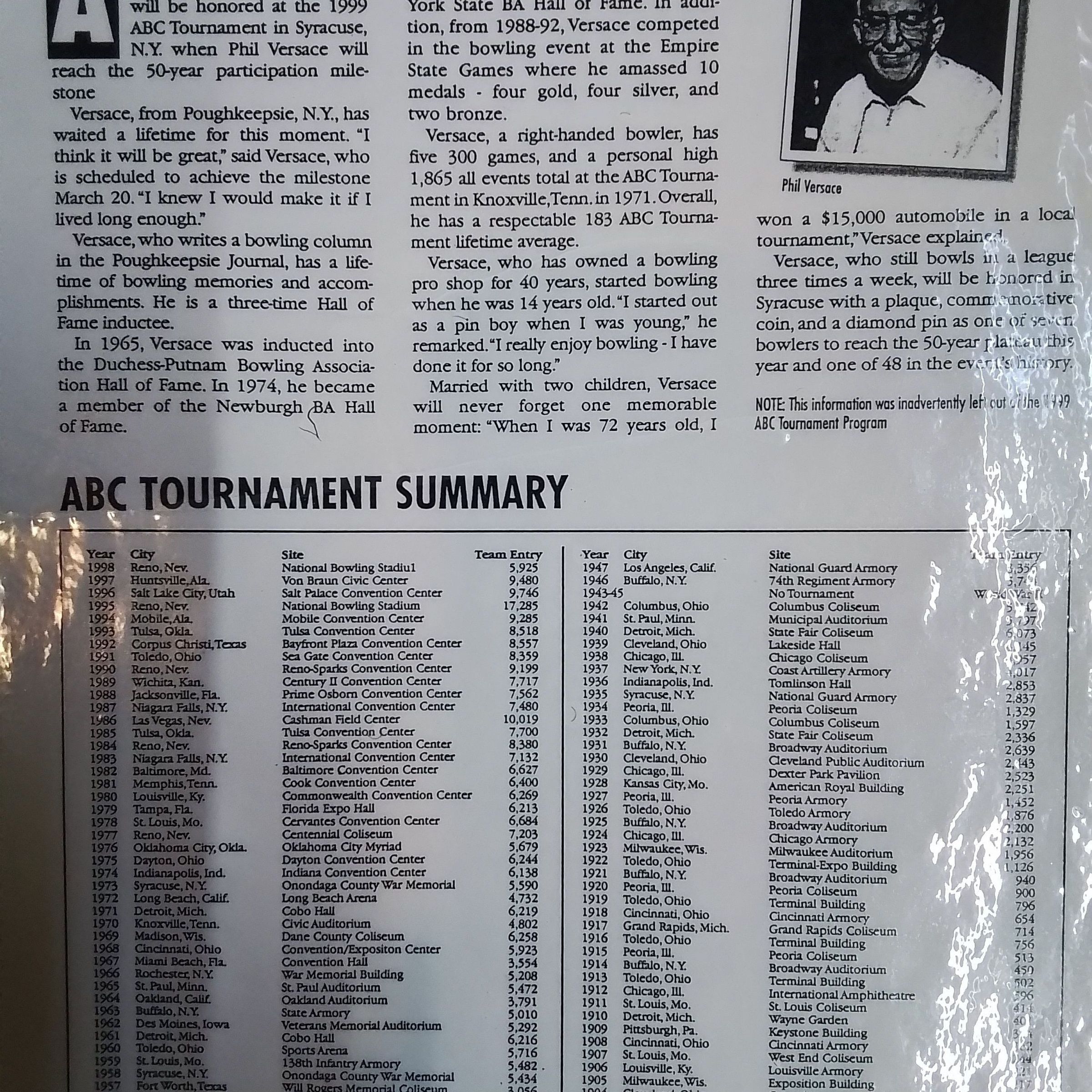 Newspaper article on Phil Versace's ABC tournament accomplishments aEntry/Object ID