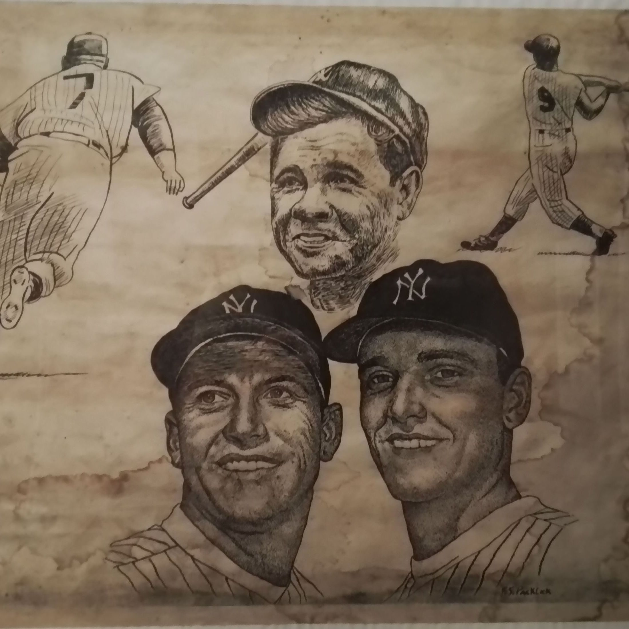 Illustrations of Babe Ruth, Mickey Mantle, Roger Maris.
