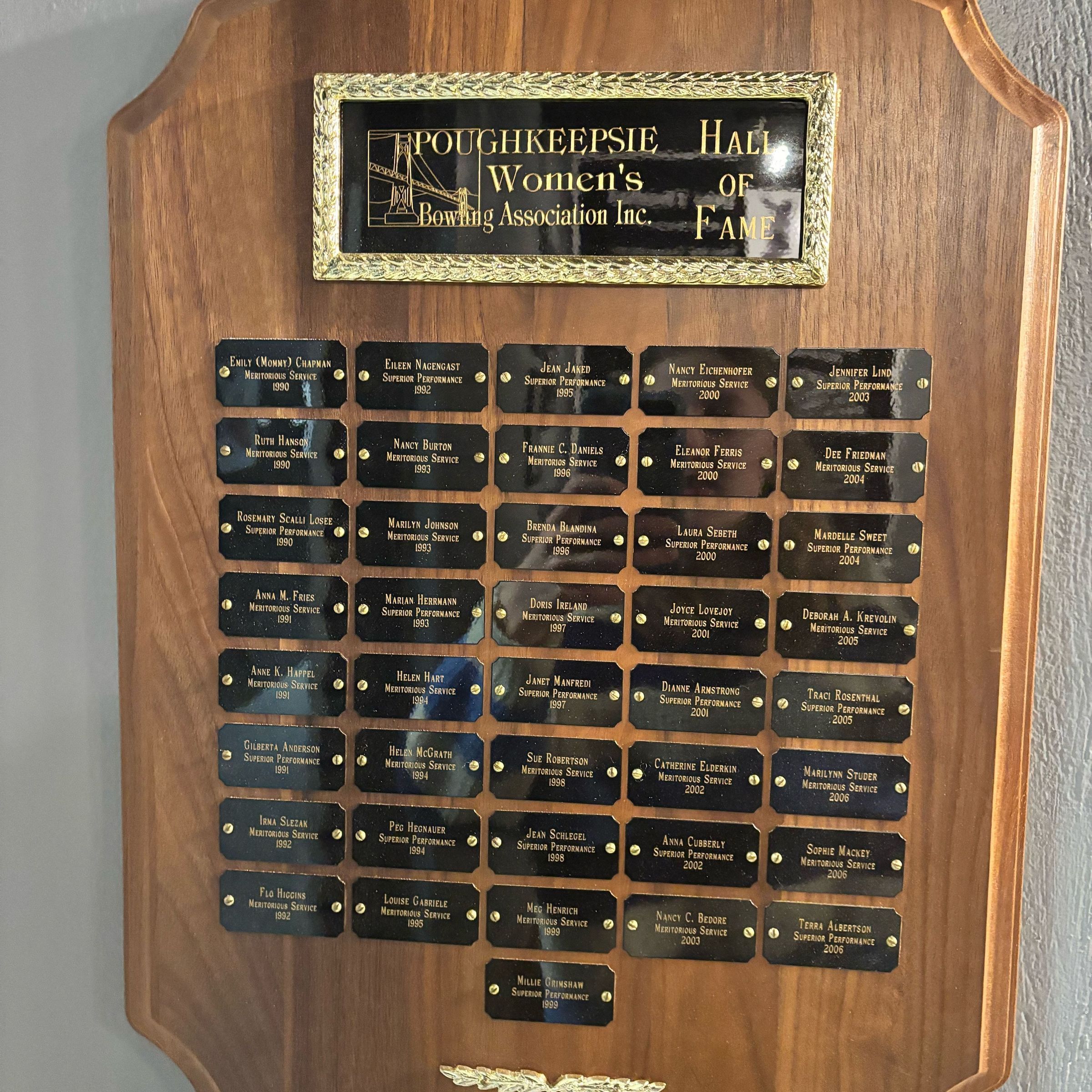 Plaque denoting Poughkeepsie Women’s Bowling Hall of Fame members