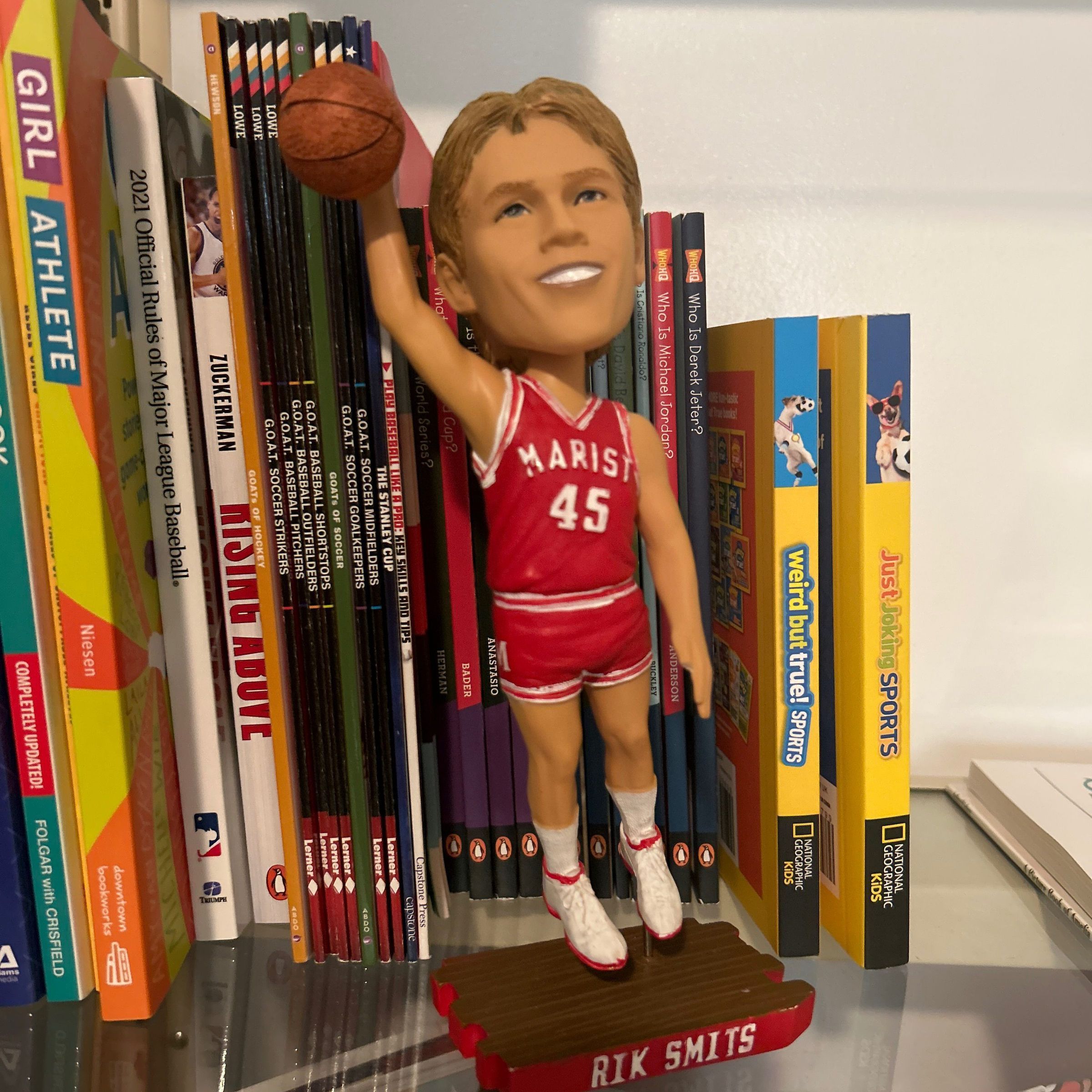 Bobblehead of Marist star player Rik Smits in a Marist uniform holding a basketballCollection