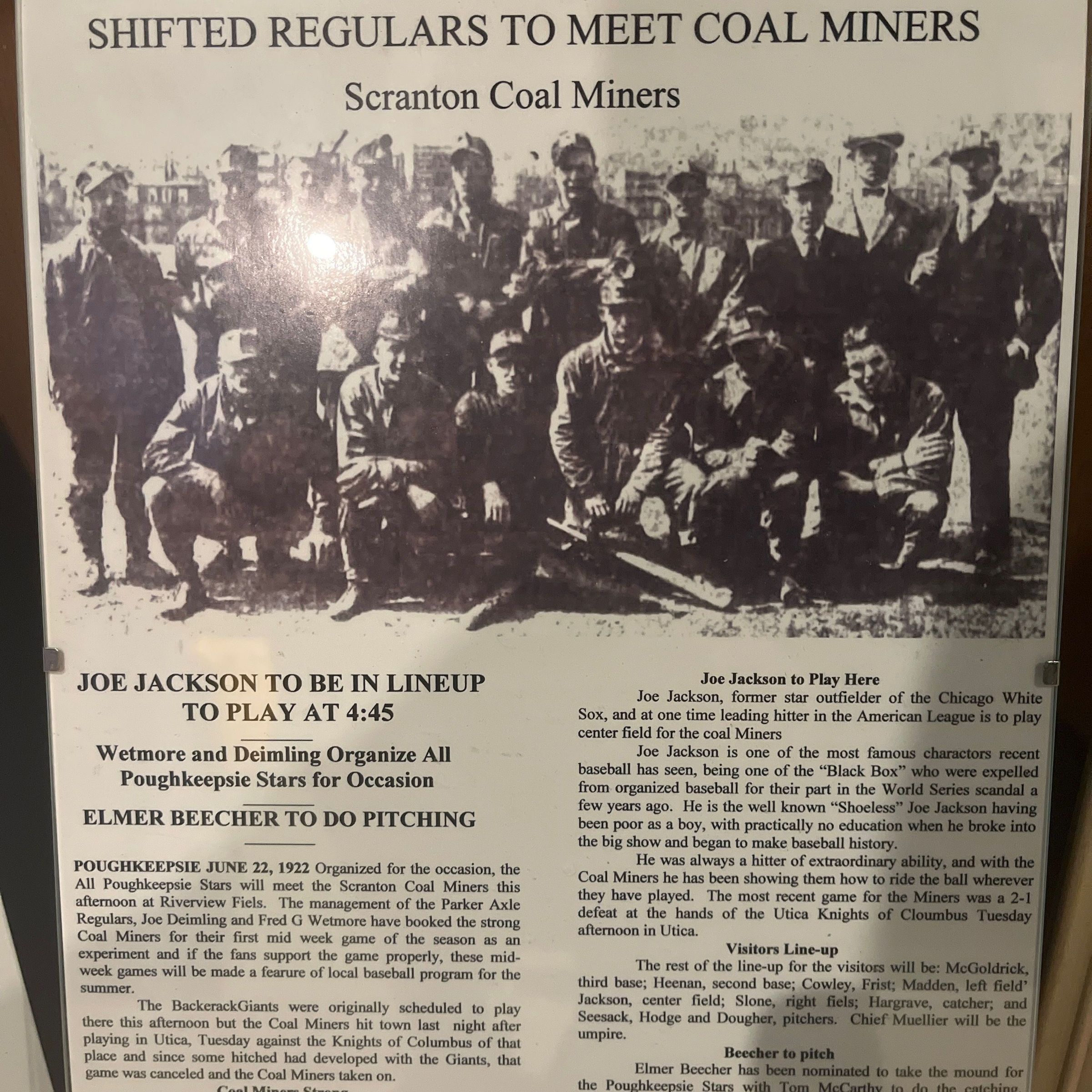 On June 22, 1922, former star outfielder "Shoeless" Joe Jackson would be playing for the Coal Miners