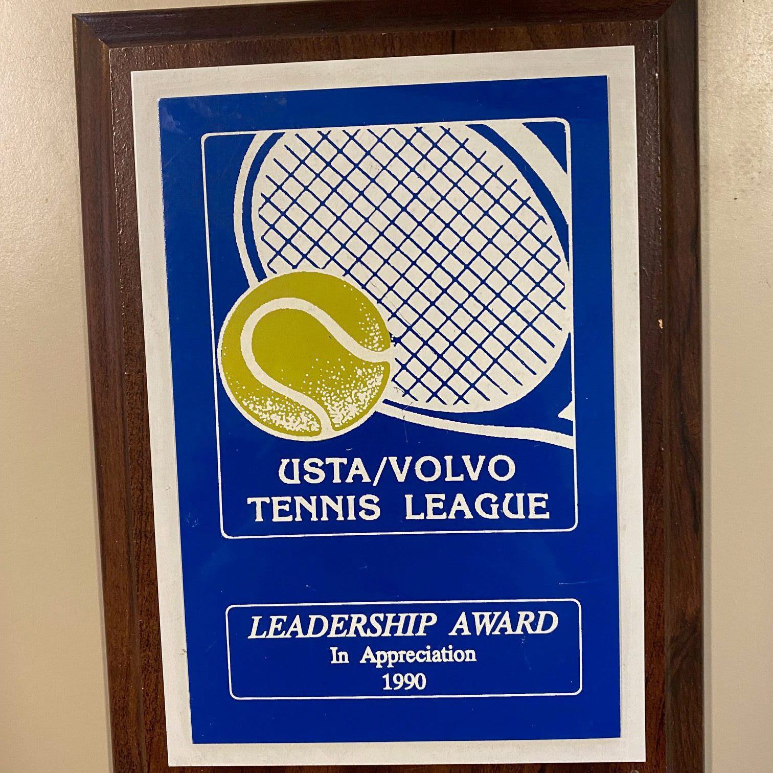 " Usta/ Volvo Tennis League Leadership award in appreciation 1990"