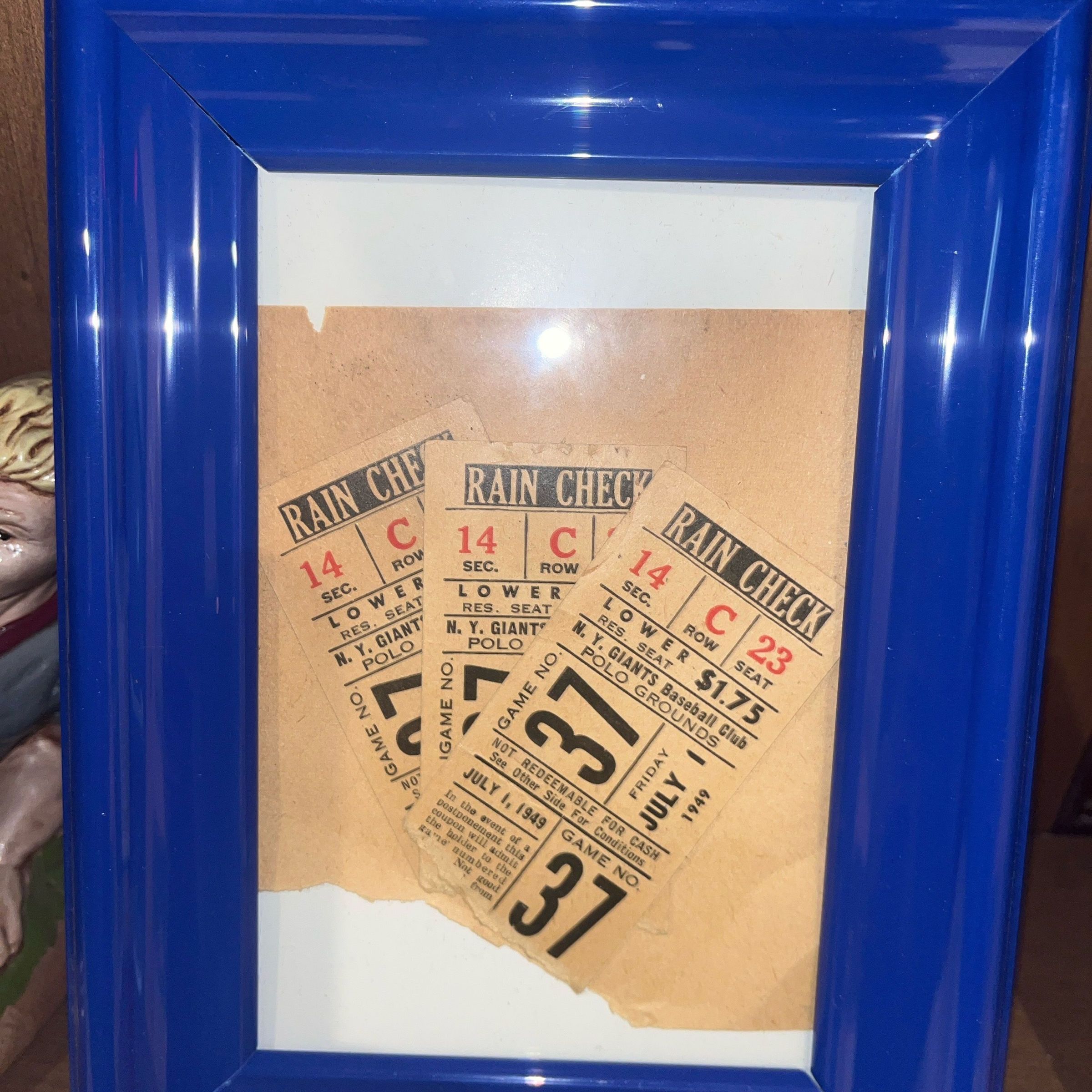 Three rain check from a New York Giants baseball game at the Polo Grounds on July 1, 1949.