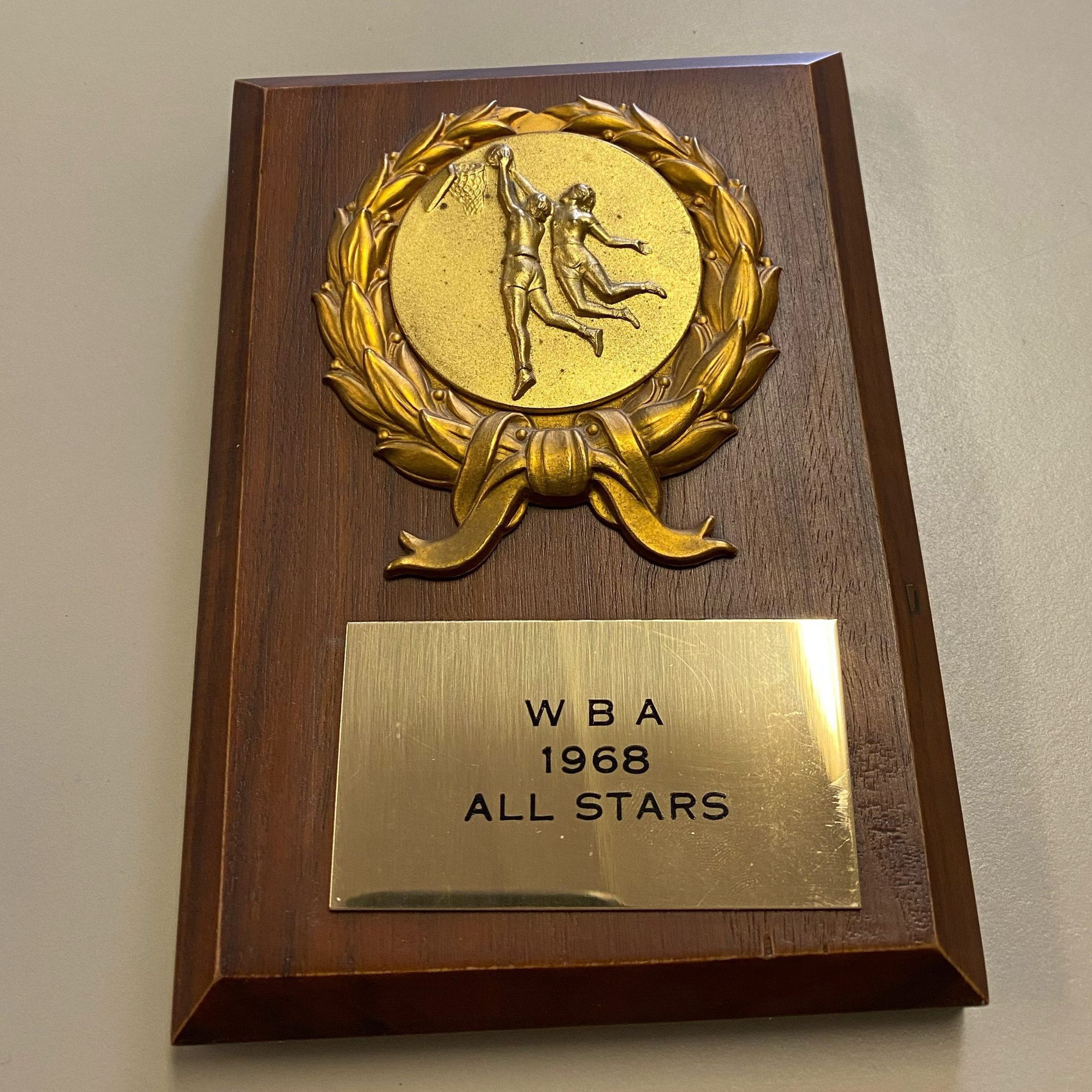 Wooden plaque given to Pat Zerbe in 1968 acknowledging her as a WBA All StarCollection