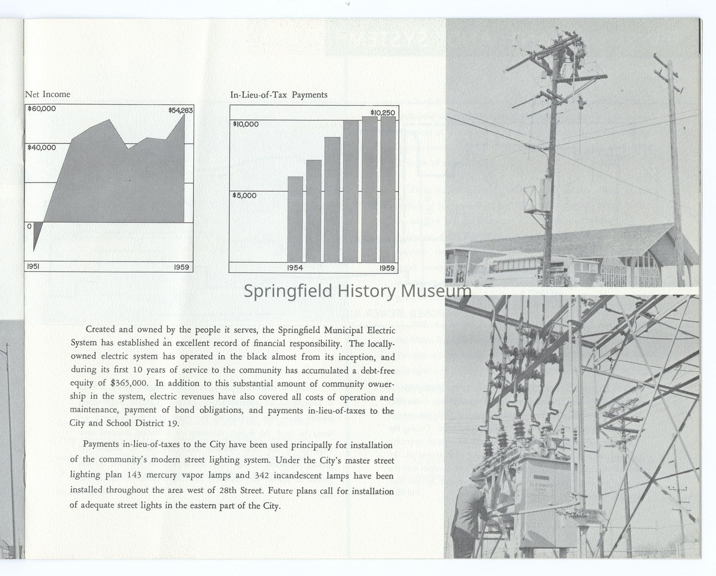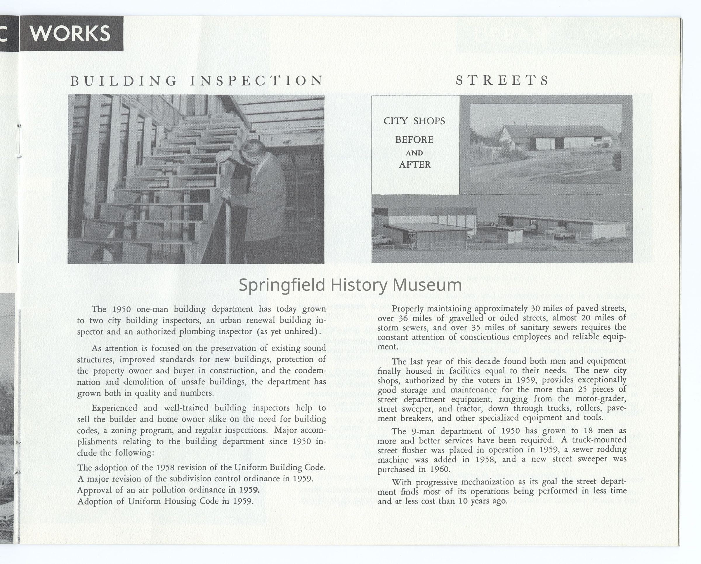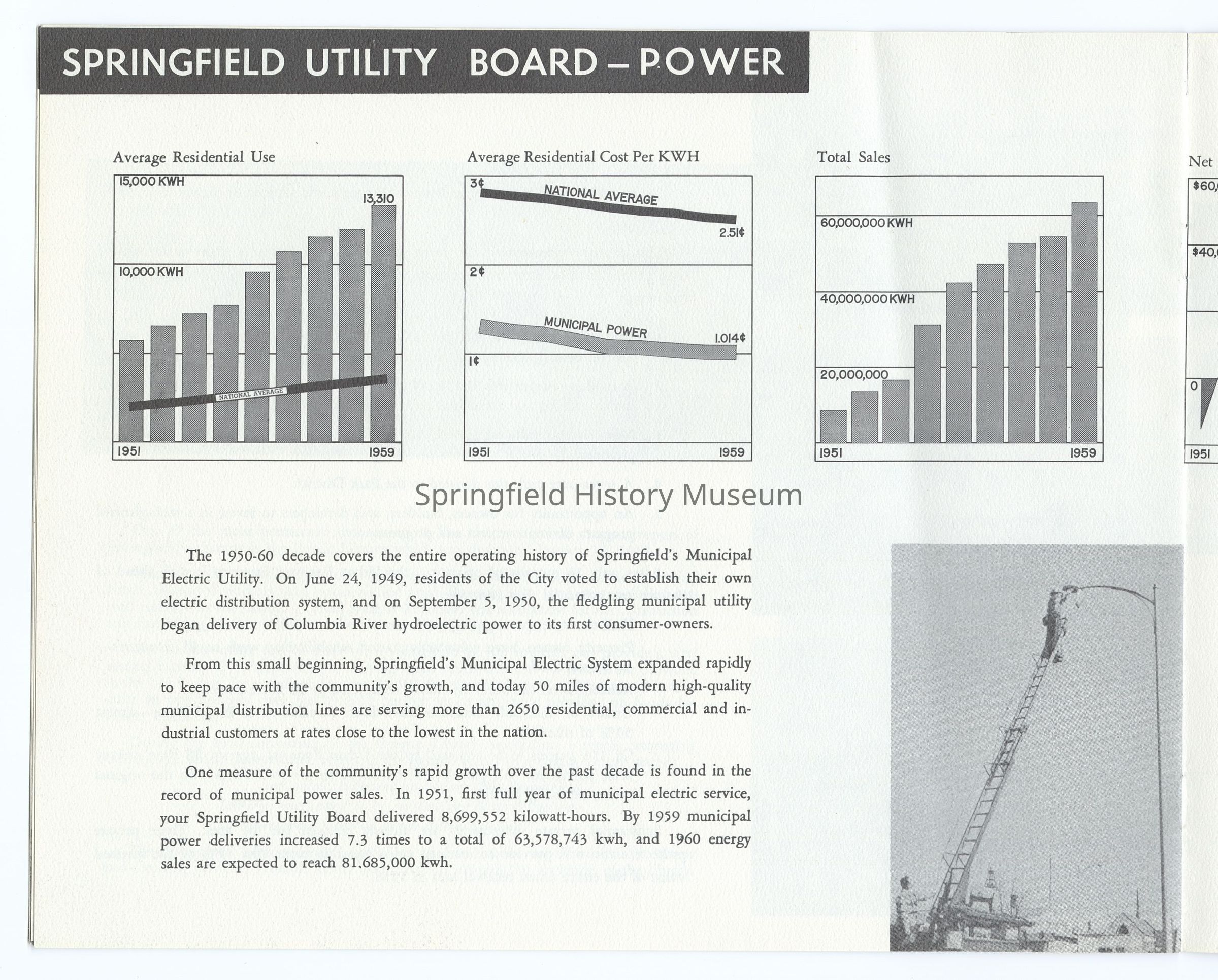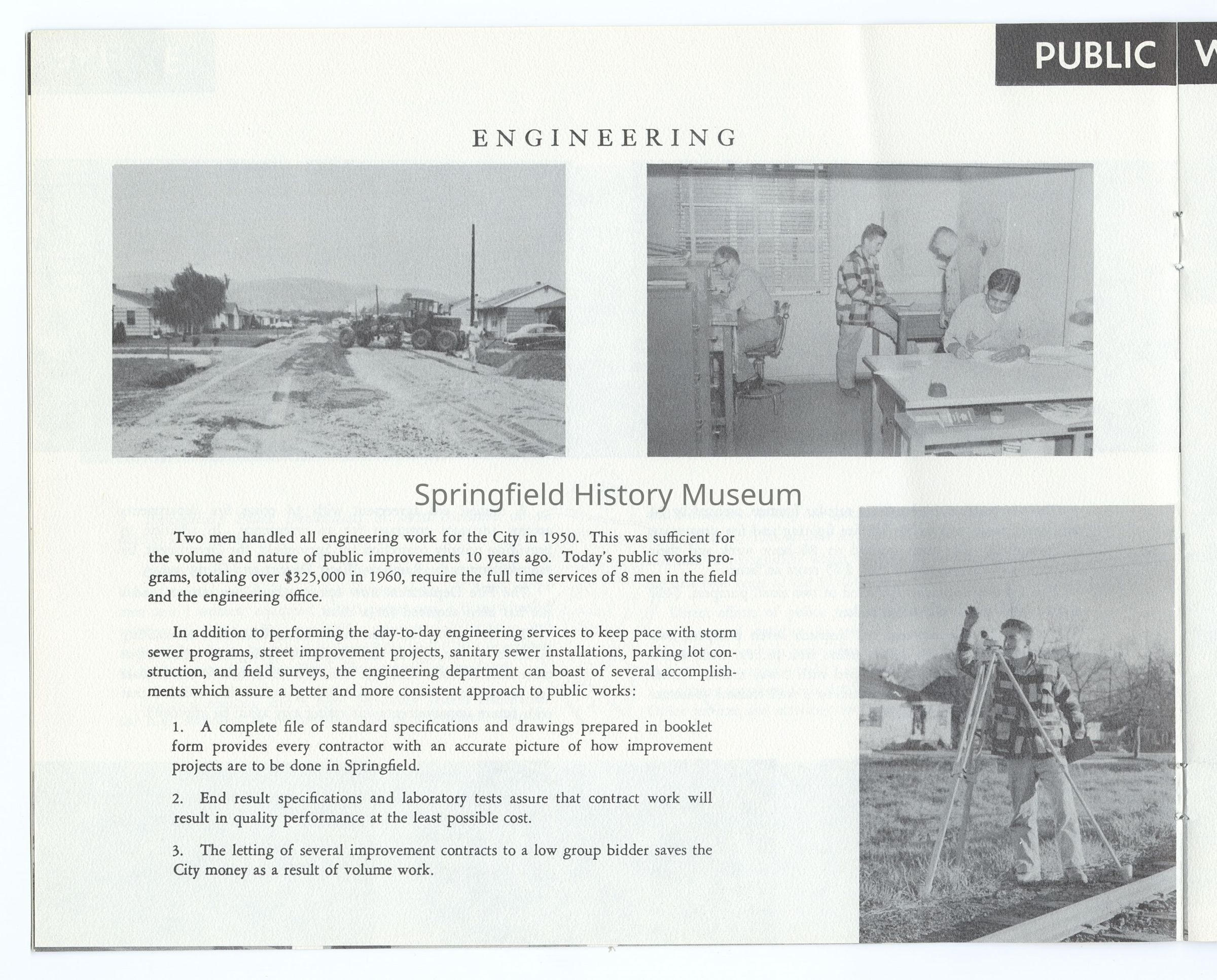10 Year Progress Report on Springfield, Oregon, 1950-1960, compiled by the City of Springfield and the Springfield Utility Board on the occasion of Springfield's 75th anniversary as a city. Appr. 20 pages.Context