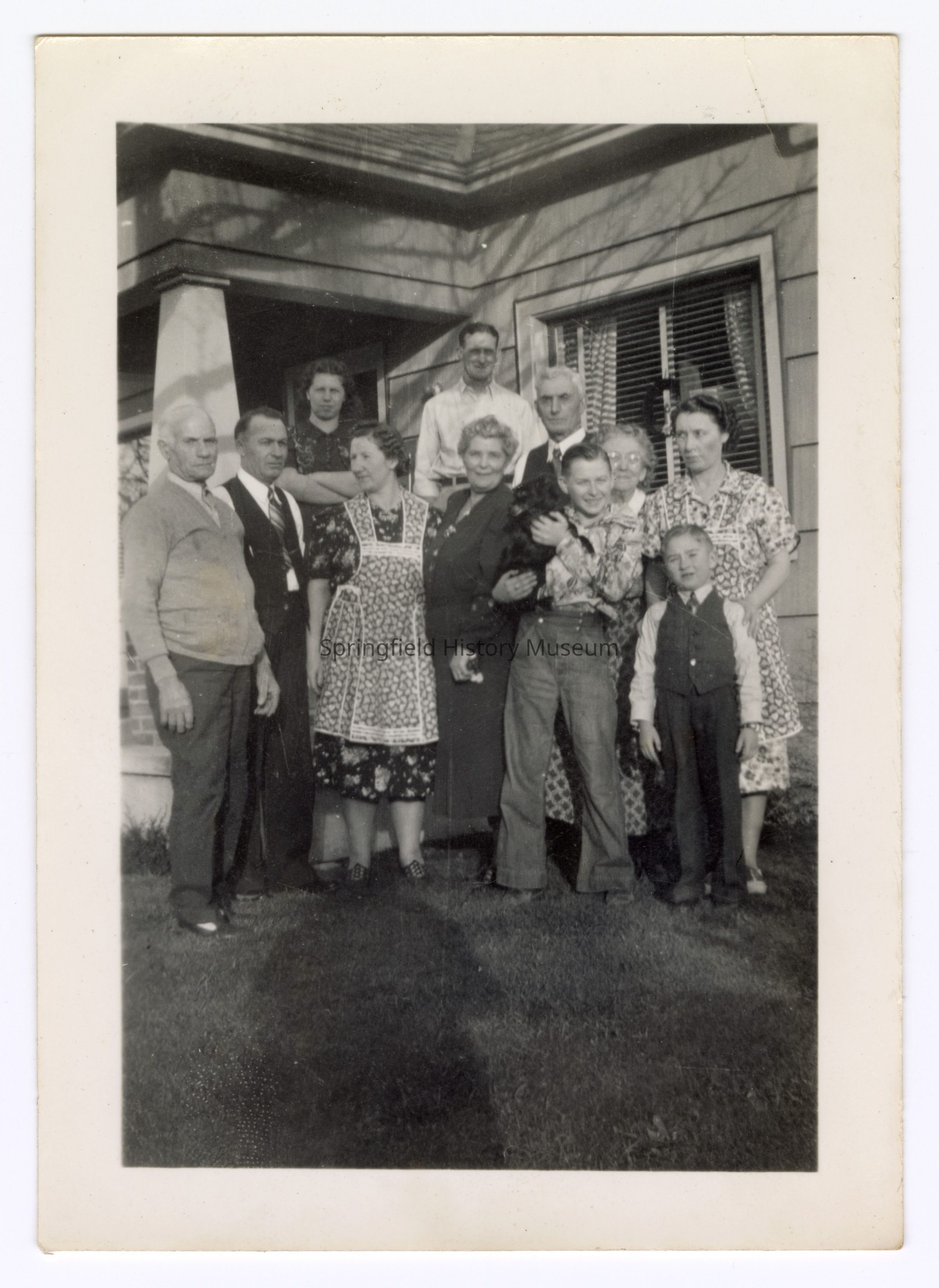 Group photograph in front of a house, undated