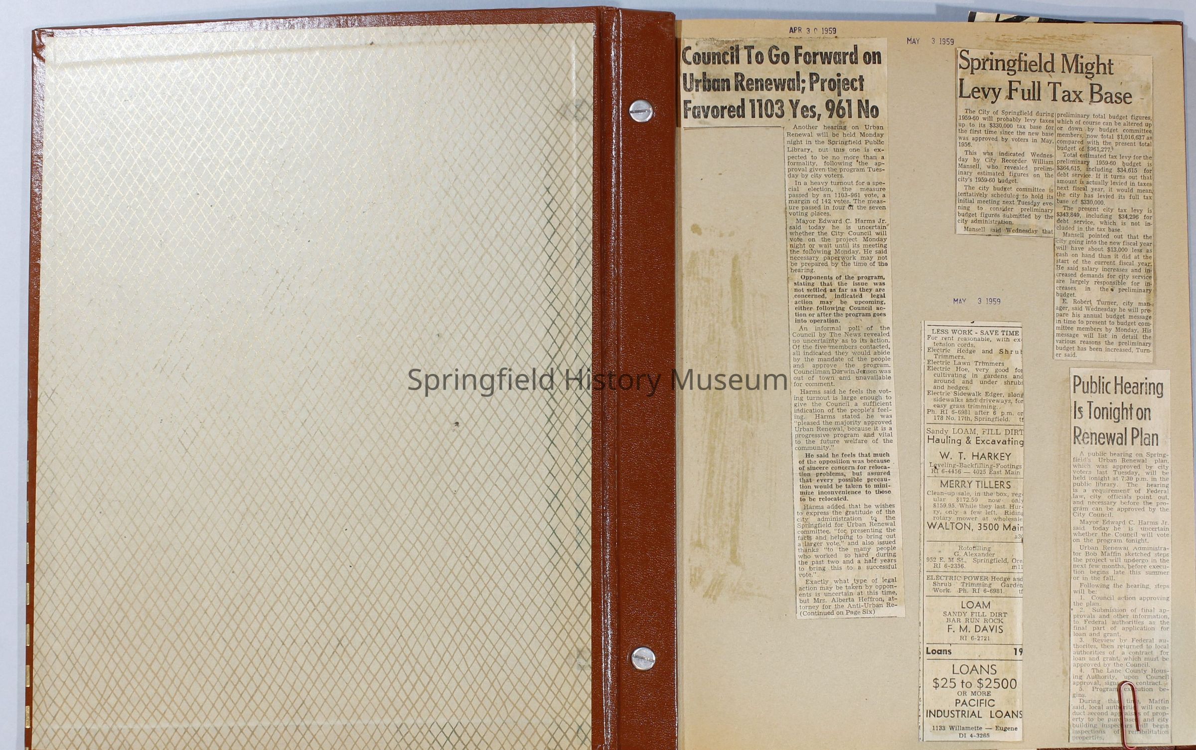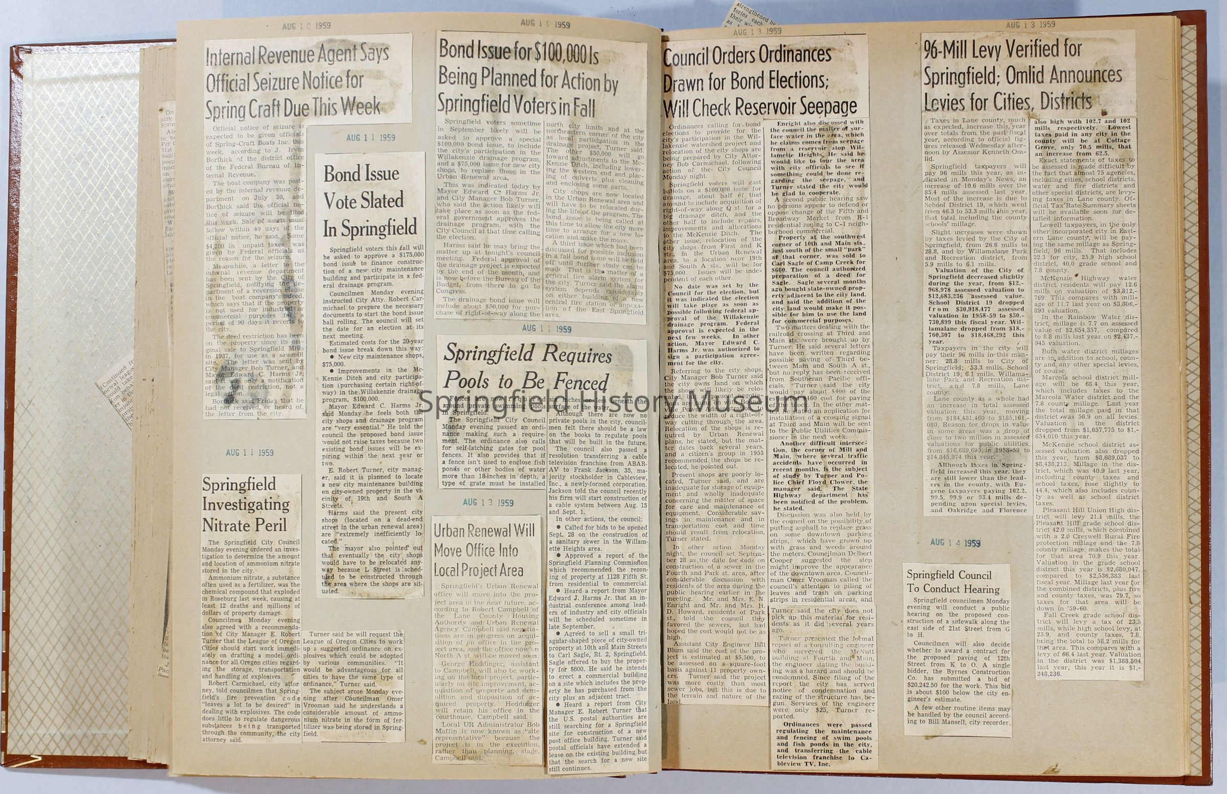 Scrapbook, City of Springfield, April 1959 through February 1960. Includes newspaper clippings with datesCollection
