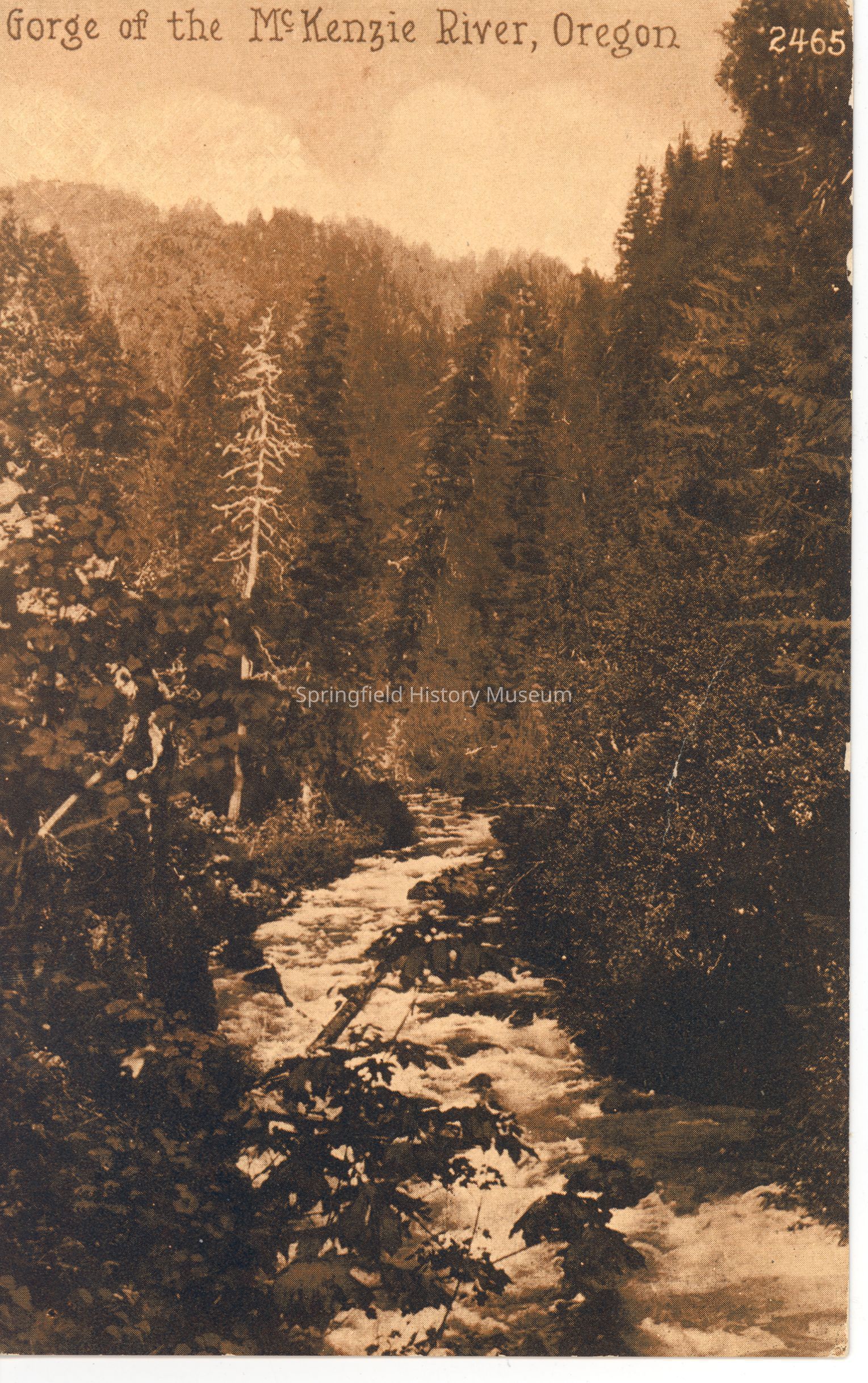 Transcribed inscription on front: "Gorge of the McKenzie River, Oregon 2465"Collection