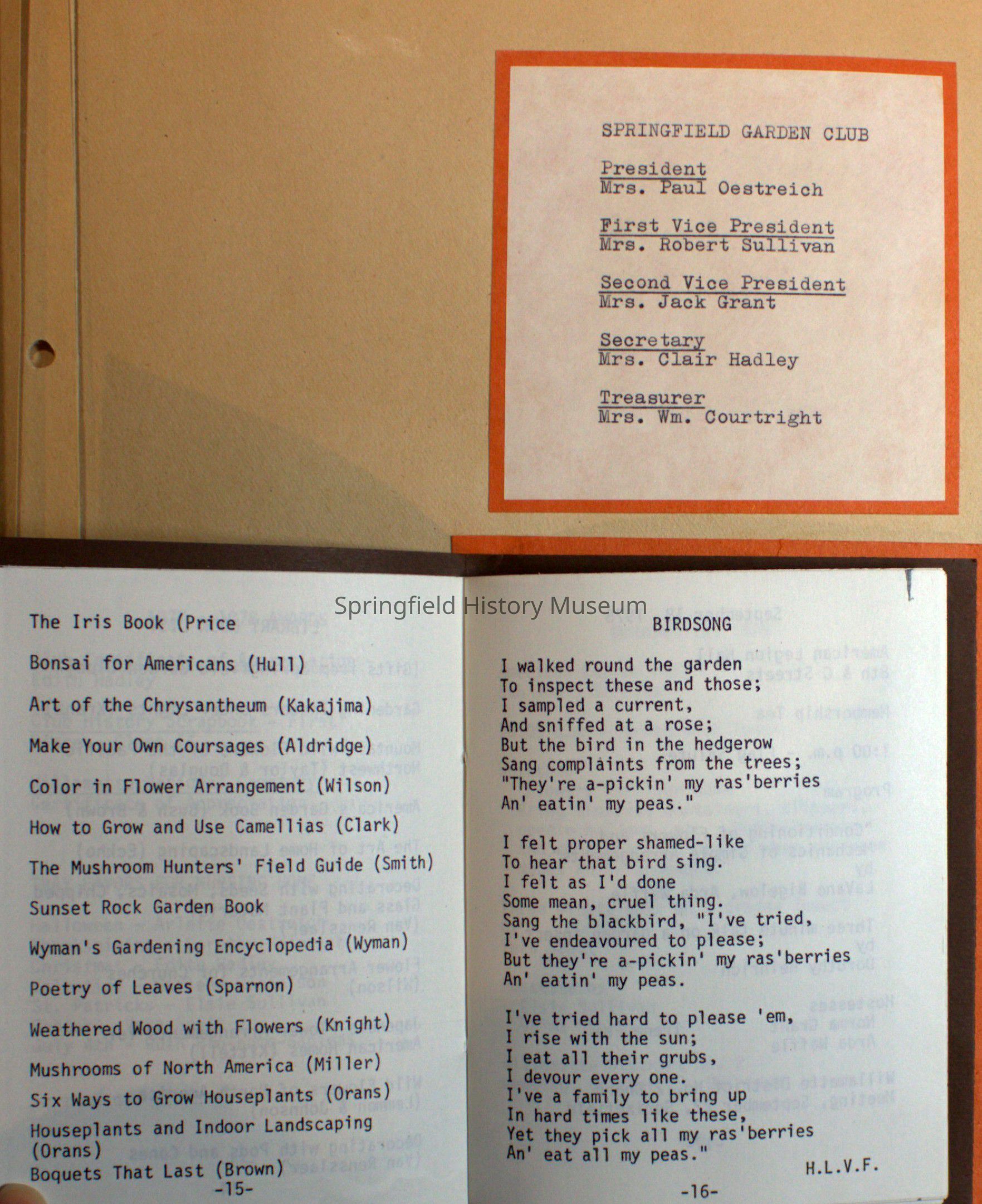 Springfield Garden Club Scrapbook, 1978-1979: contains club history, overview of activities, club rules etc.Collection