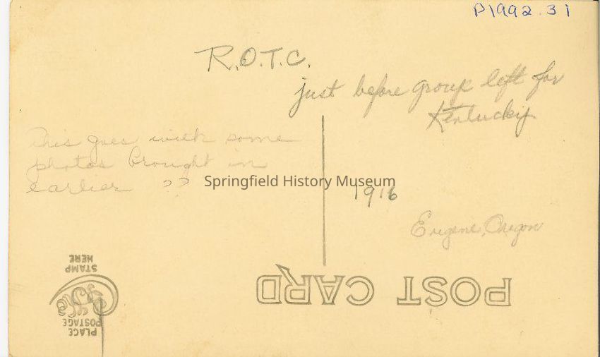 A Eugene R.O.T.C. group just before they left to go to Kentucky; 1916.