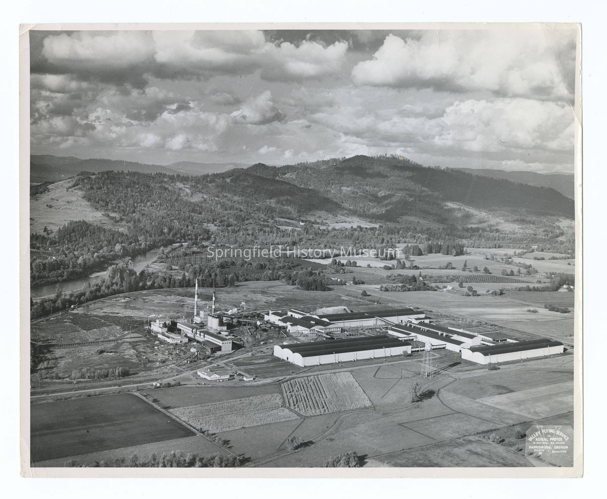 Aerial photograph of Booth Kelly Lumber Mill, Springfield, undated.Photograph Details