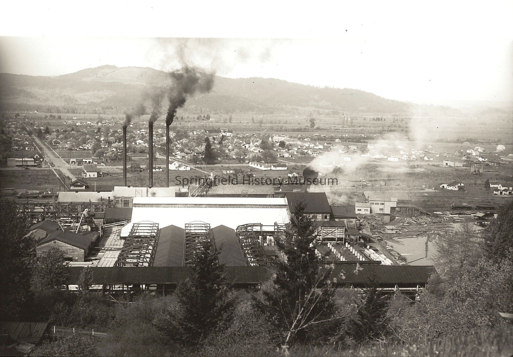 Booth-Kelly mill taken from south hills probably near reservoirs on Willamette Heights.