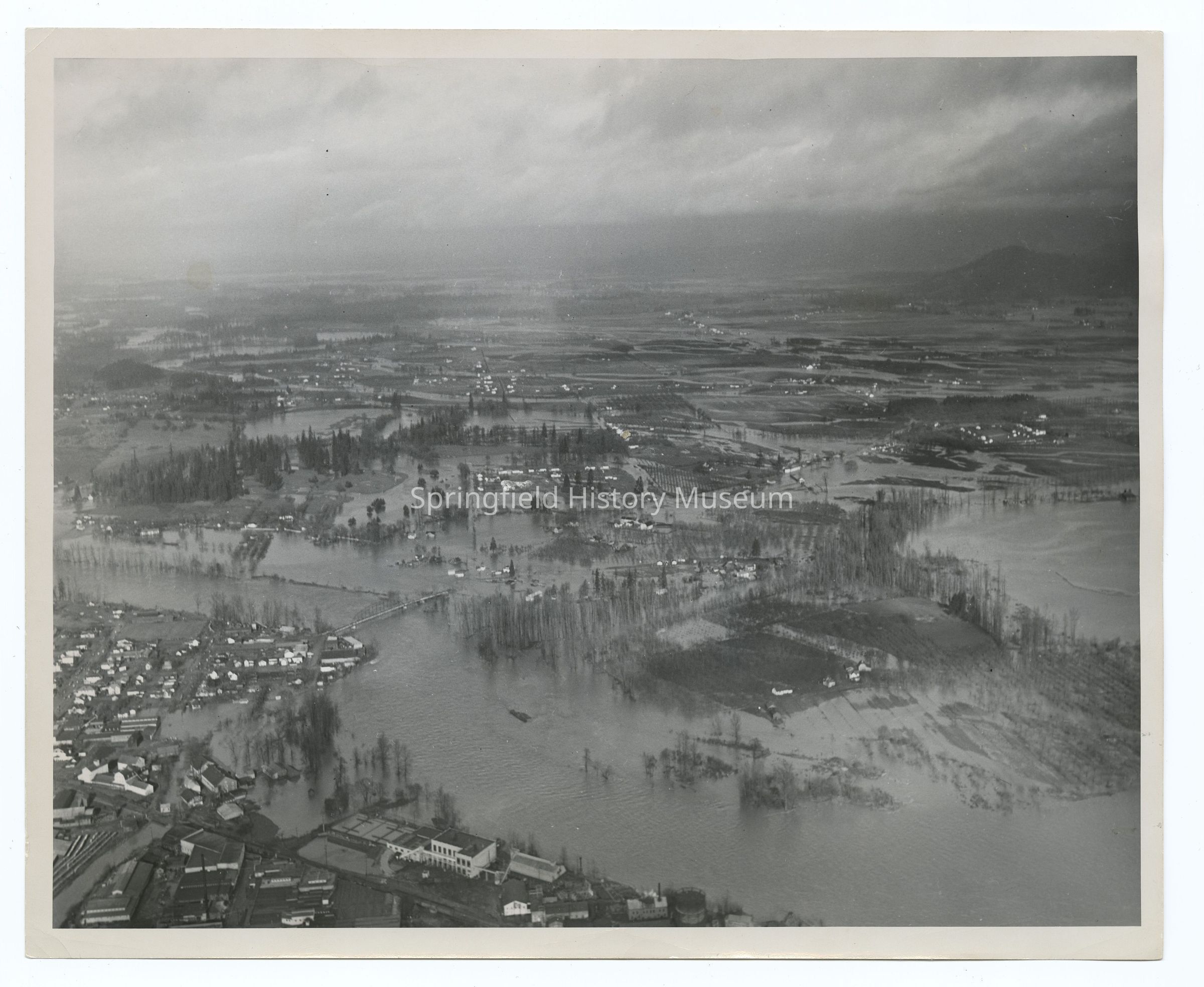 Aerial photograph of flooding at Ferry Street Bridge area, Springfield-Eugene, Oregon, 29/12/1945Photograph Details