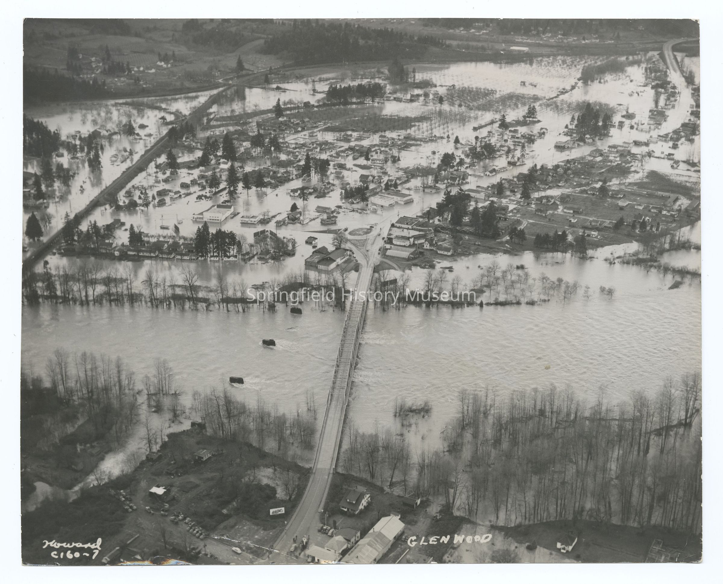 Aerial photograph of flooding at Glenwood, Springfield, undated, circa 1945Photograph Details