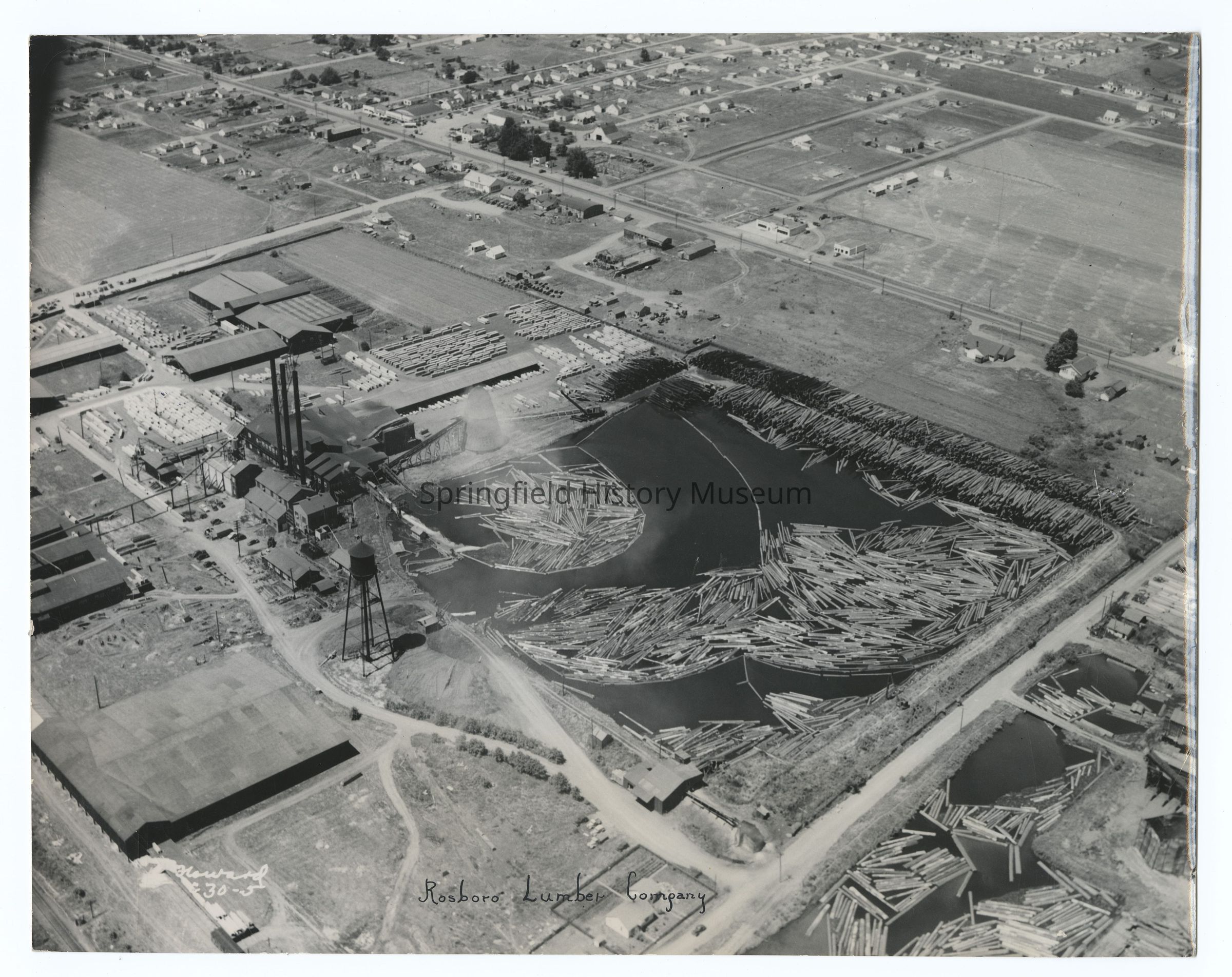 Aerial photograph of Rosboro Lumber Company and area, Springfield, 1946Entry/Object ID