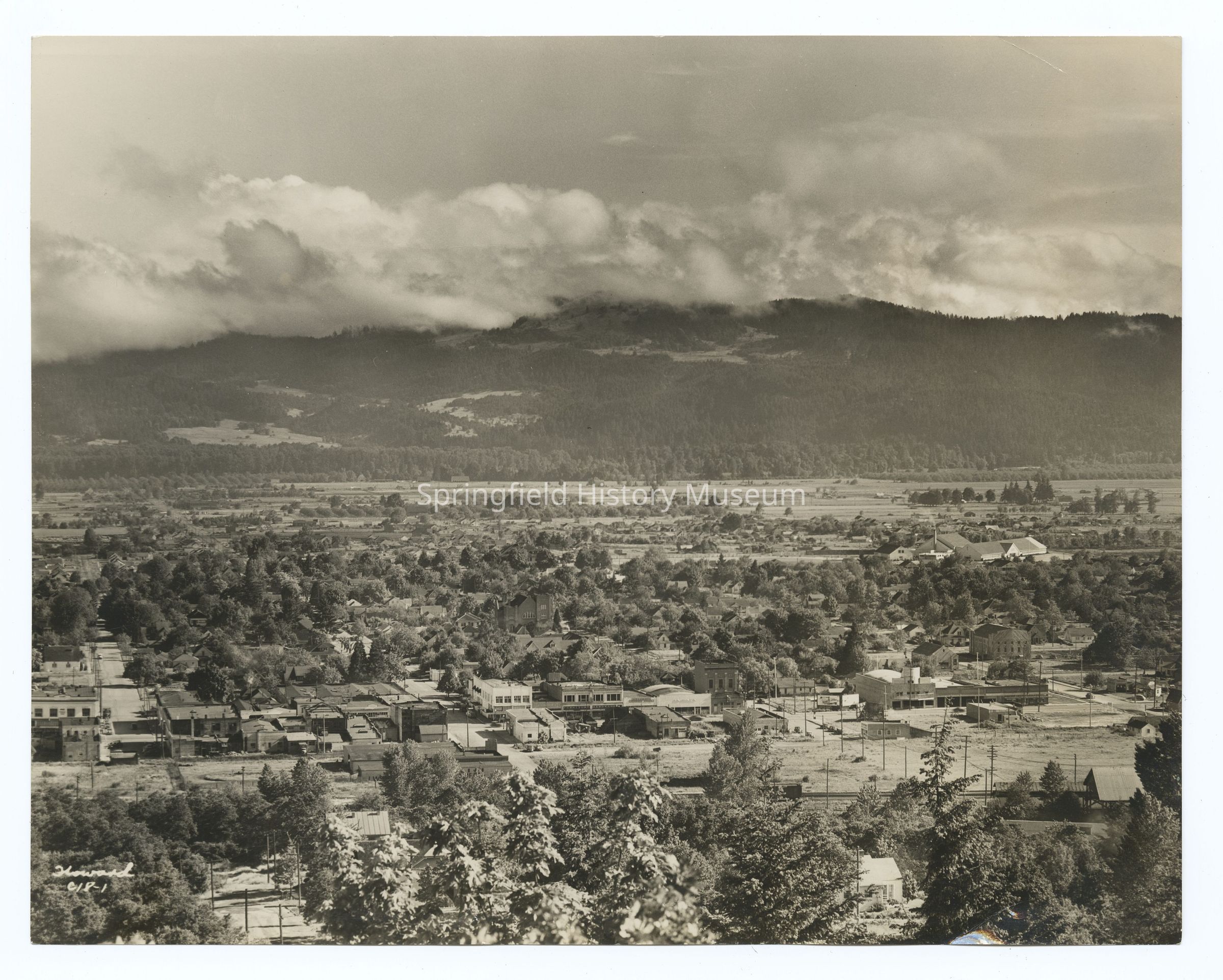 Aerial photograph of Springfield area and Main Street, South to North view, Oregon, undated, circa 1946Photograph Details