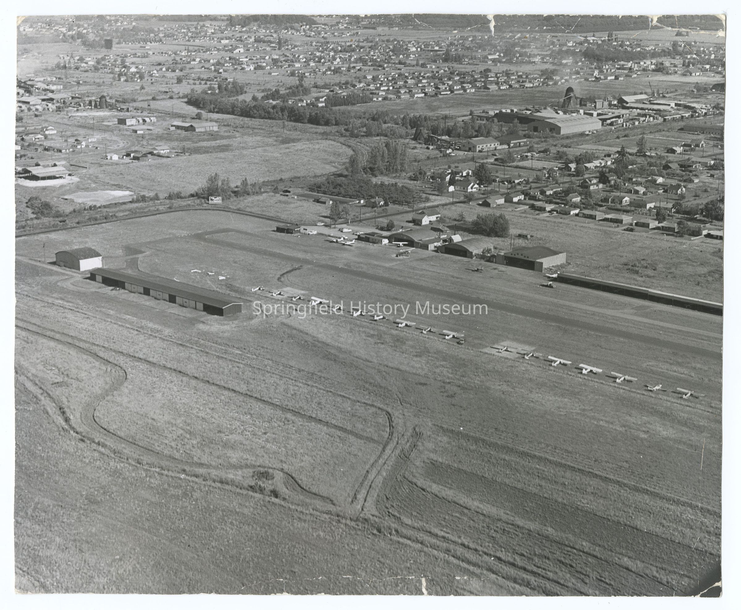 Aerial photograph of the Springfield airport and area, Oregon, circa 1960Photograph Details
