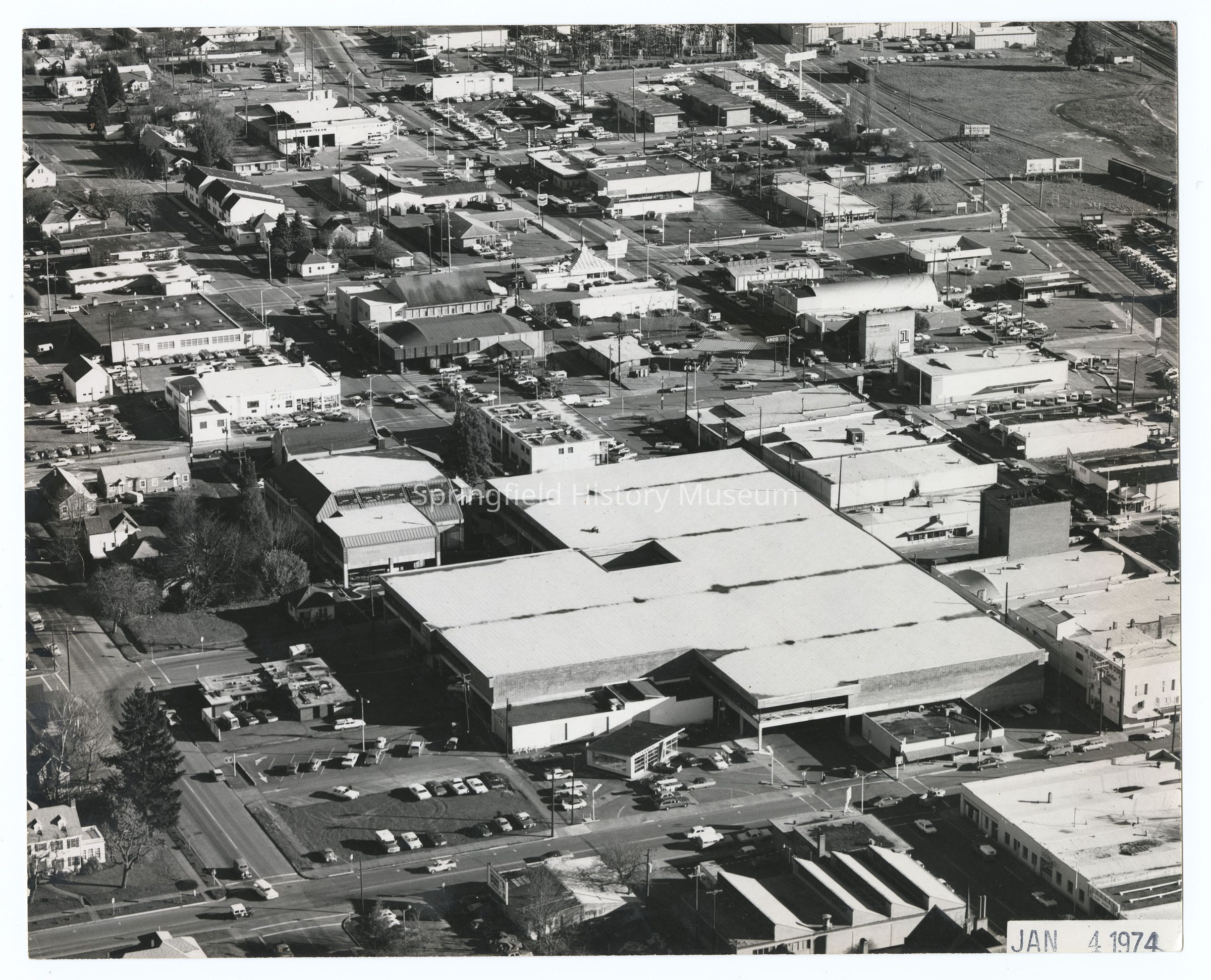 Aerial photograph of the Springfield Shopping Mall and downtown, circa 1974Entry/Object ID