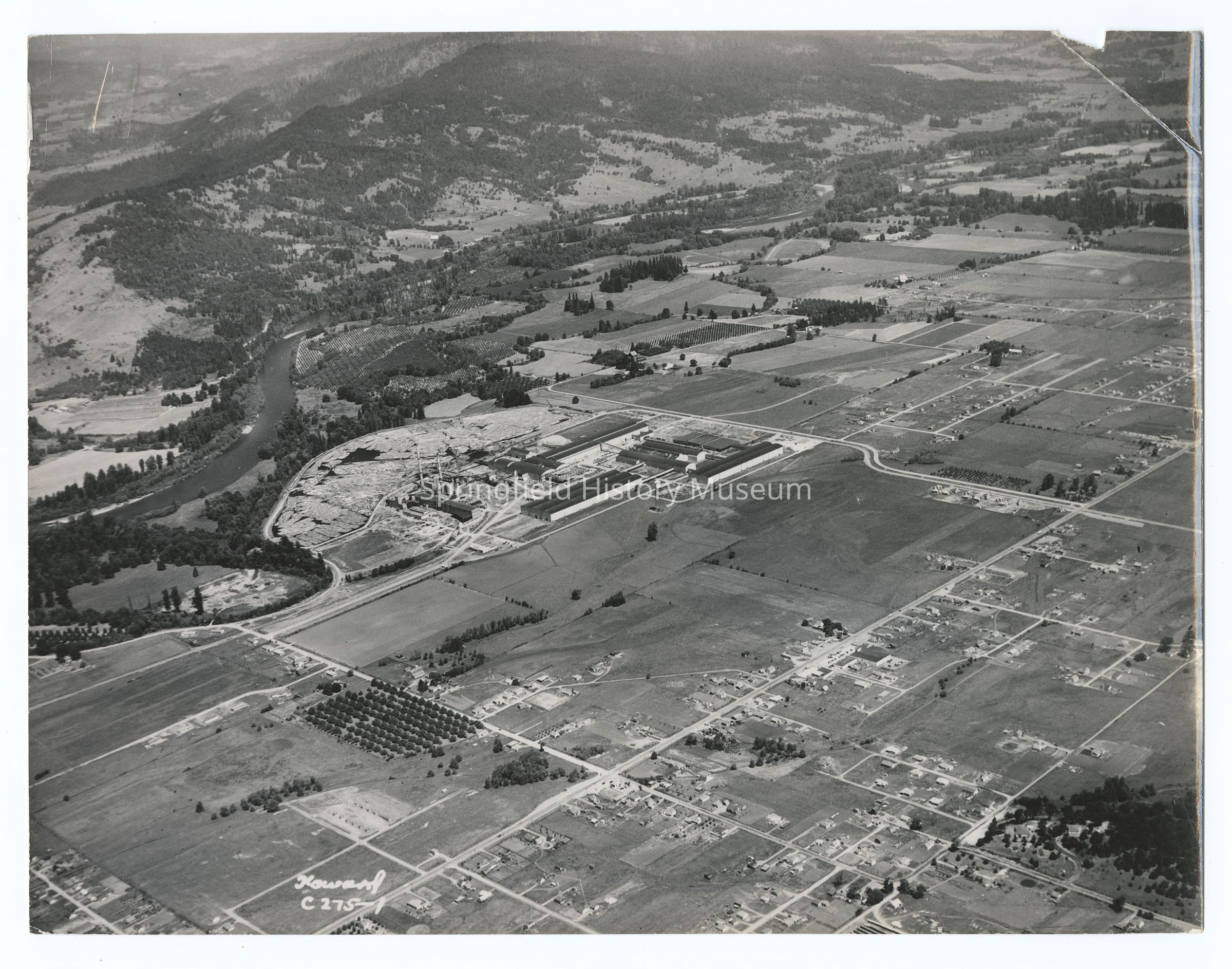 Aerial photograph of Weyerhaeuser Company and area, Springfield, circa 1946Entry/Object ID