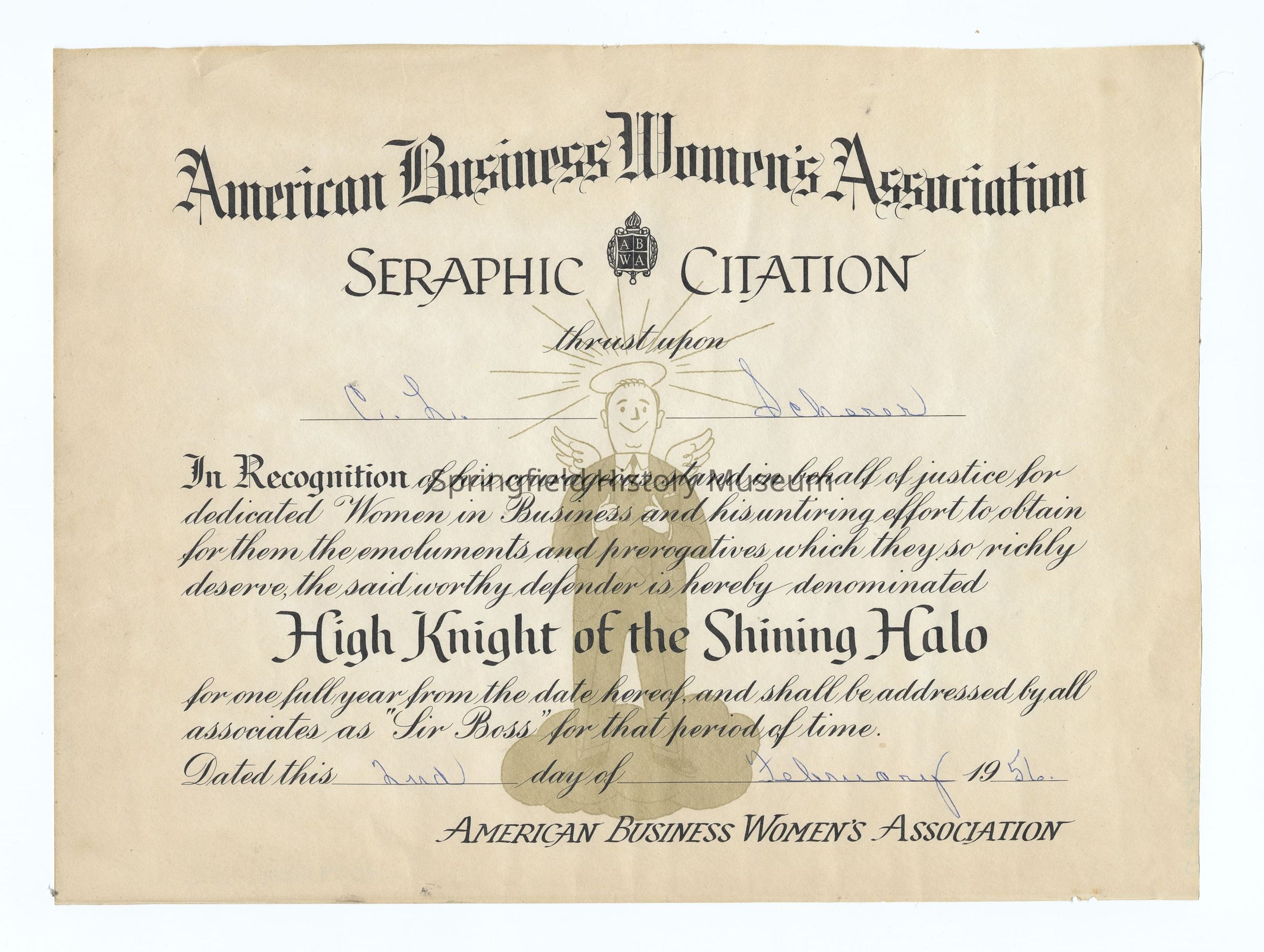 American Business Women's Association Award, to Clarence Scherer, 1956Collection