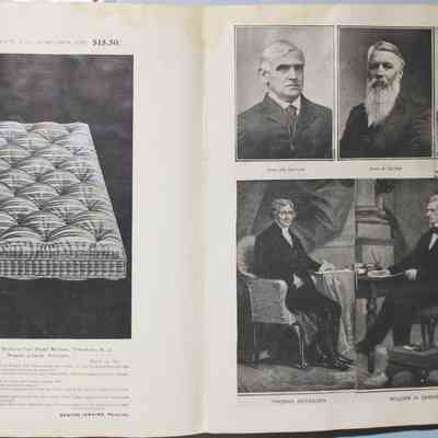 Scrapbook on a repurposed hospital furniture catalog, a picture of Romeo and Juliet on the cover, containing newspaper magazine clippings (f.e. Examiner San Francisco, November 6,1898) and notes.Collection