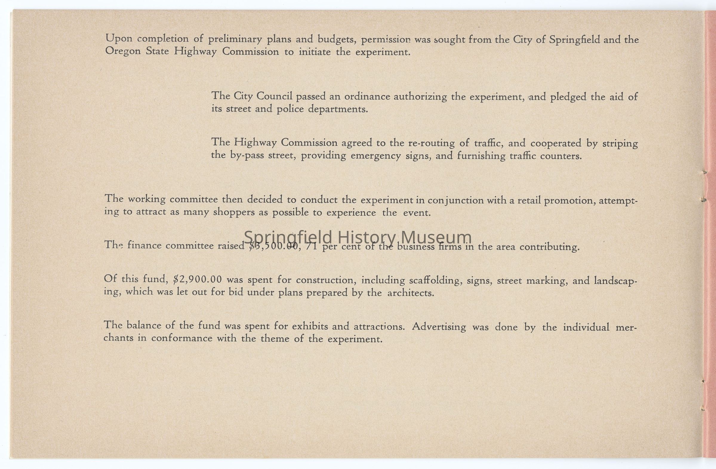 "Shoppers Paradise" was a ten-day experiment of the Springfield Chamber of Commerce to revitalize the downtown shopping district.Context