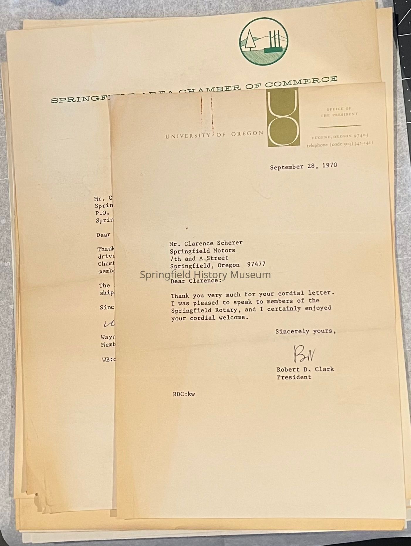 -Letter from University of Oregon to Clarence Scherer Springfield Motors, 1970