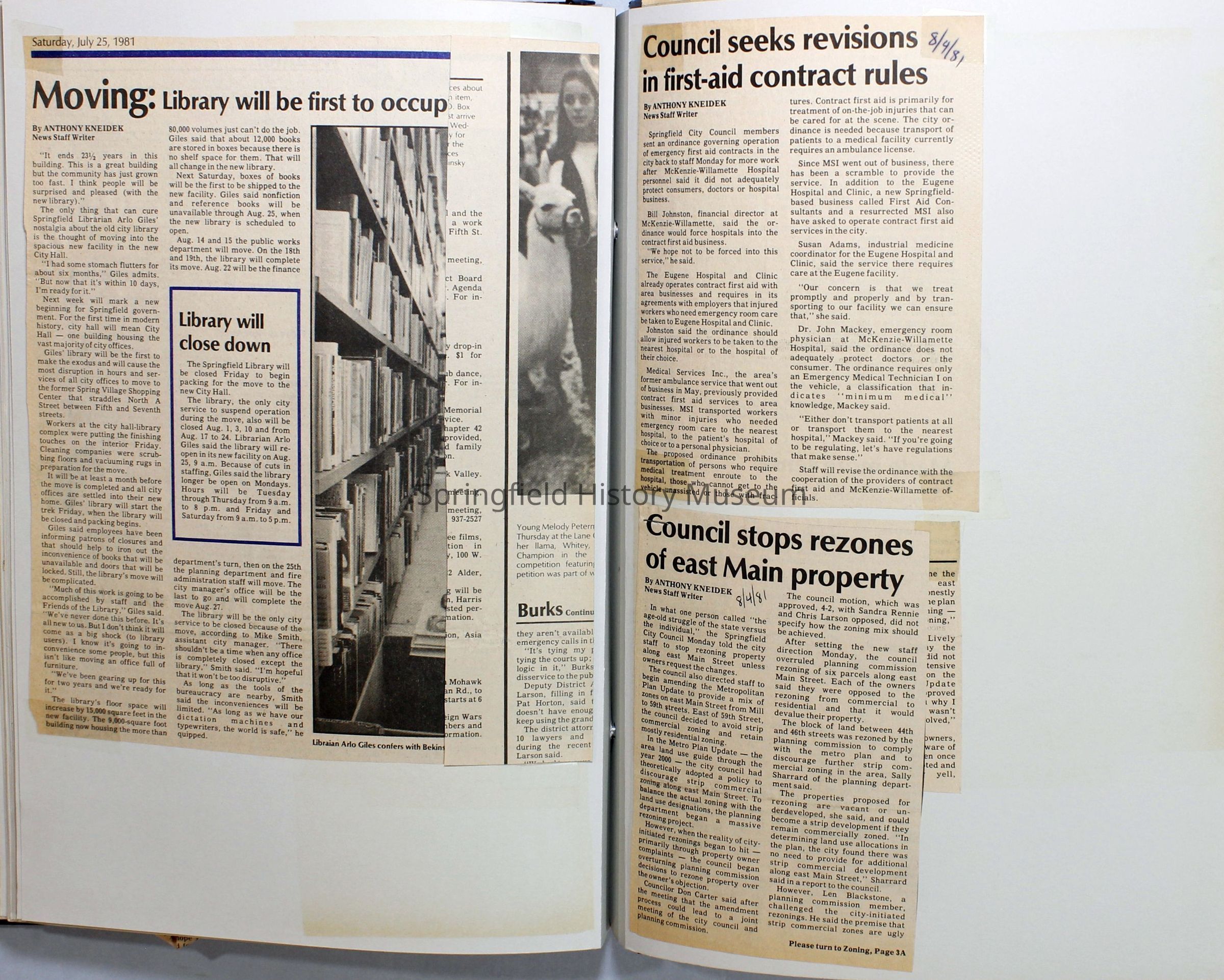 Scrapbook on the government of Springfield, Oregon. Newspaper articles from the Springfield News, 1981.