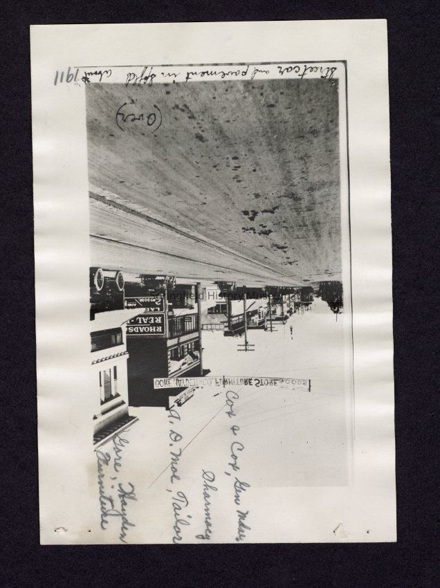 B&W Photo of Main St. Springfield, Oregon. Streetcar tracks and pavement in Springfield about 1911.