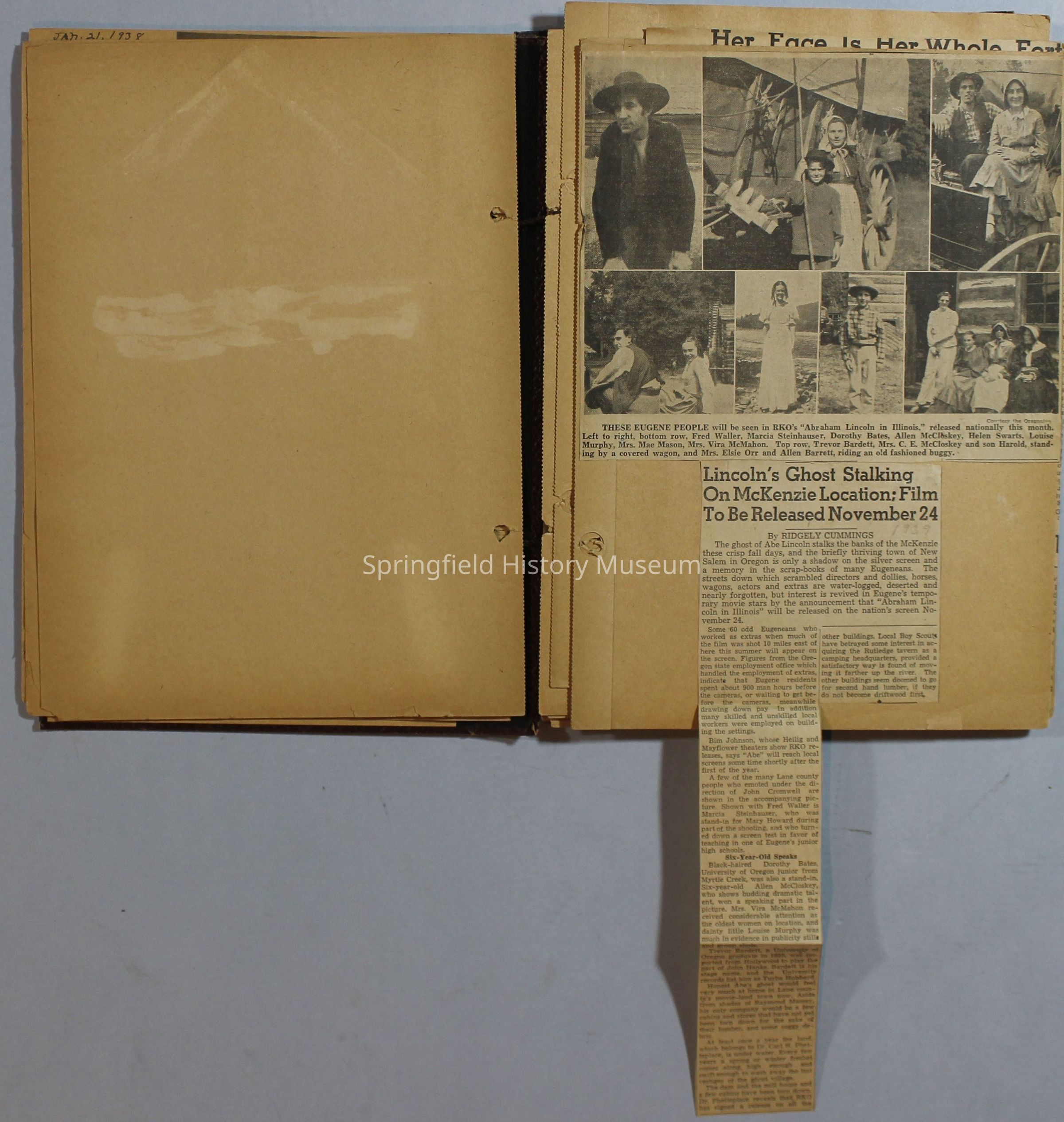 Scrapbook with newspaper clippings about Springfield area and Oregon, circa 1934-1939Entry/Object ID