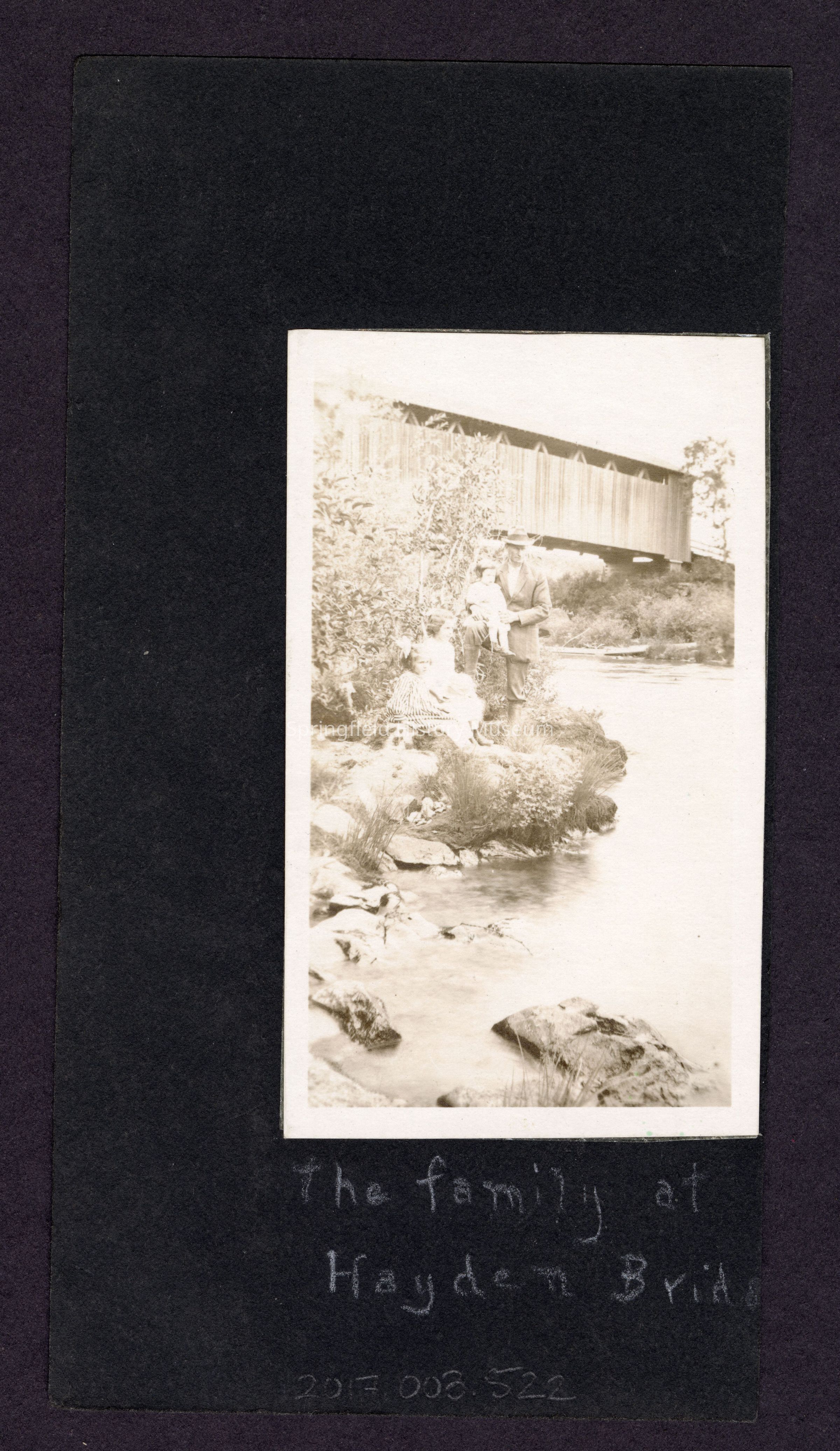 B&W Photo of the family at Haydon Bridge. mounted on black paper.Collection