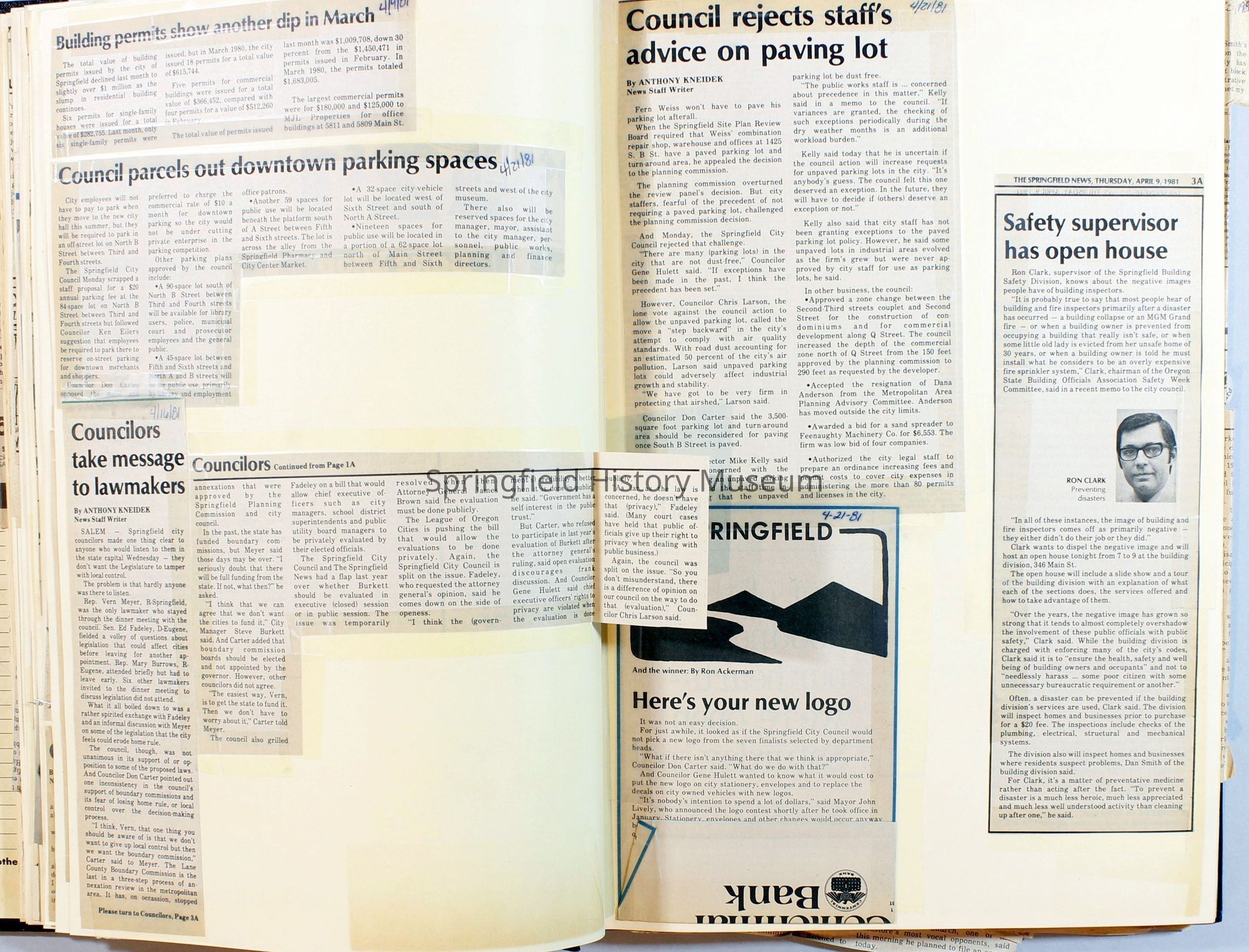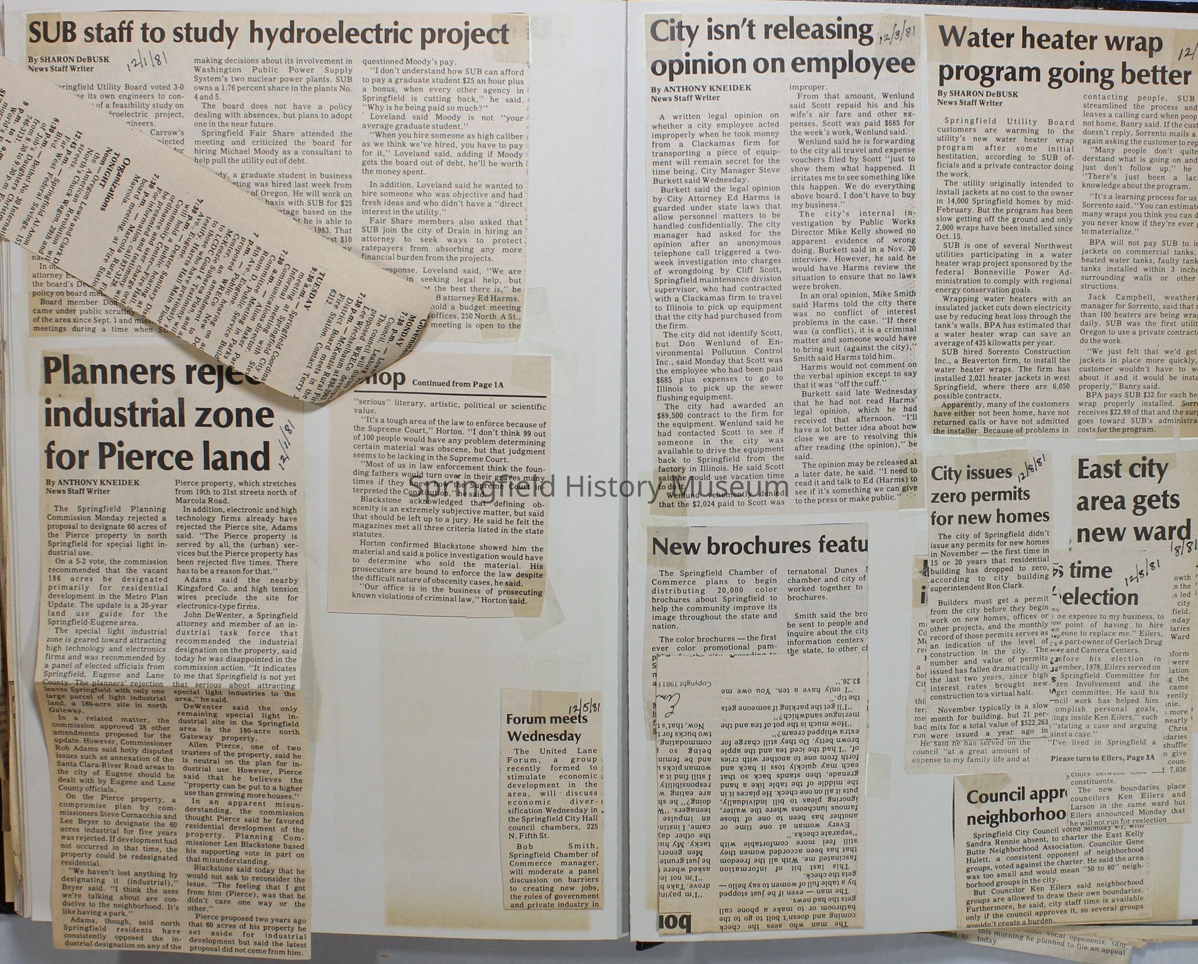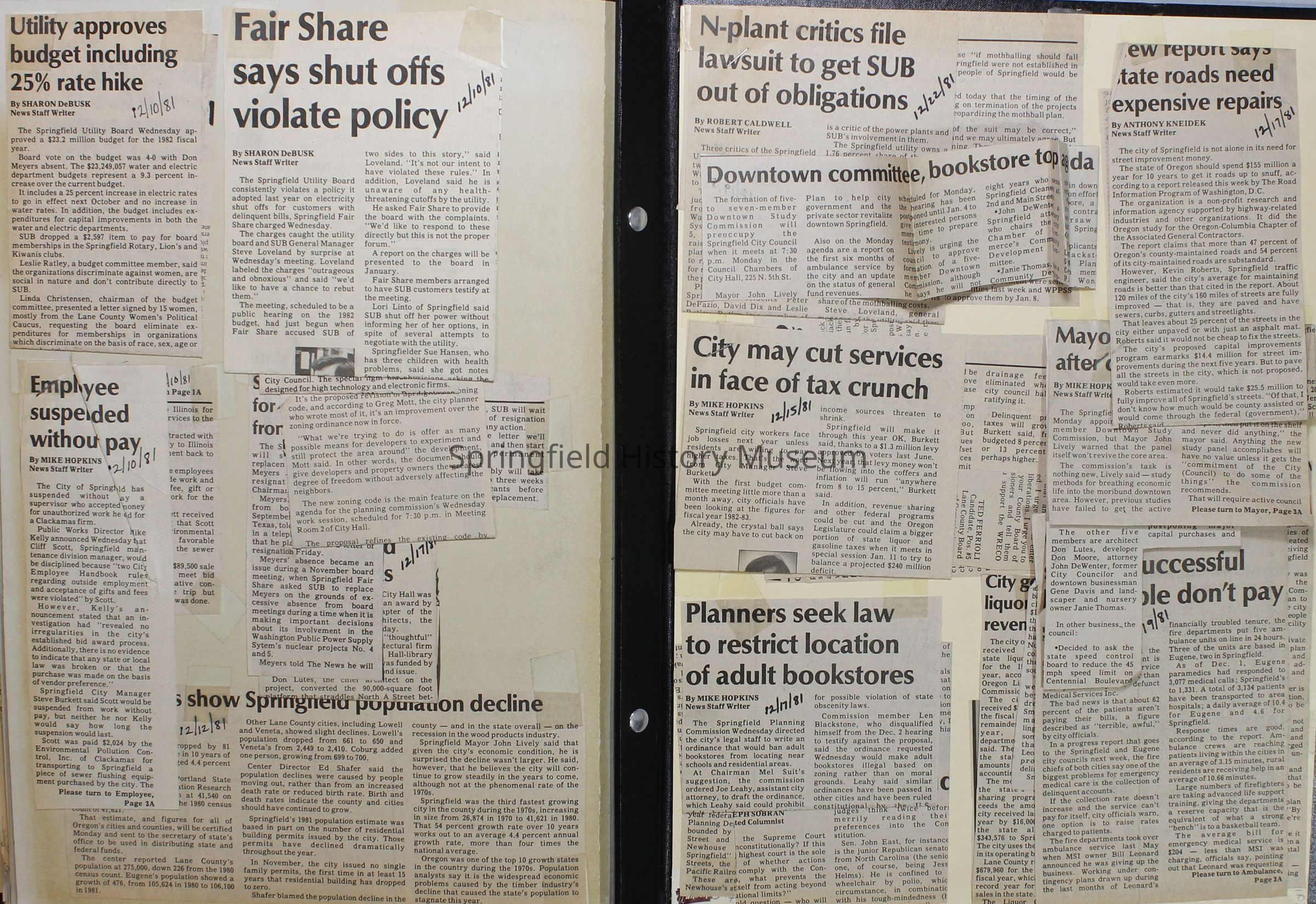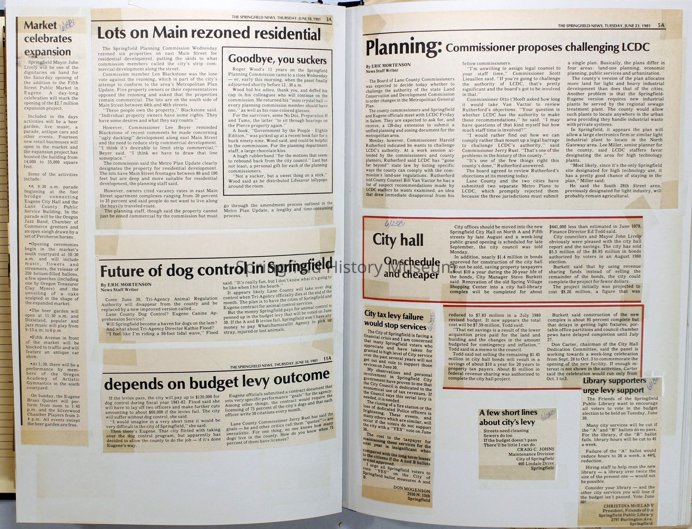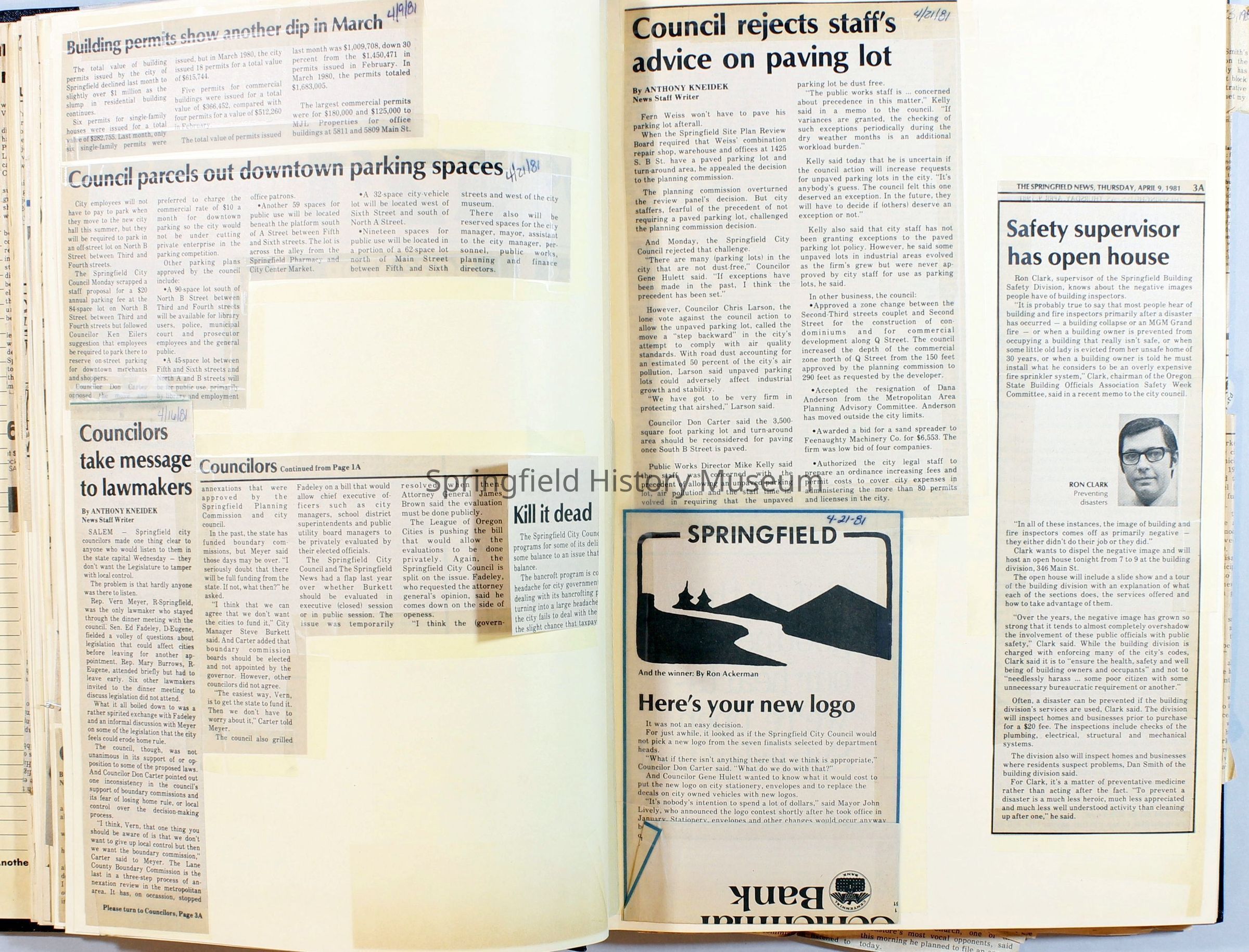 Scrapbook on the government of Springfield, Oregon. Newspaper articles from the Springfield News, 1981.