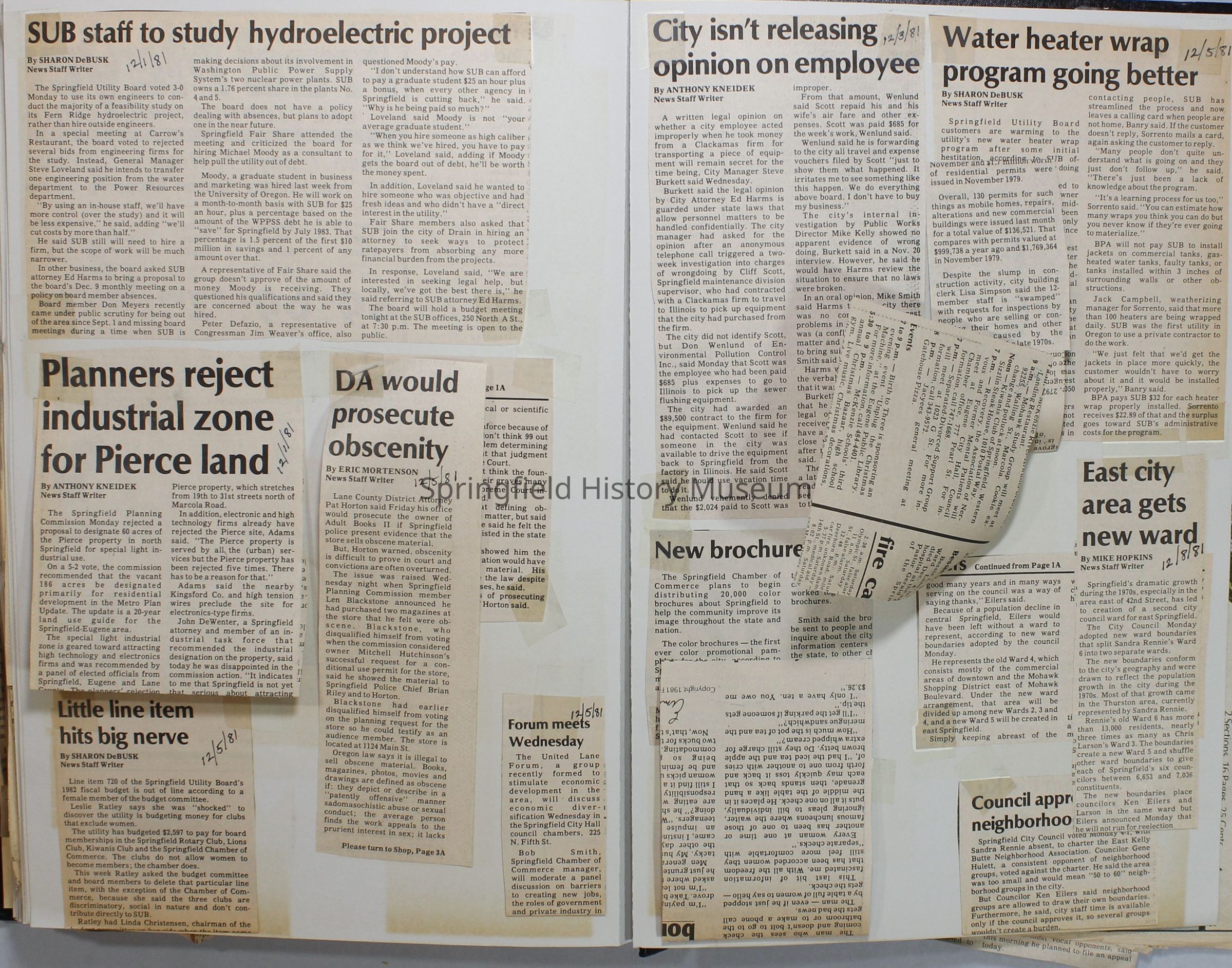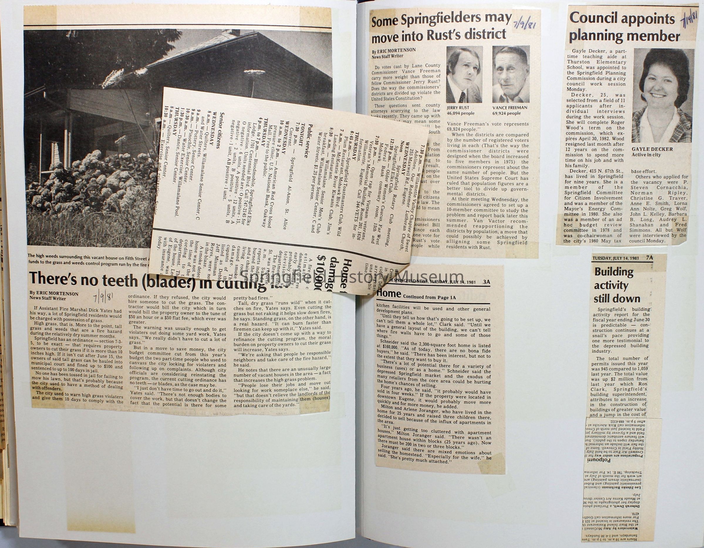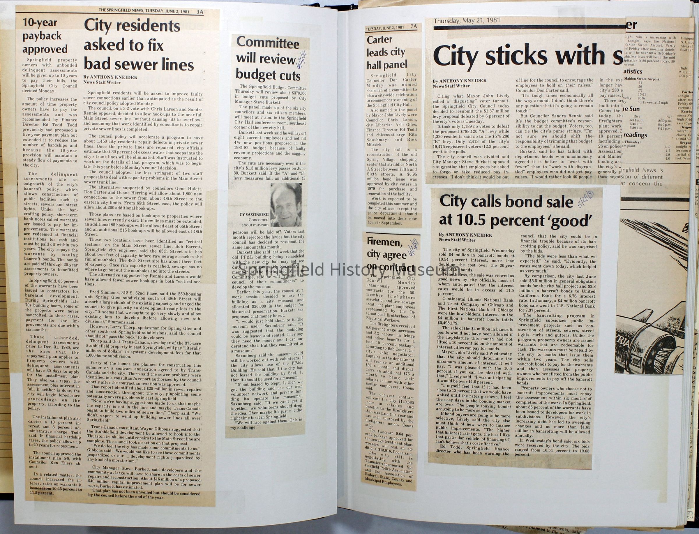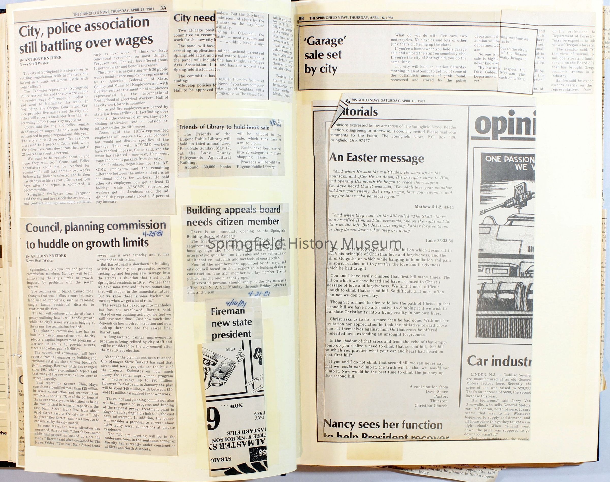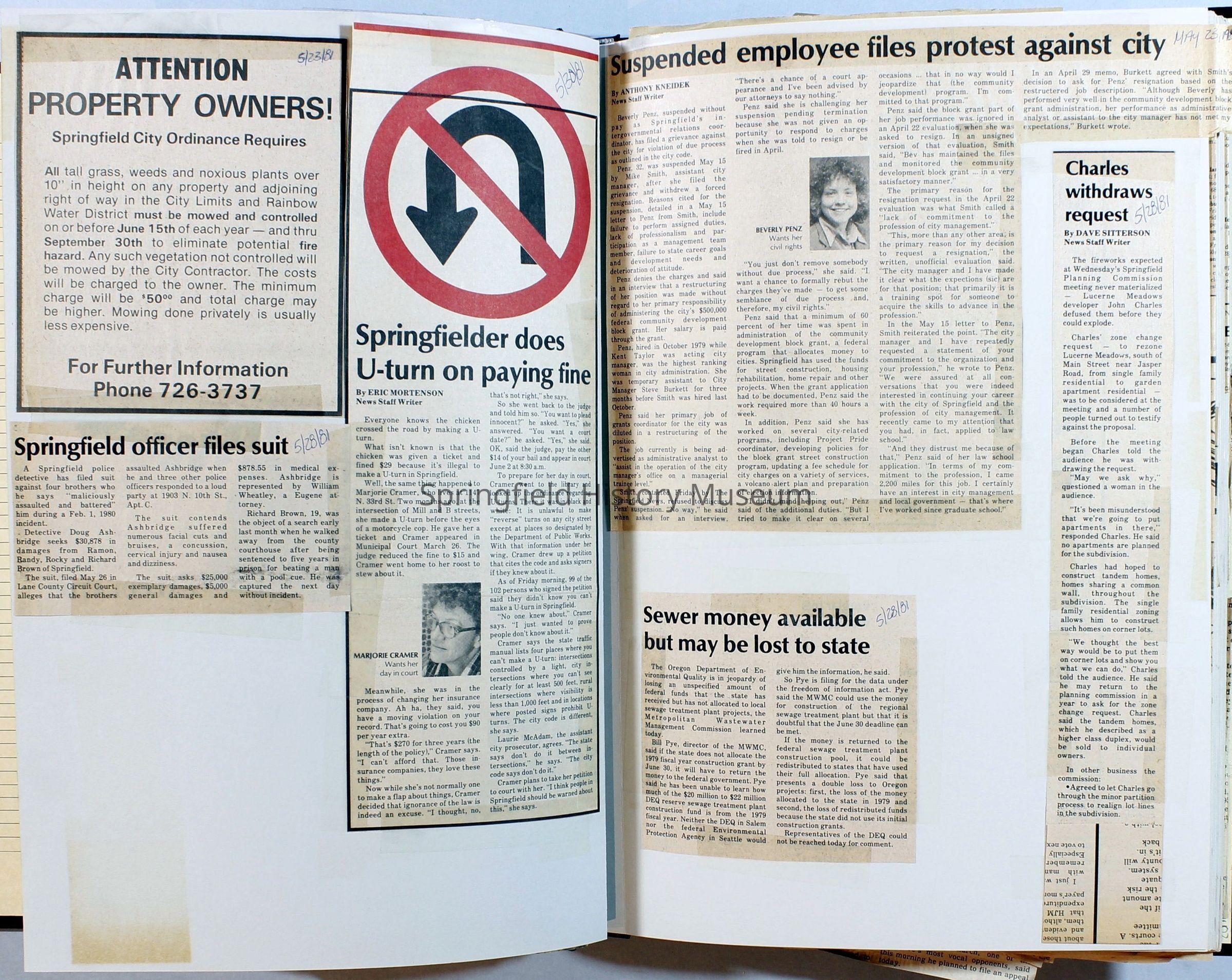 Scrapbook on the government of Springfield, Oregon. Newspaper articles from the Springfield News, 1981.