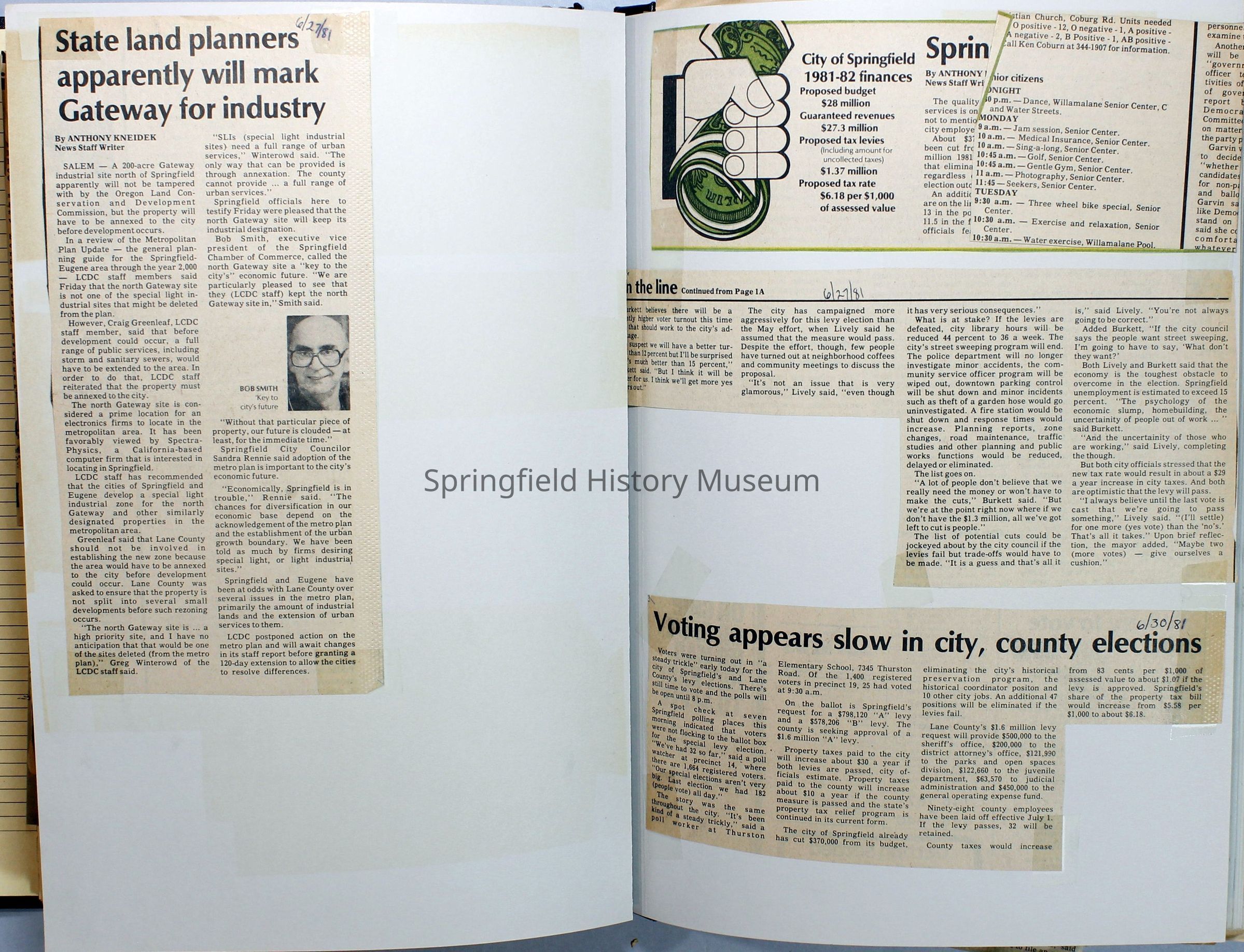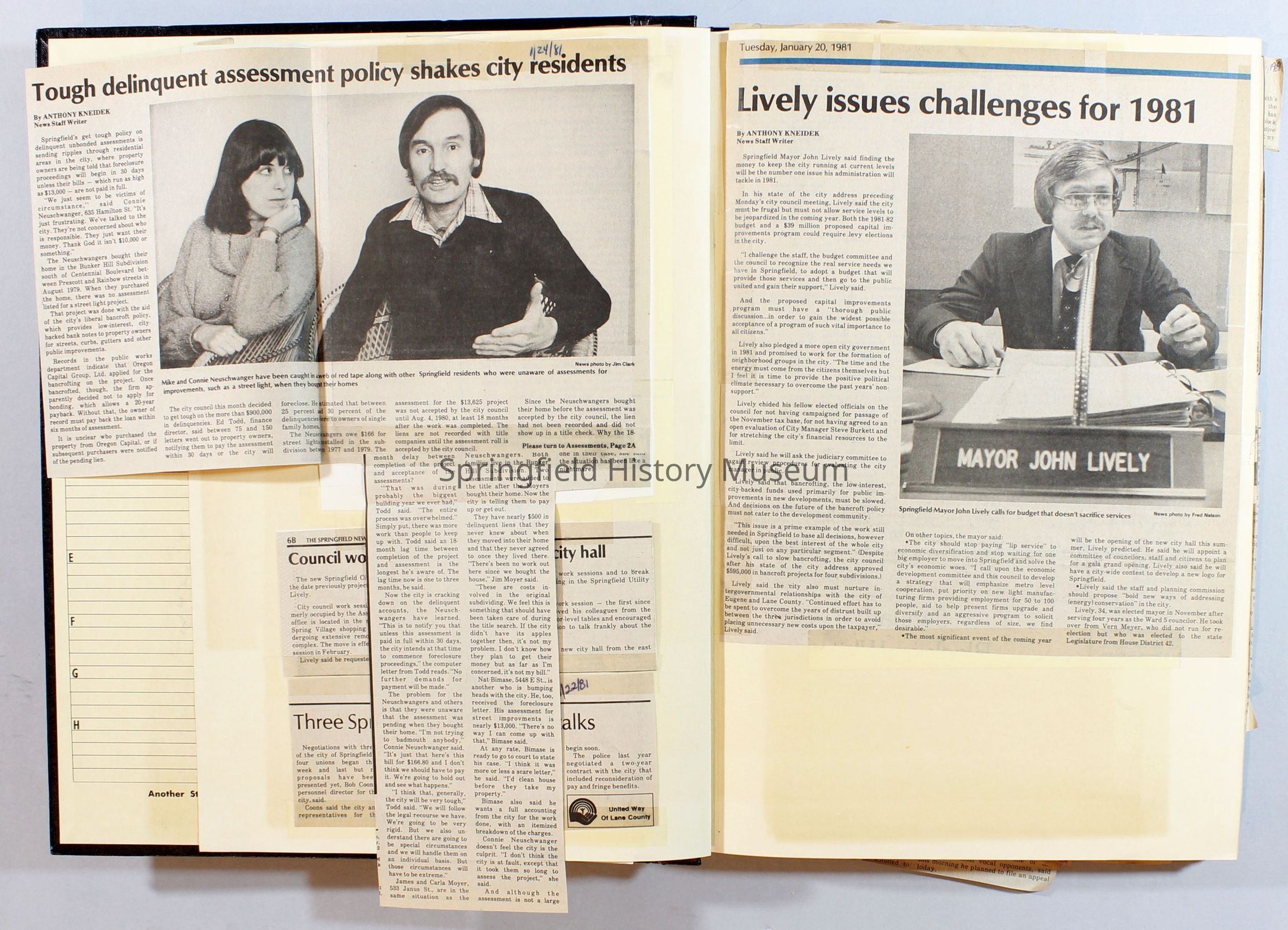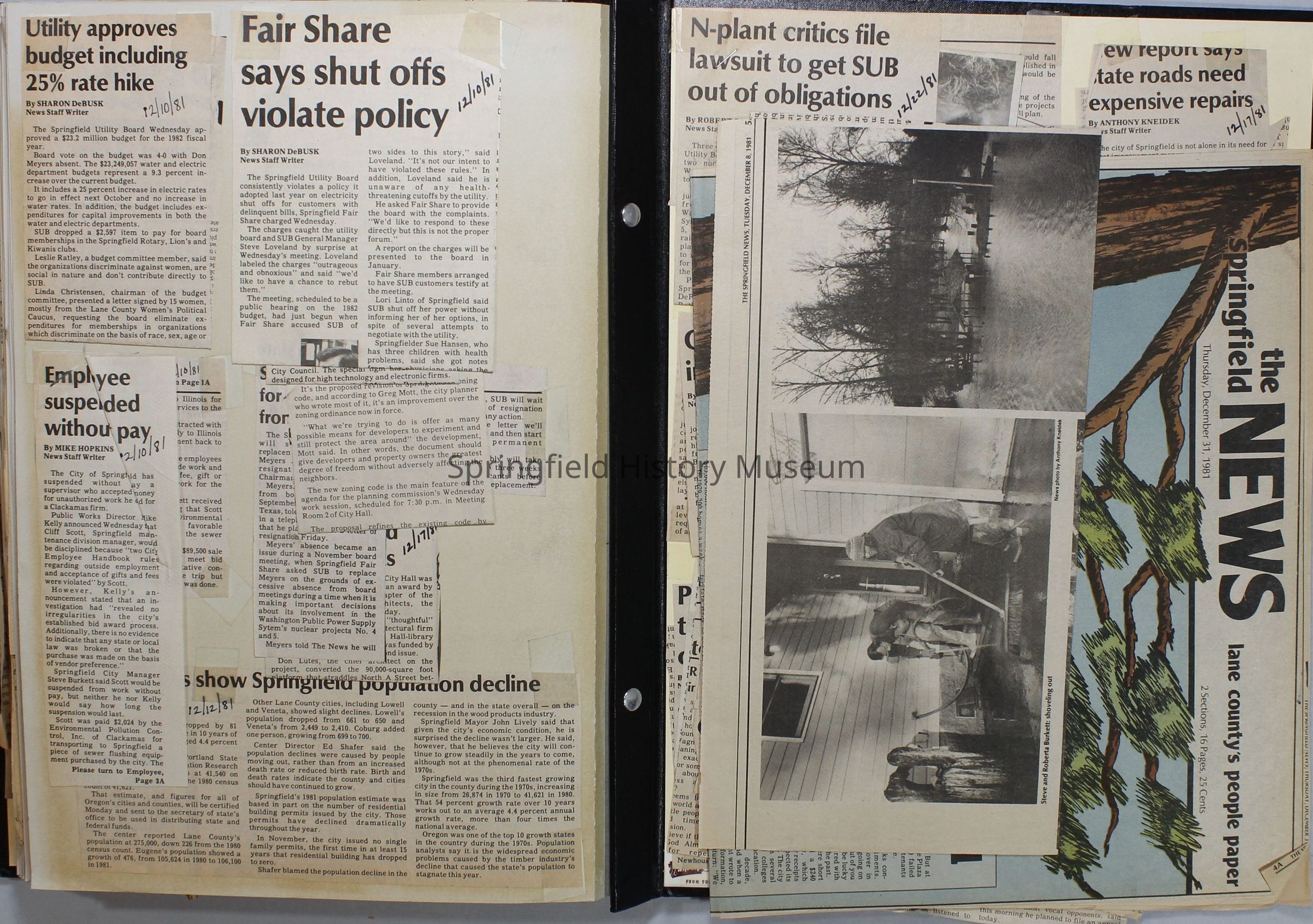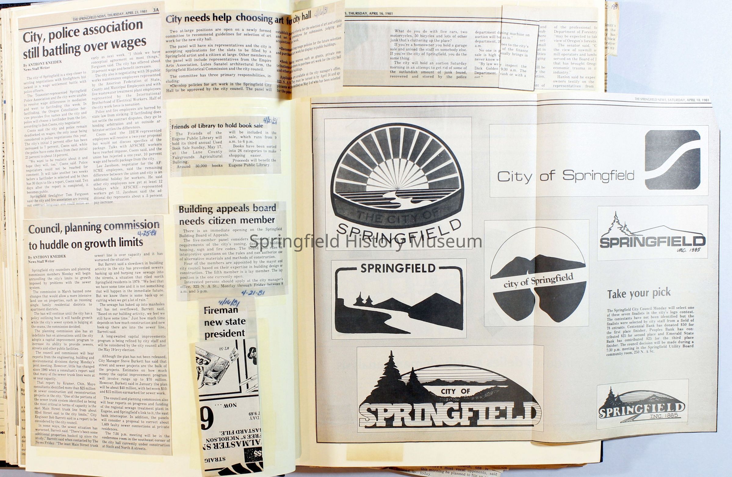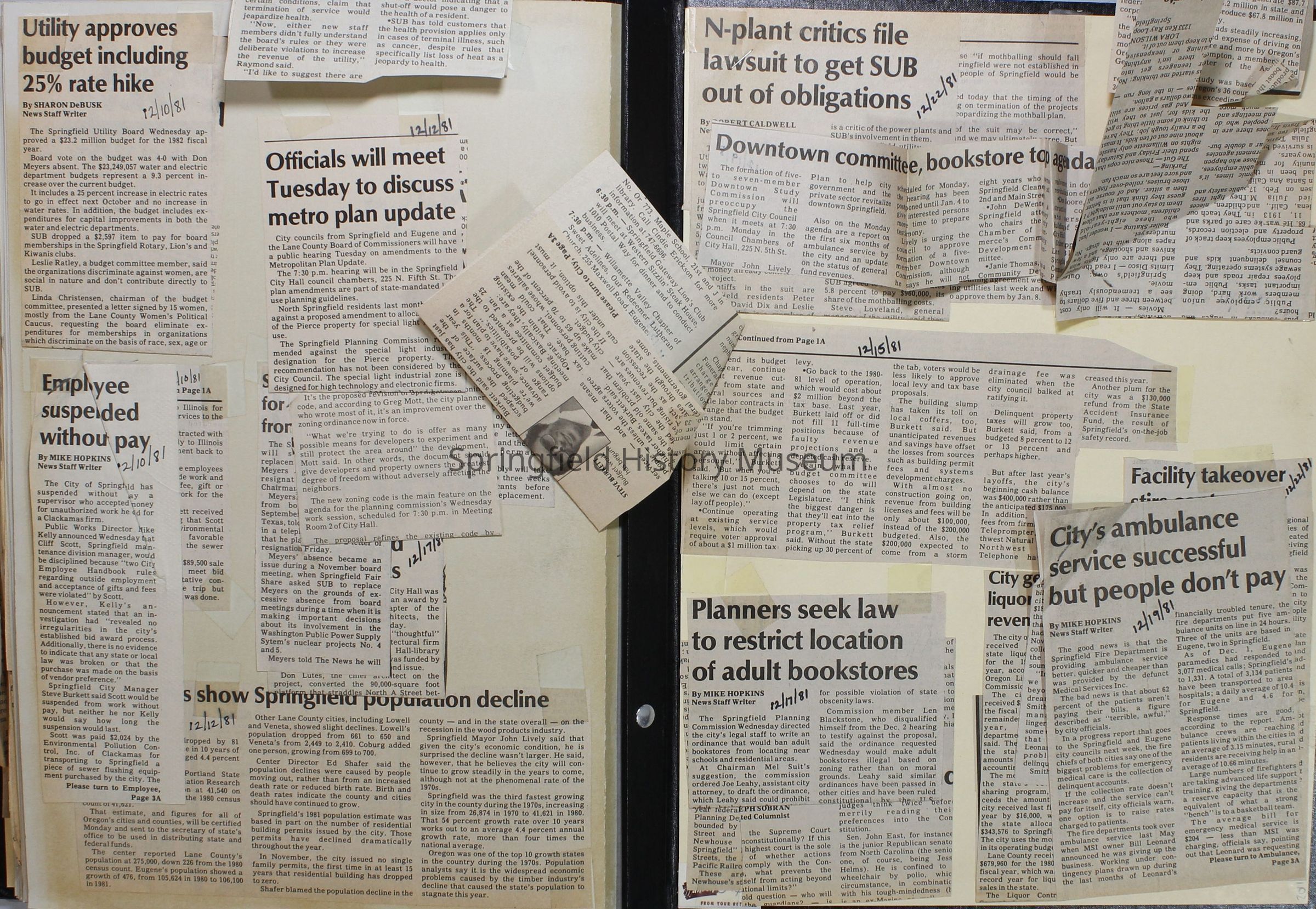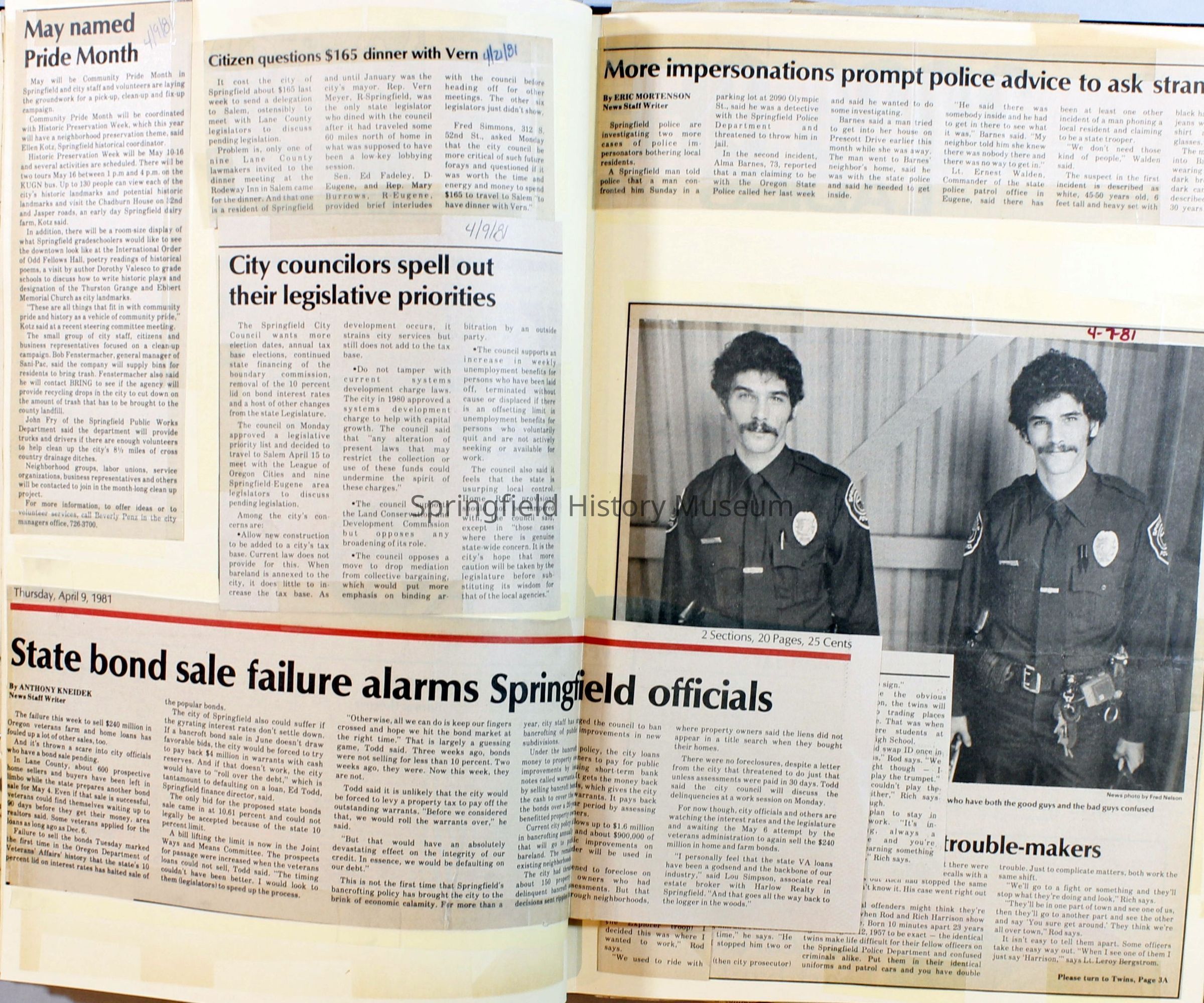 Scrapbook on the government of Springfield, Oregon. Newspaper articles from the Springfield News, 1981.