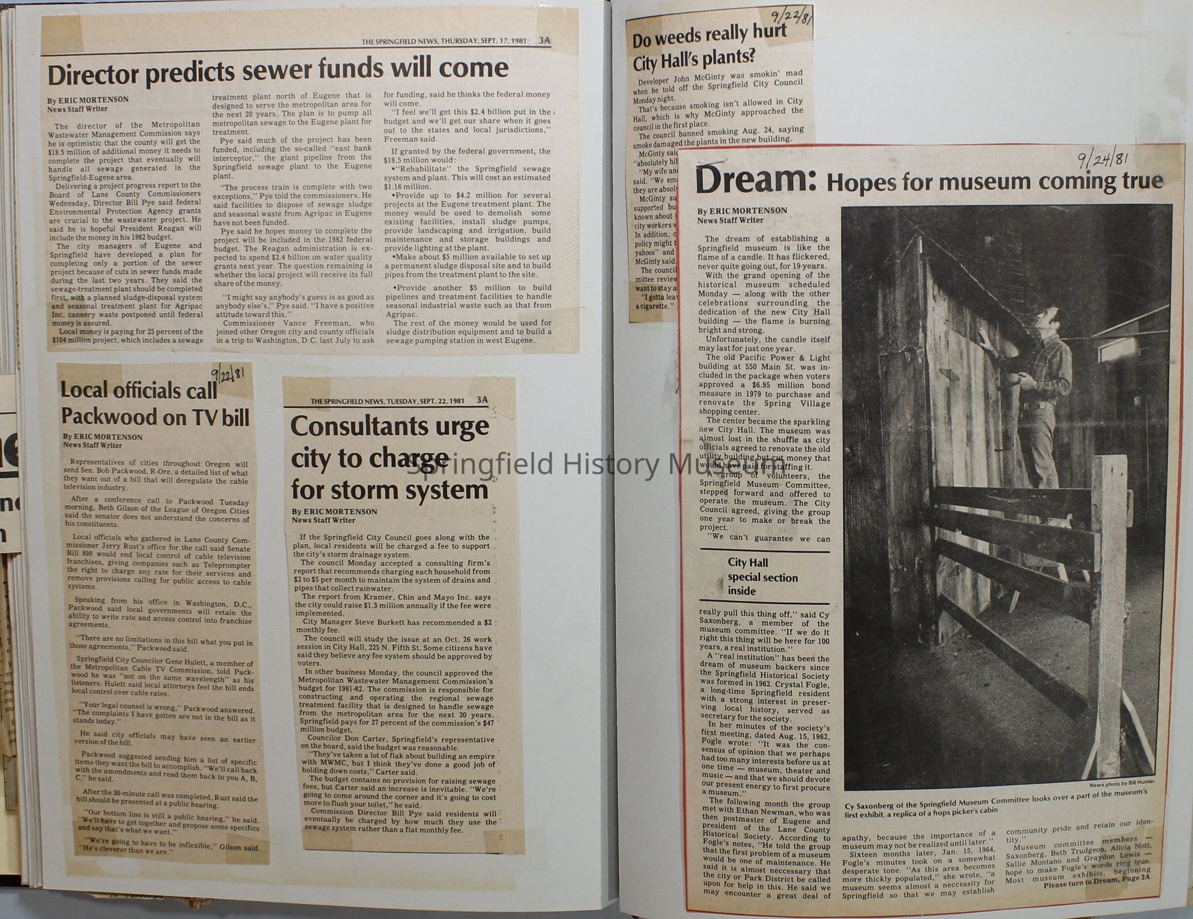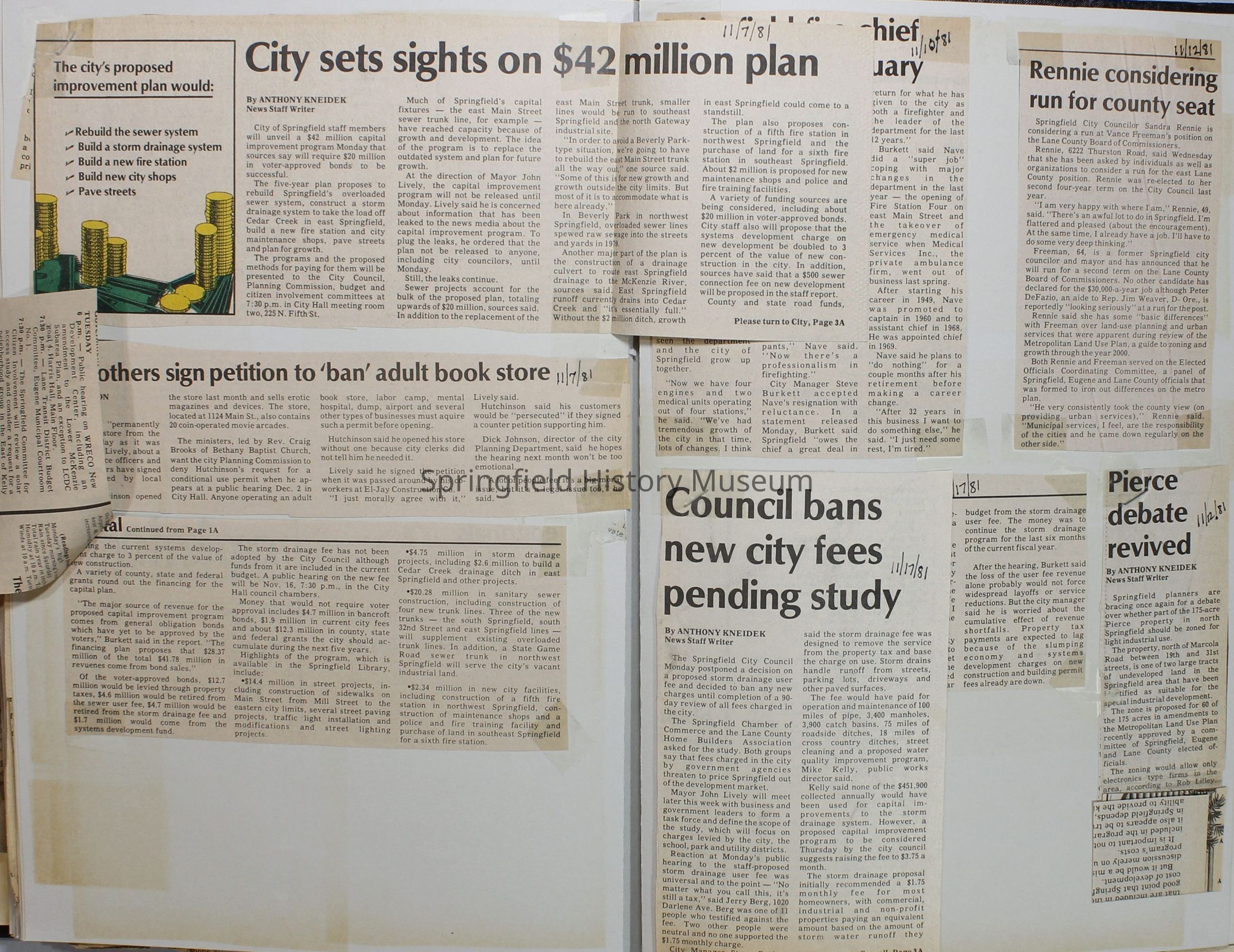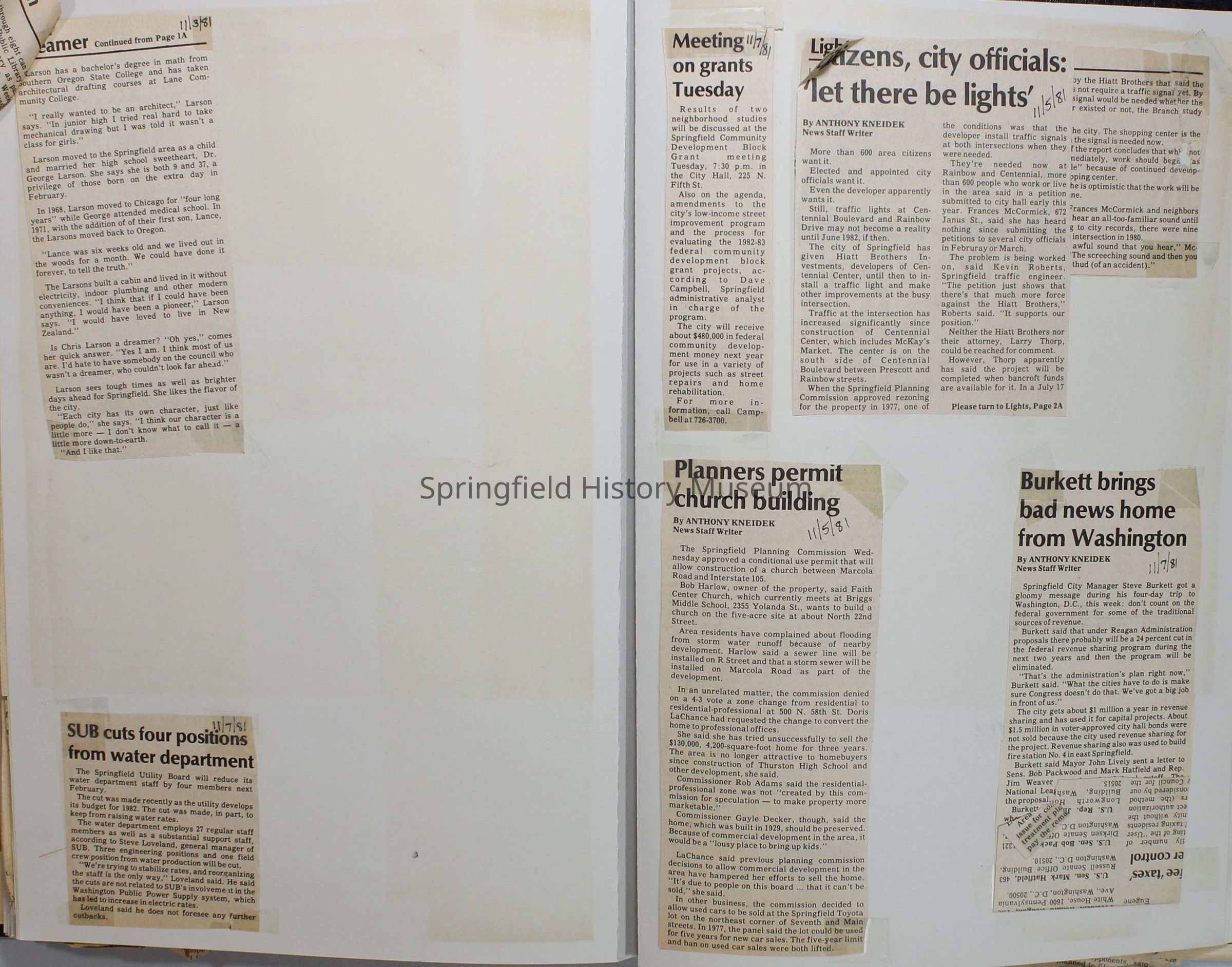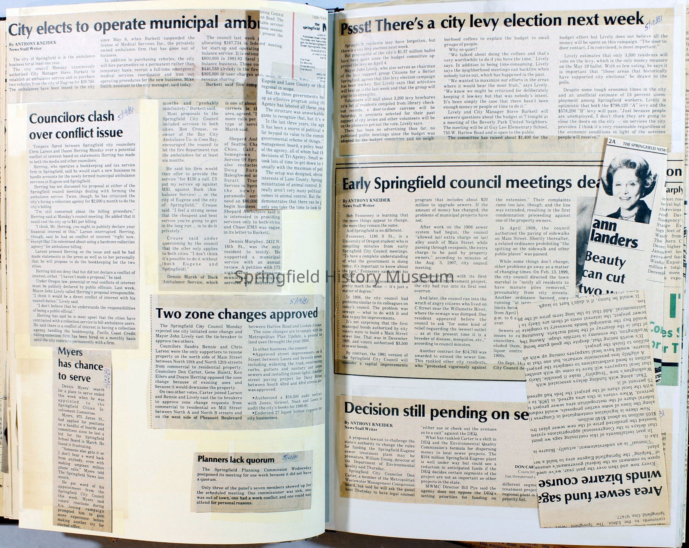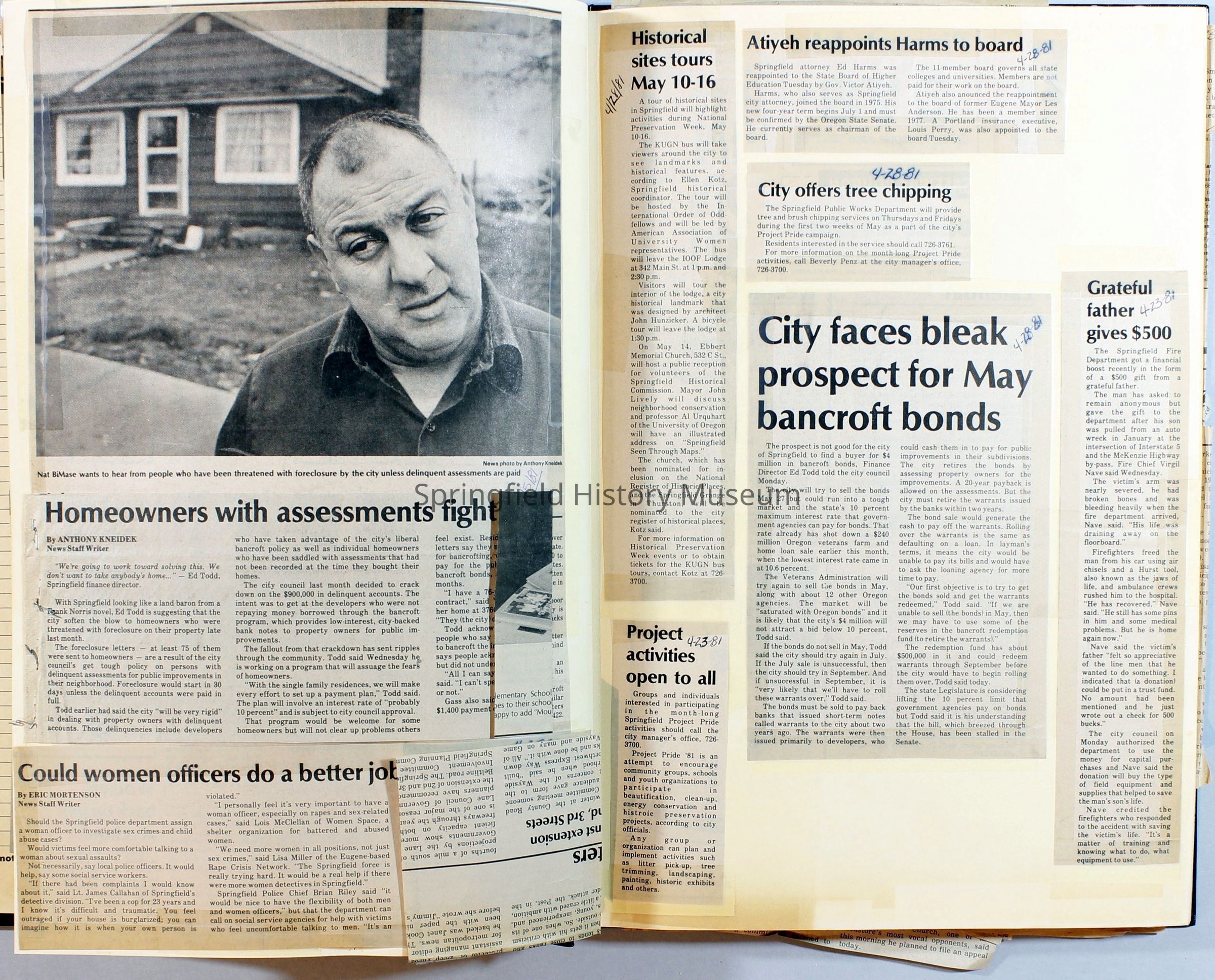 Scrapbook on the government of Springfield, Oregon. Newspaper articles from the Springfield News, 1981.
