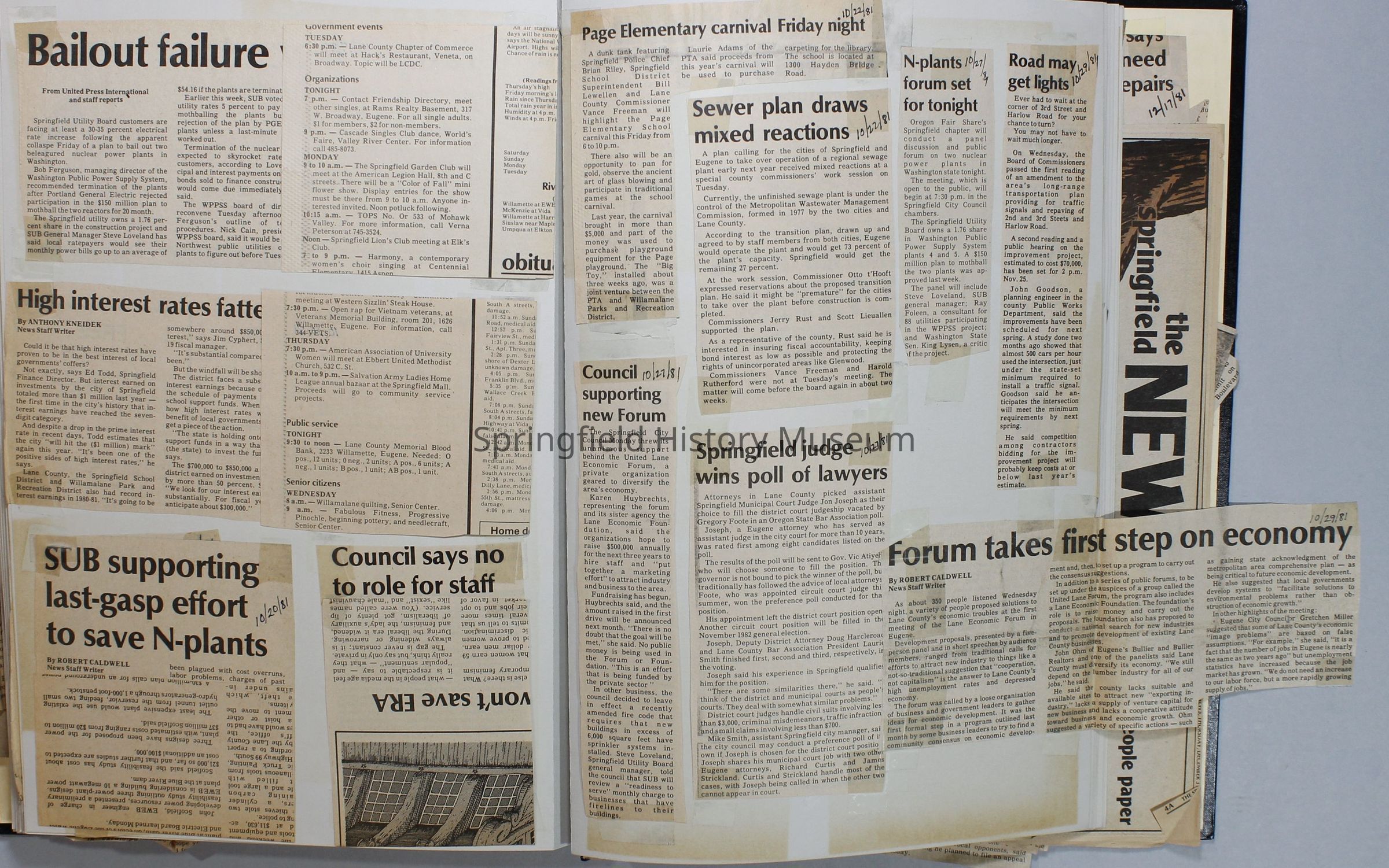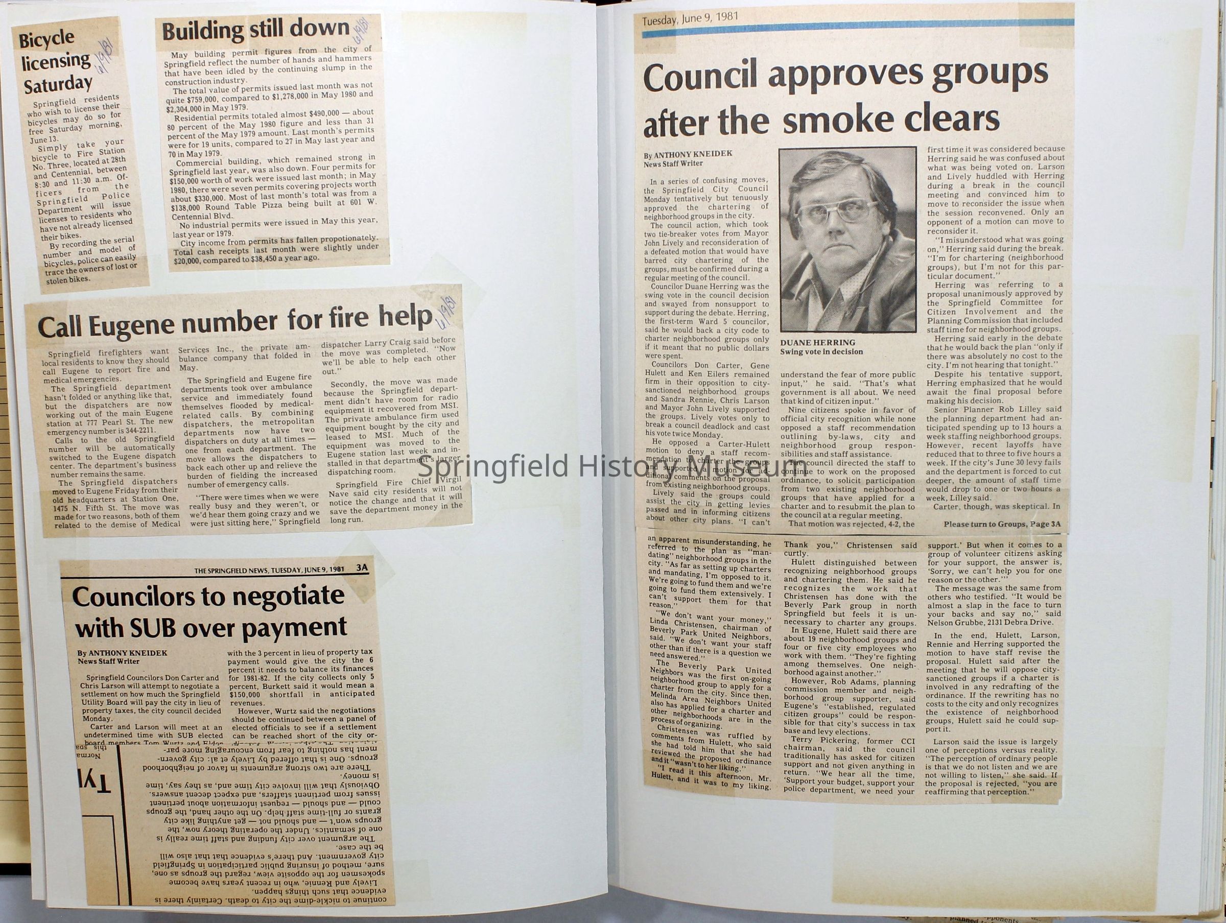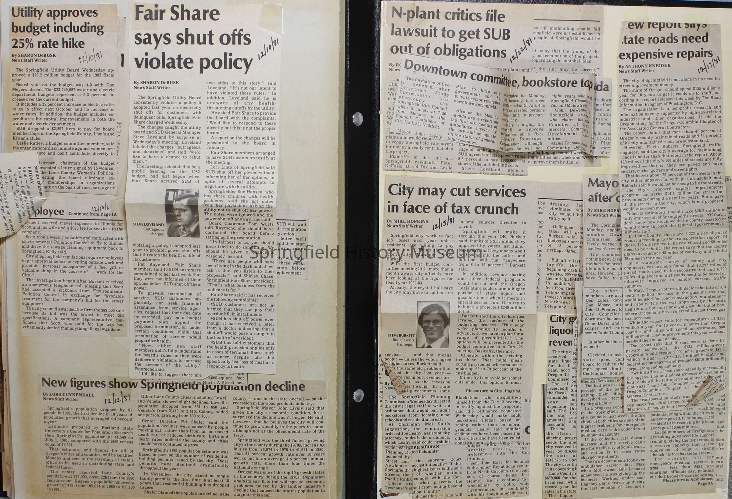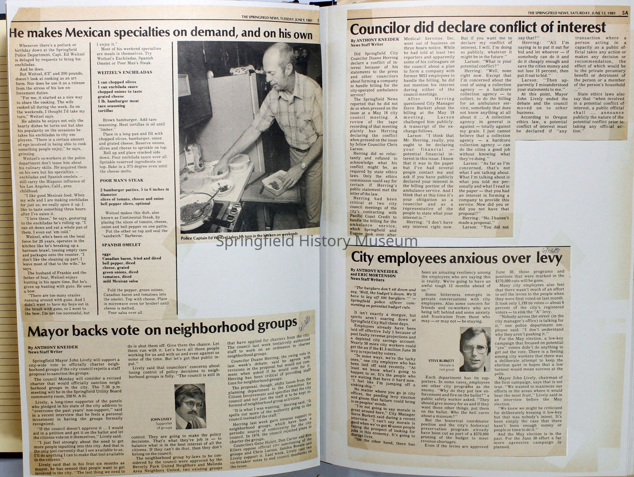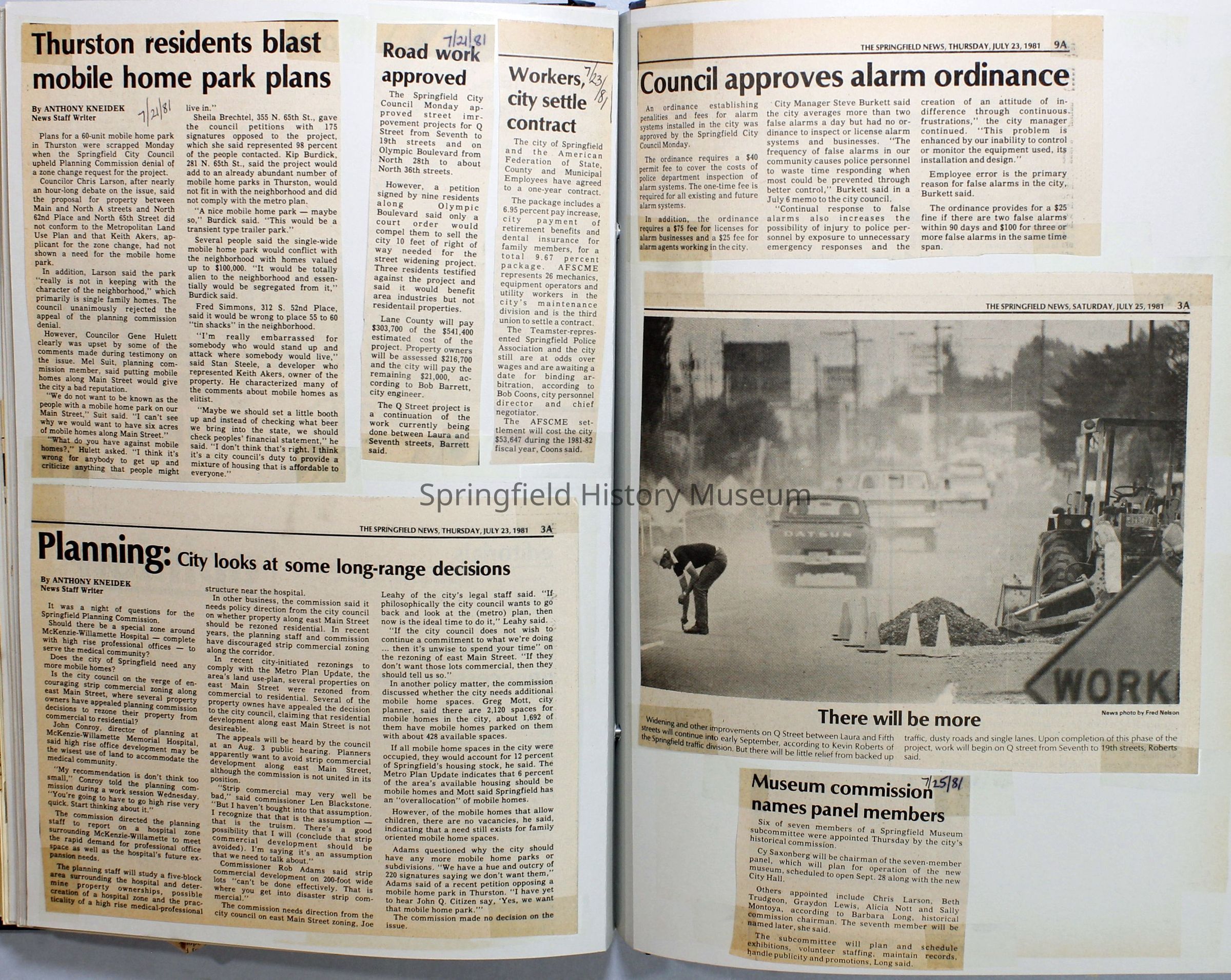 Scrapbook on the government of Springfield, Oregon. Newspaper articles from the Springfield News, 1981.