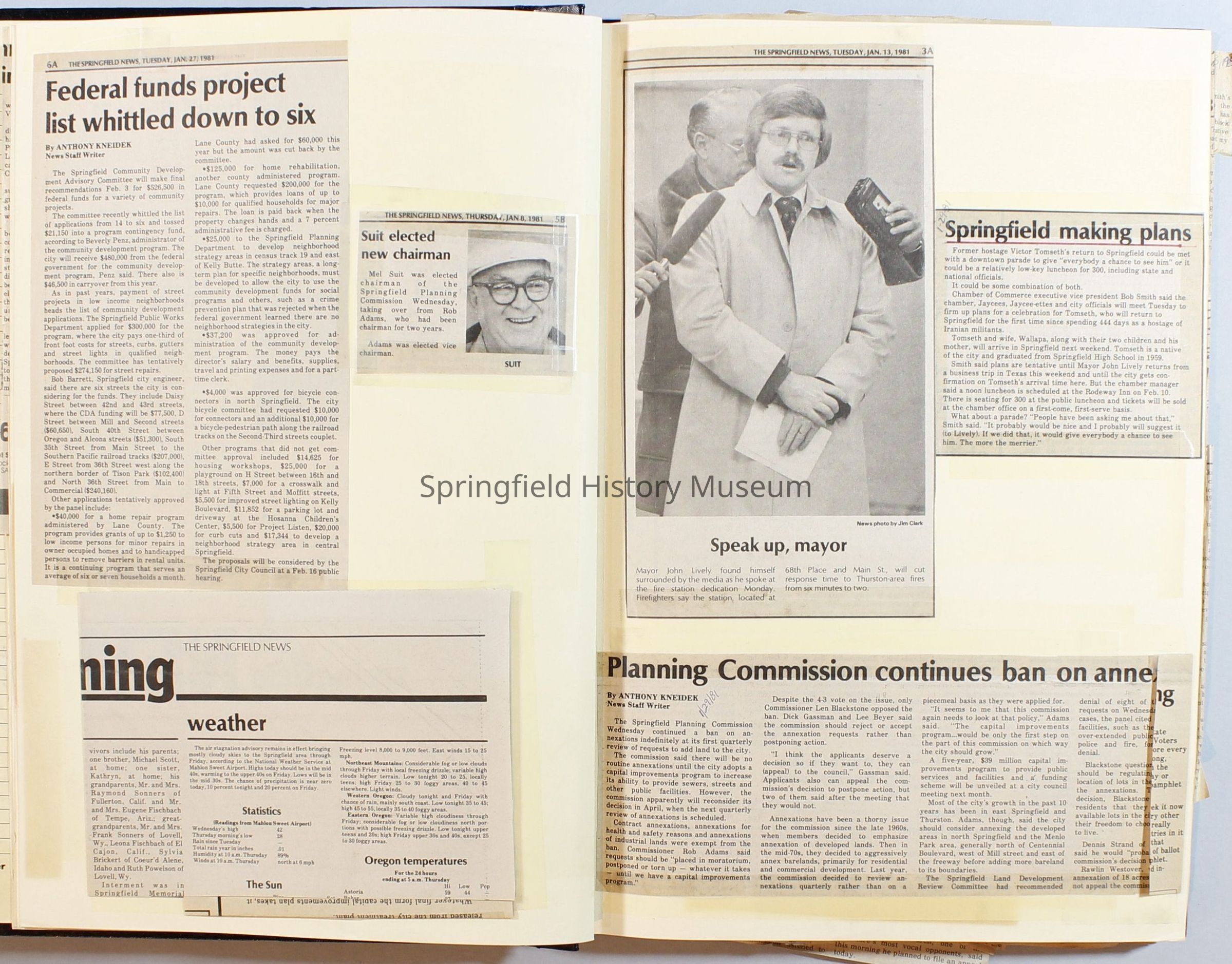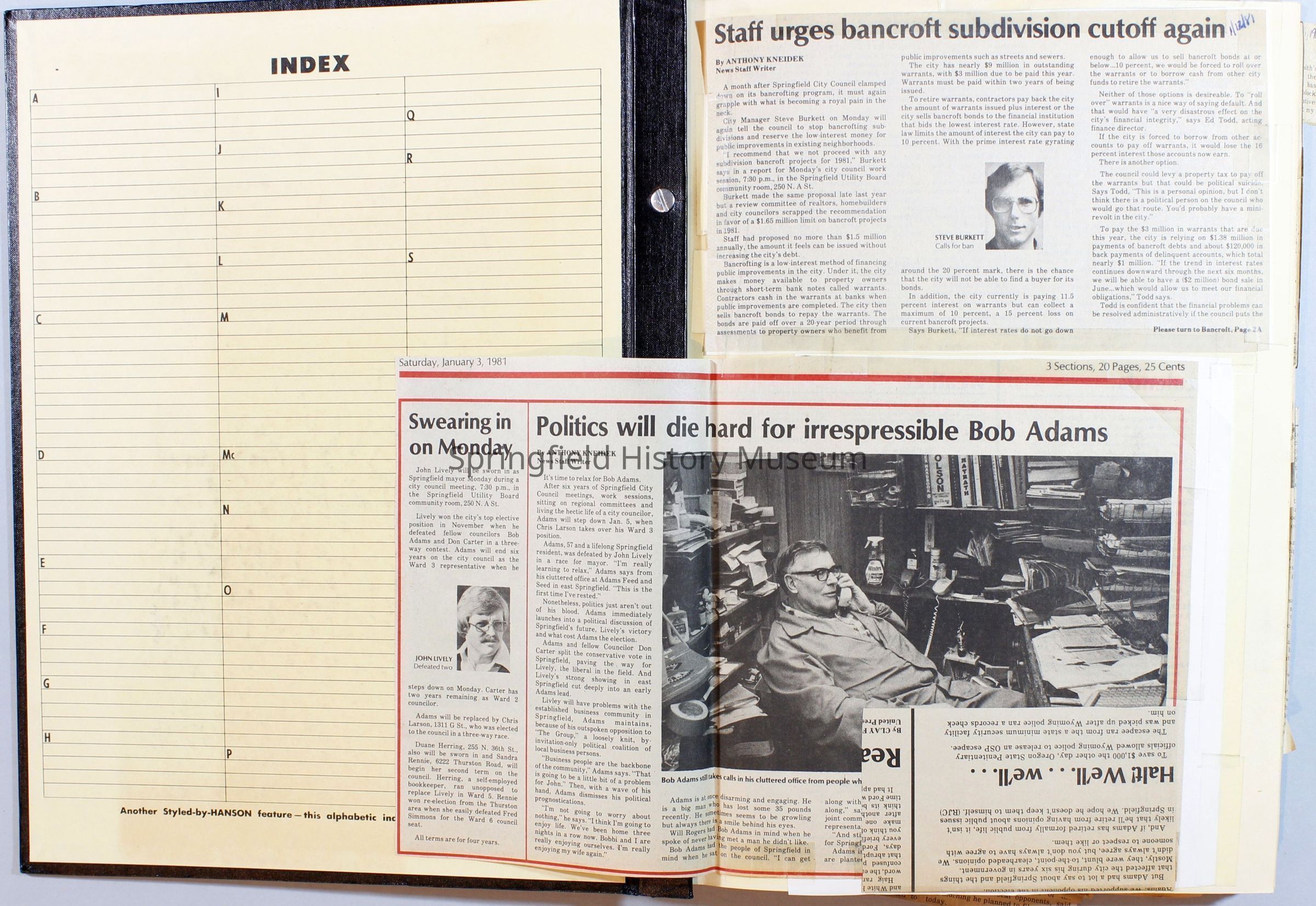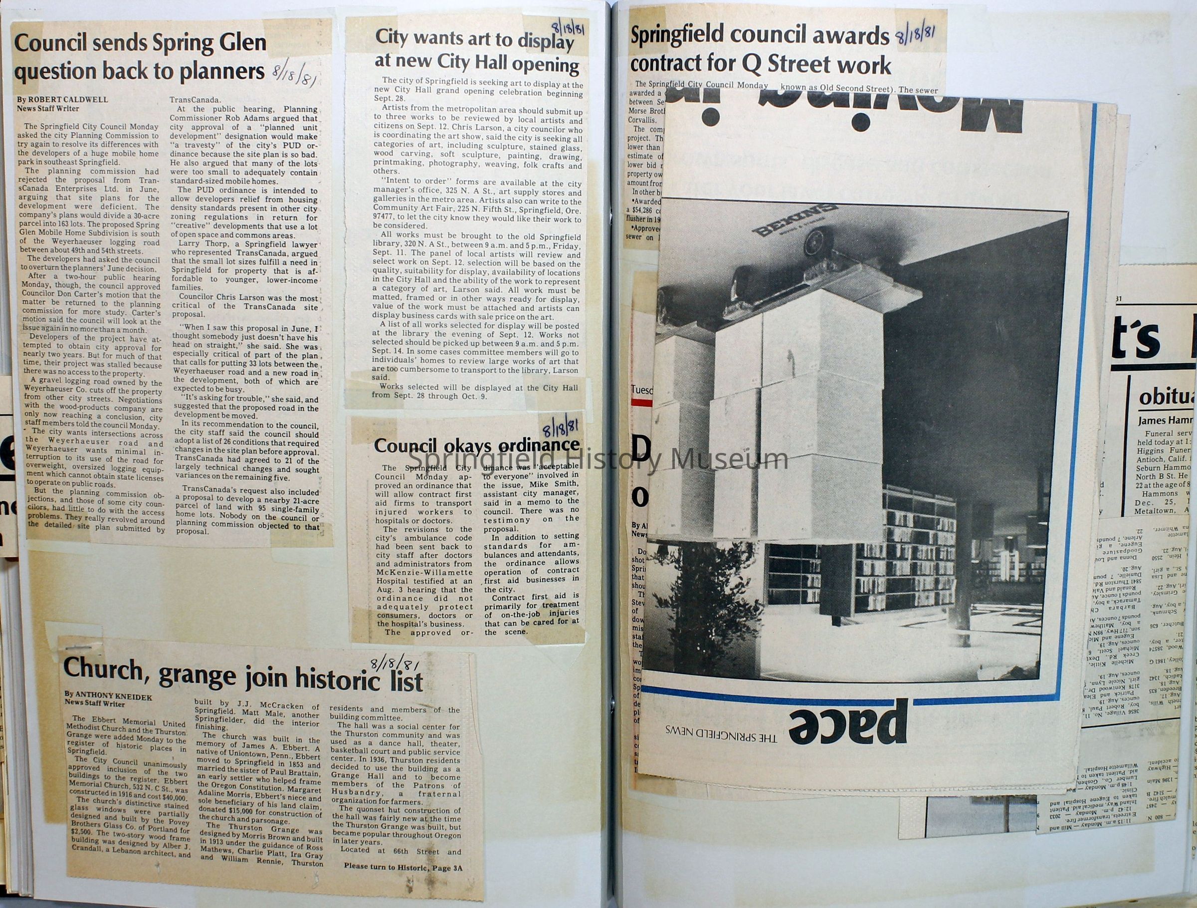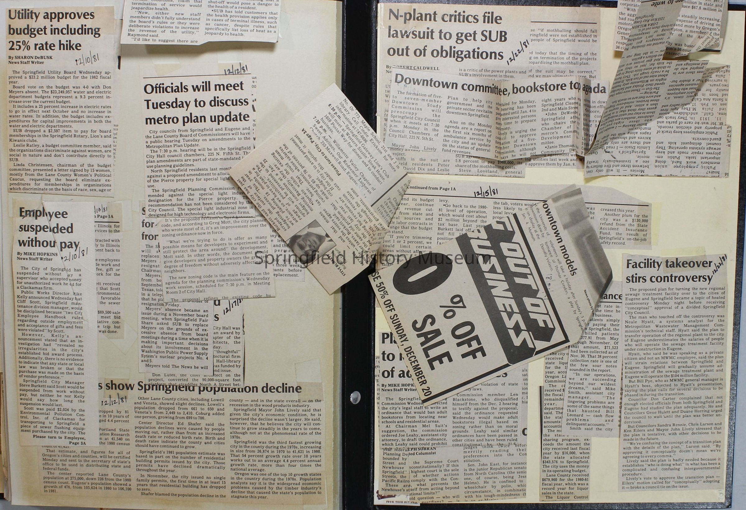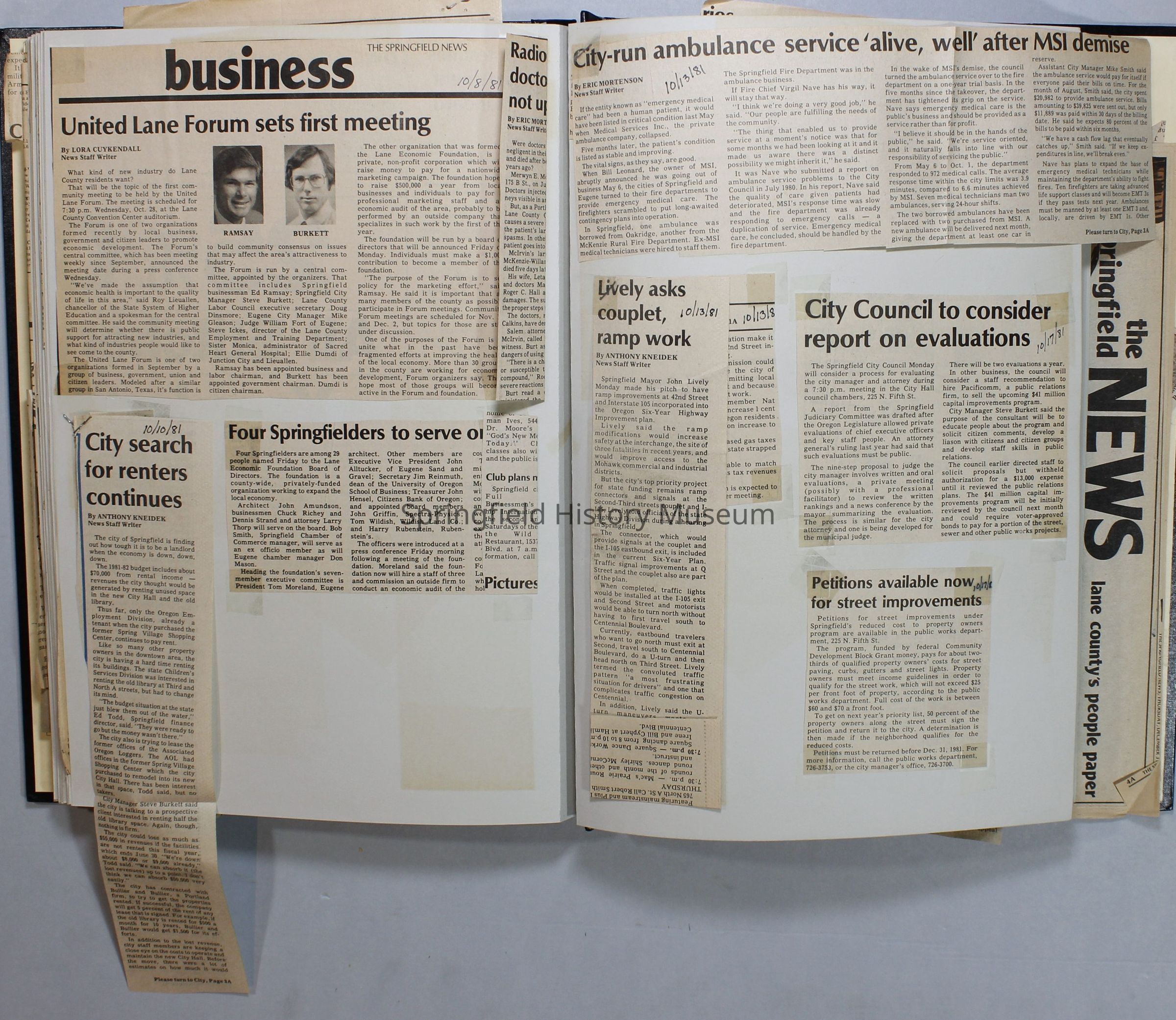 Scrapbook on the government of Springfield, Oregon. Newspaper articles from the Springfield News, 1981.