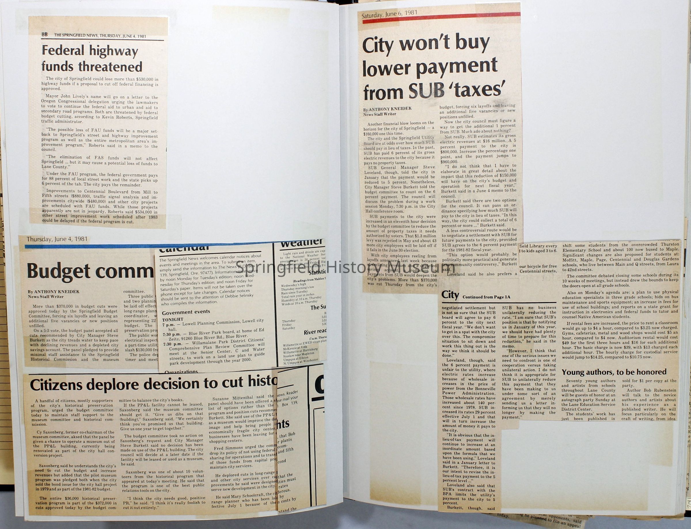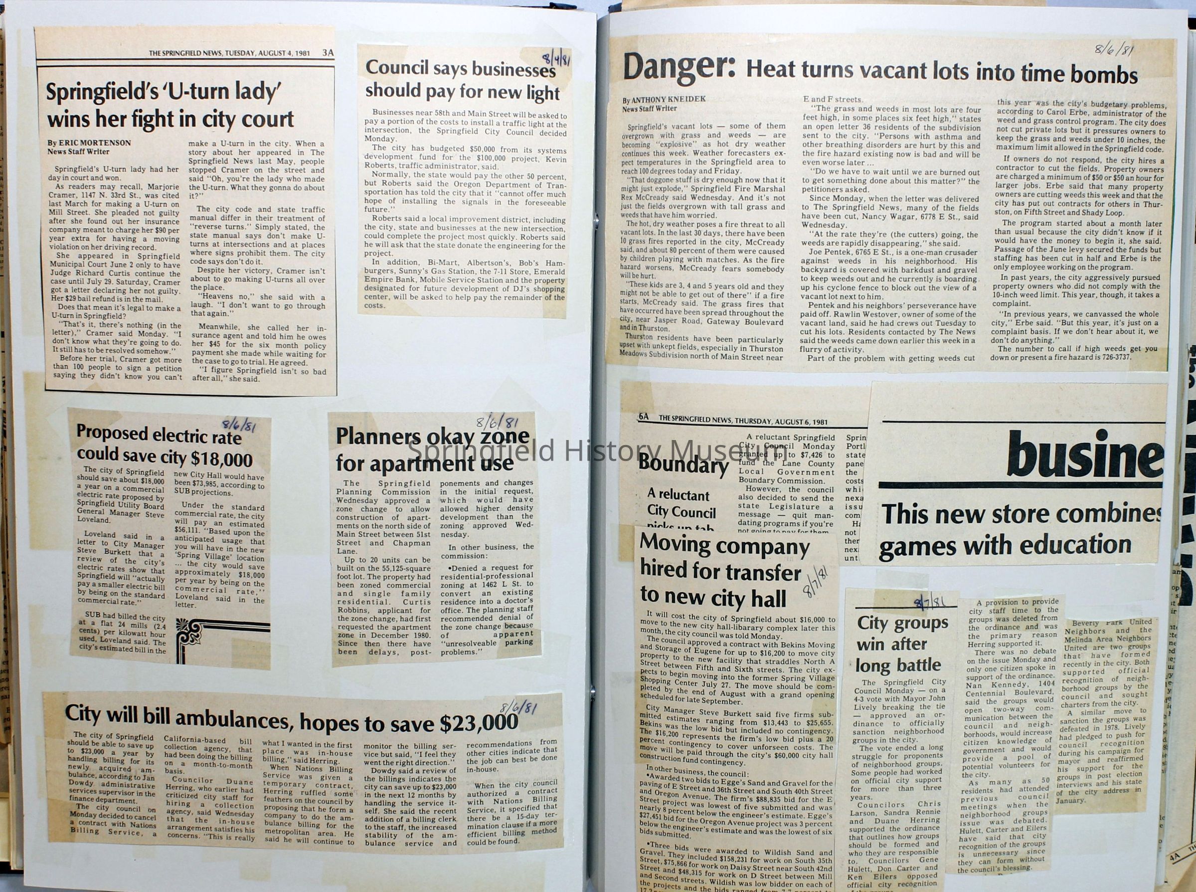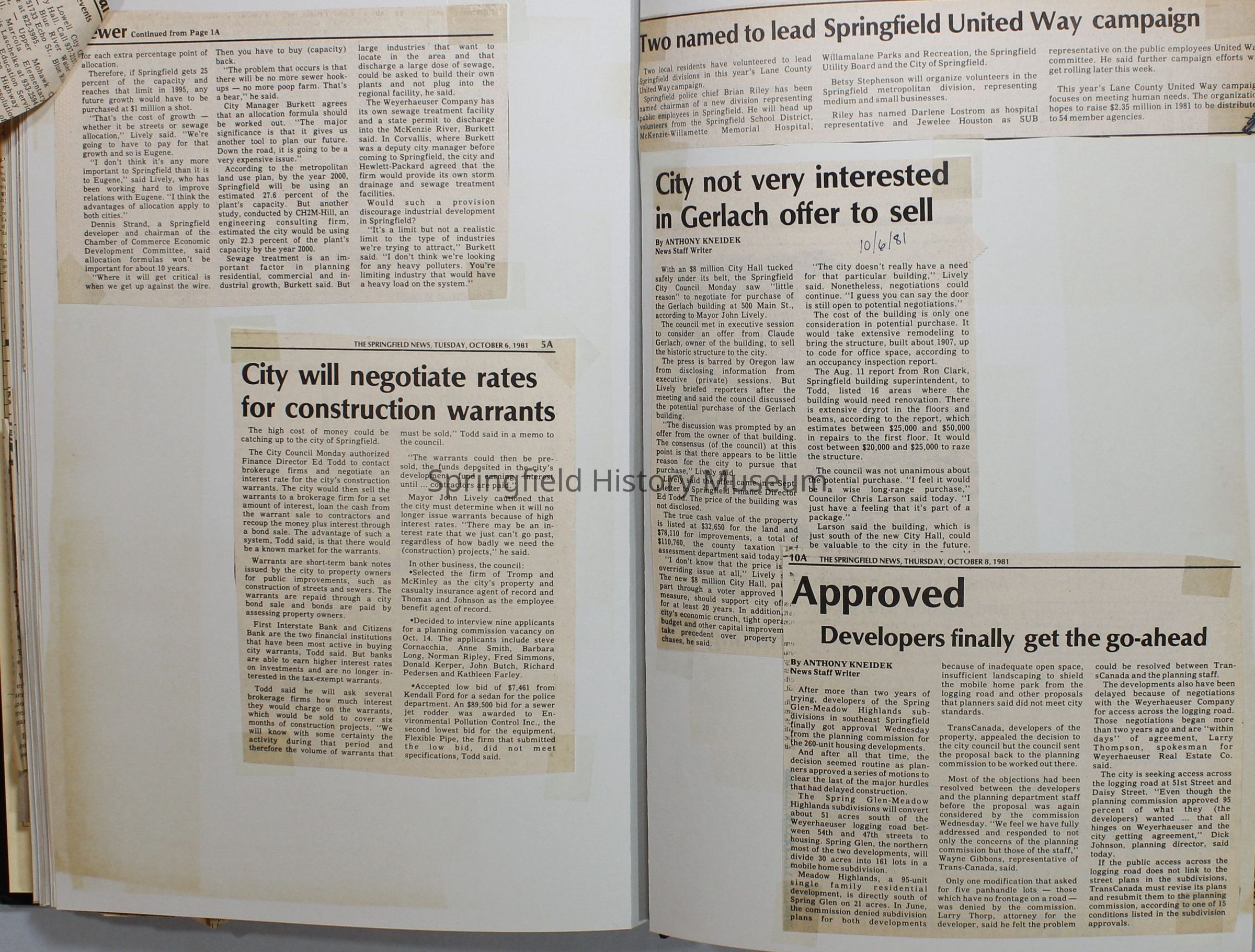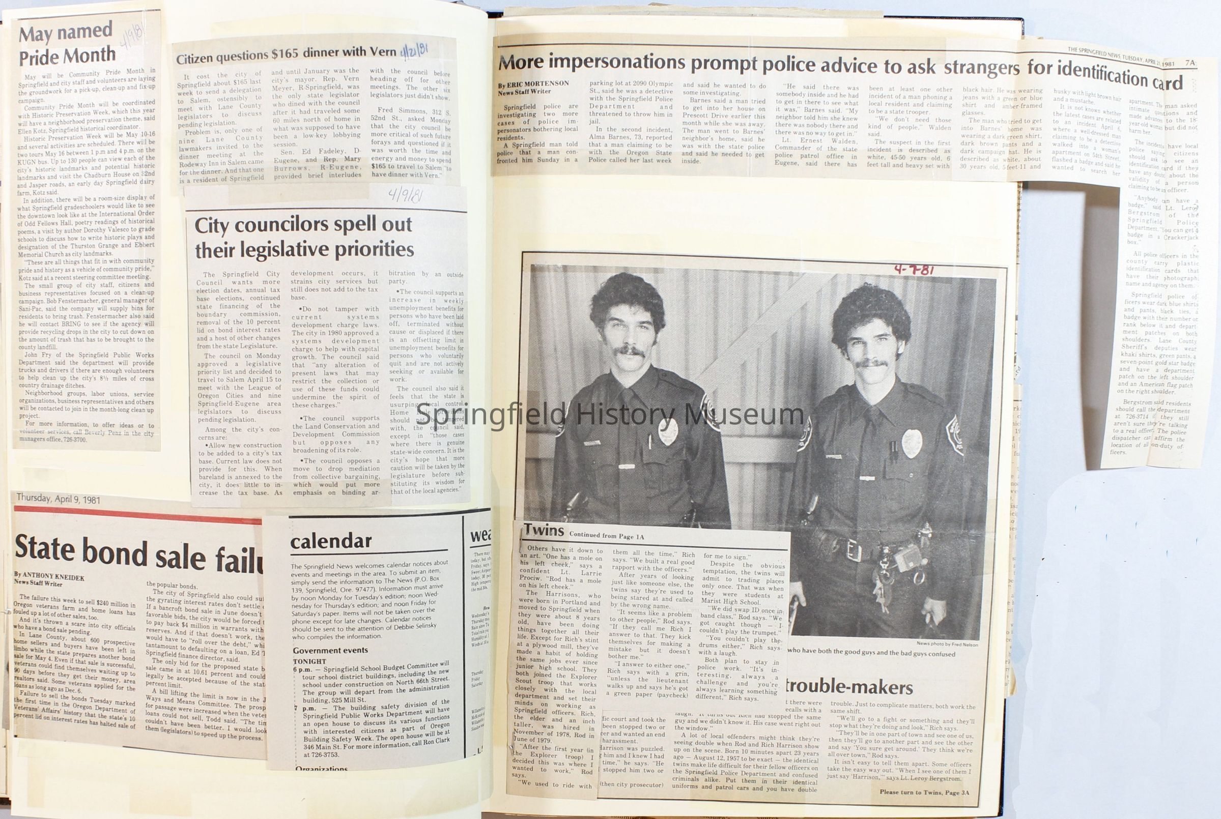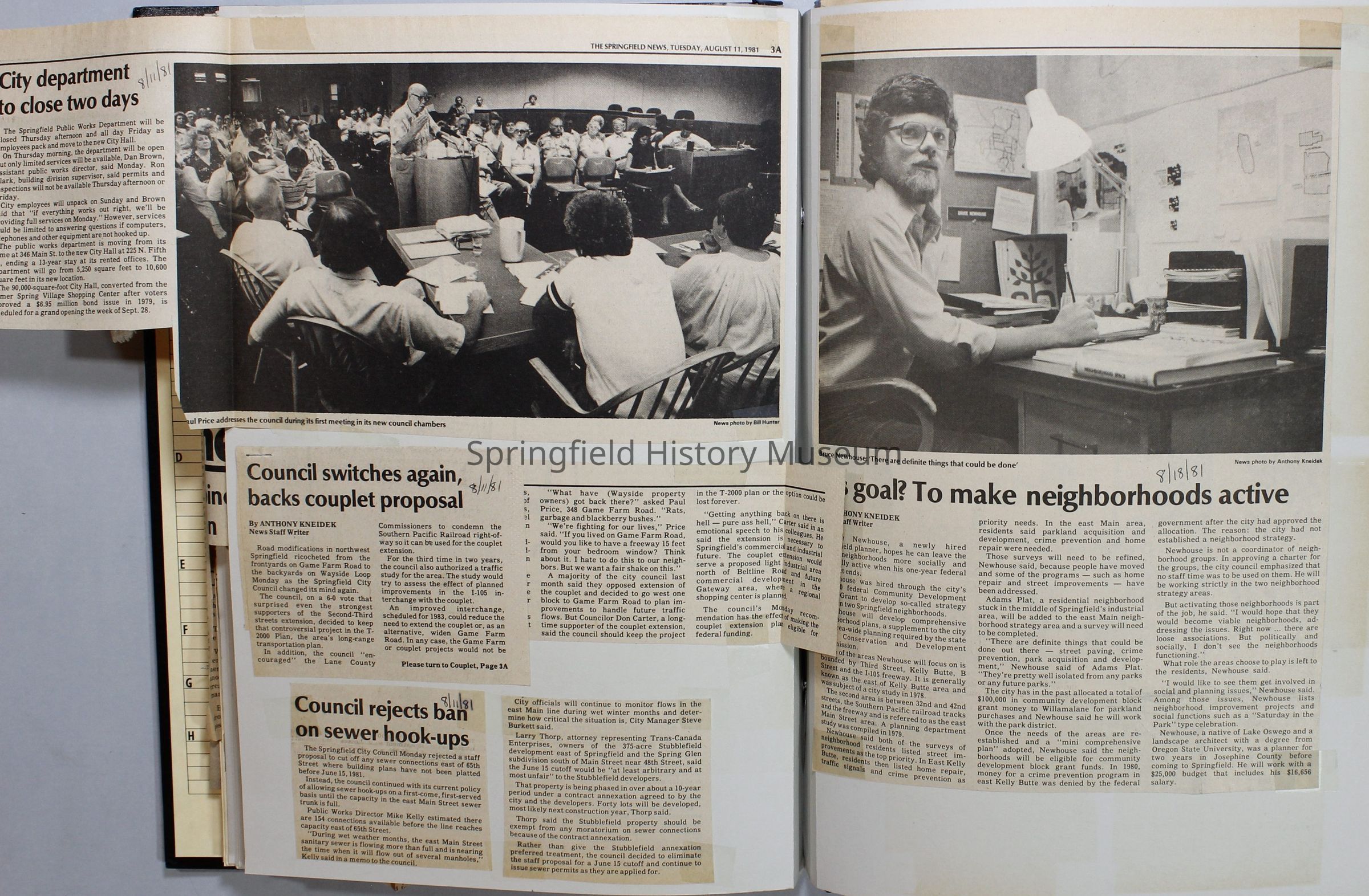 Scrapbook on the government of Springfield, Oregon. Newspaper articles from the Springfield News, 1981.