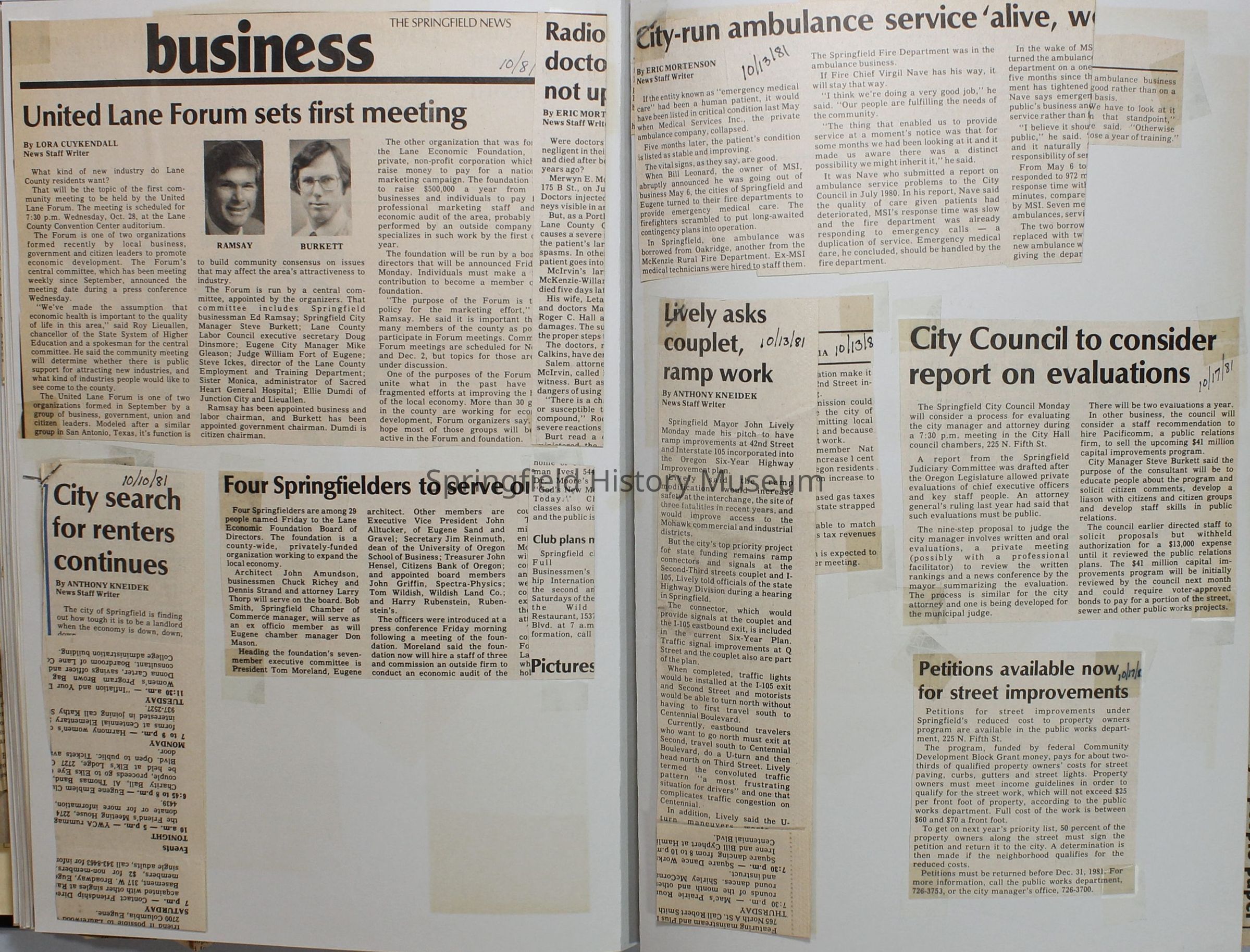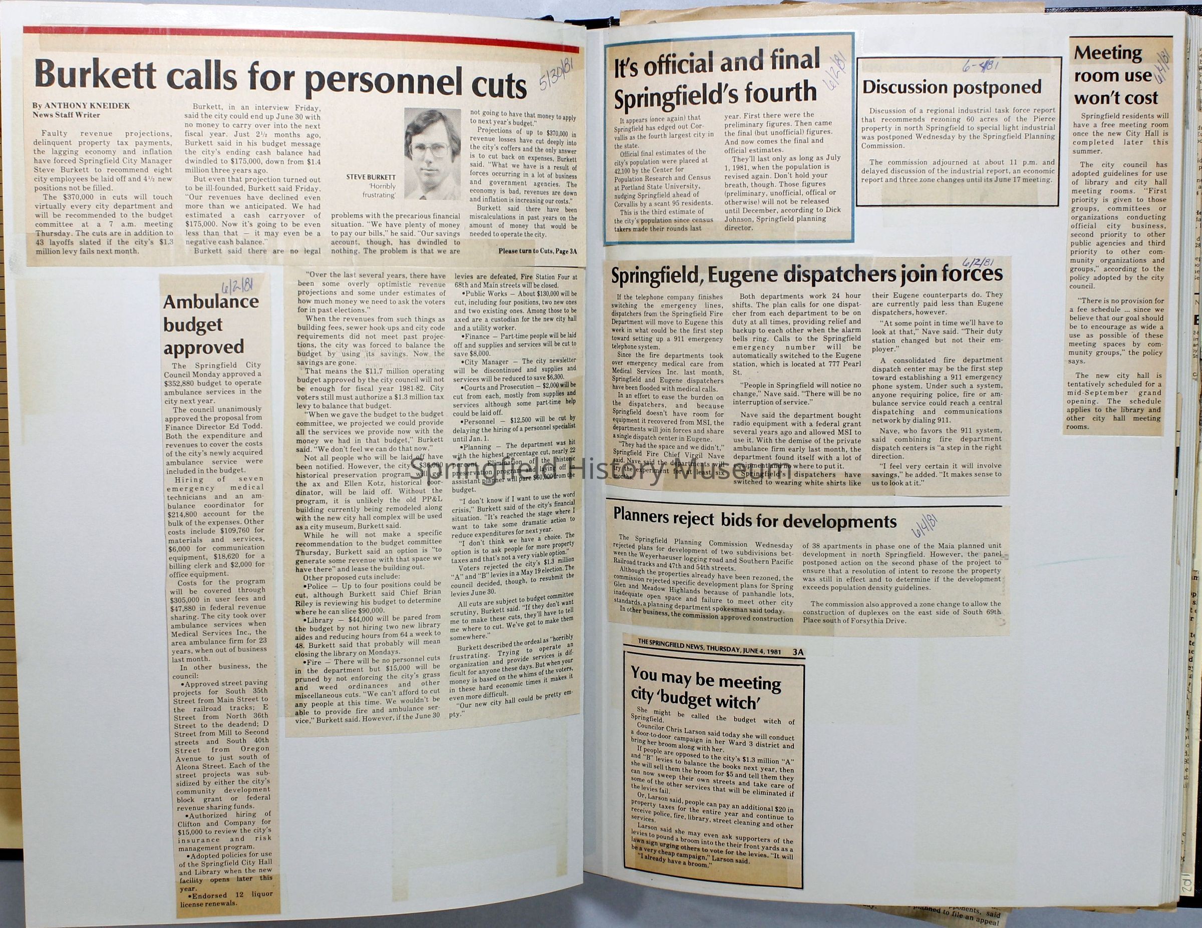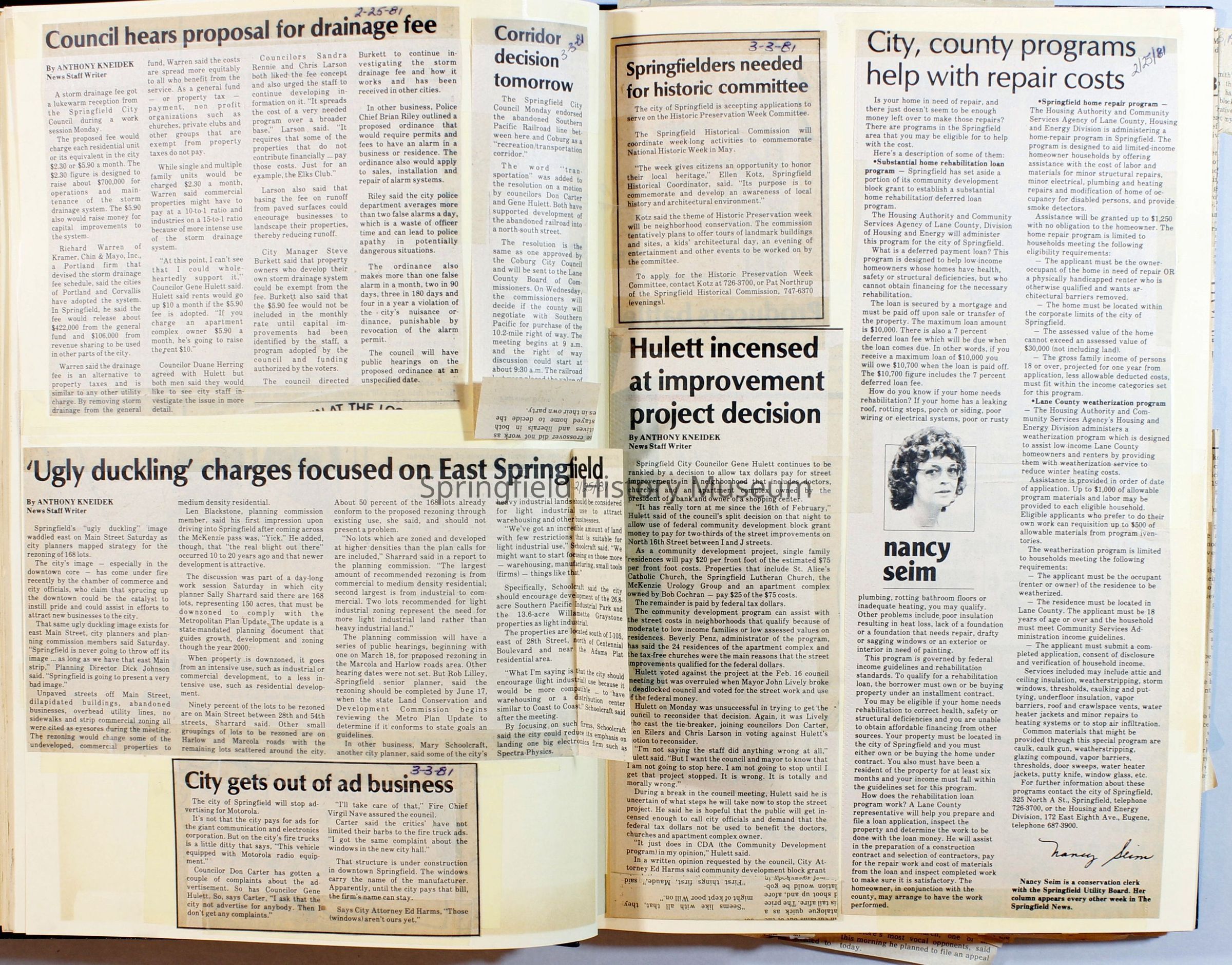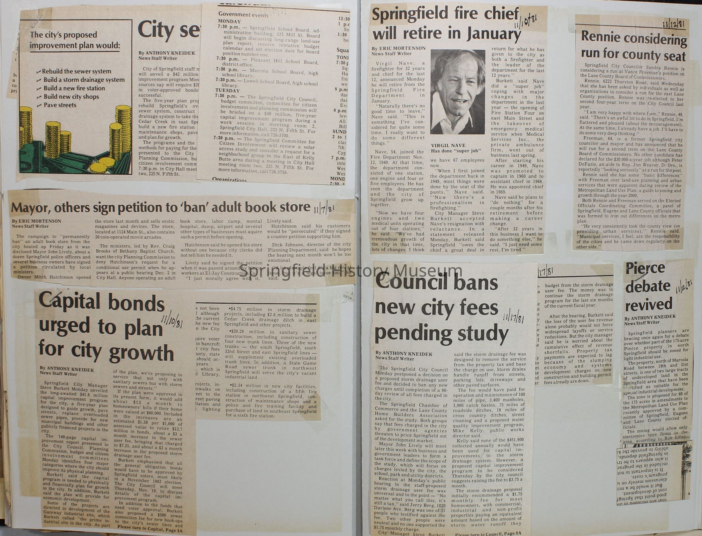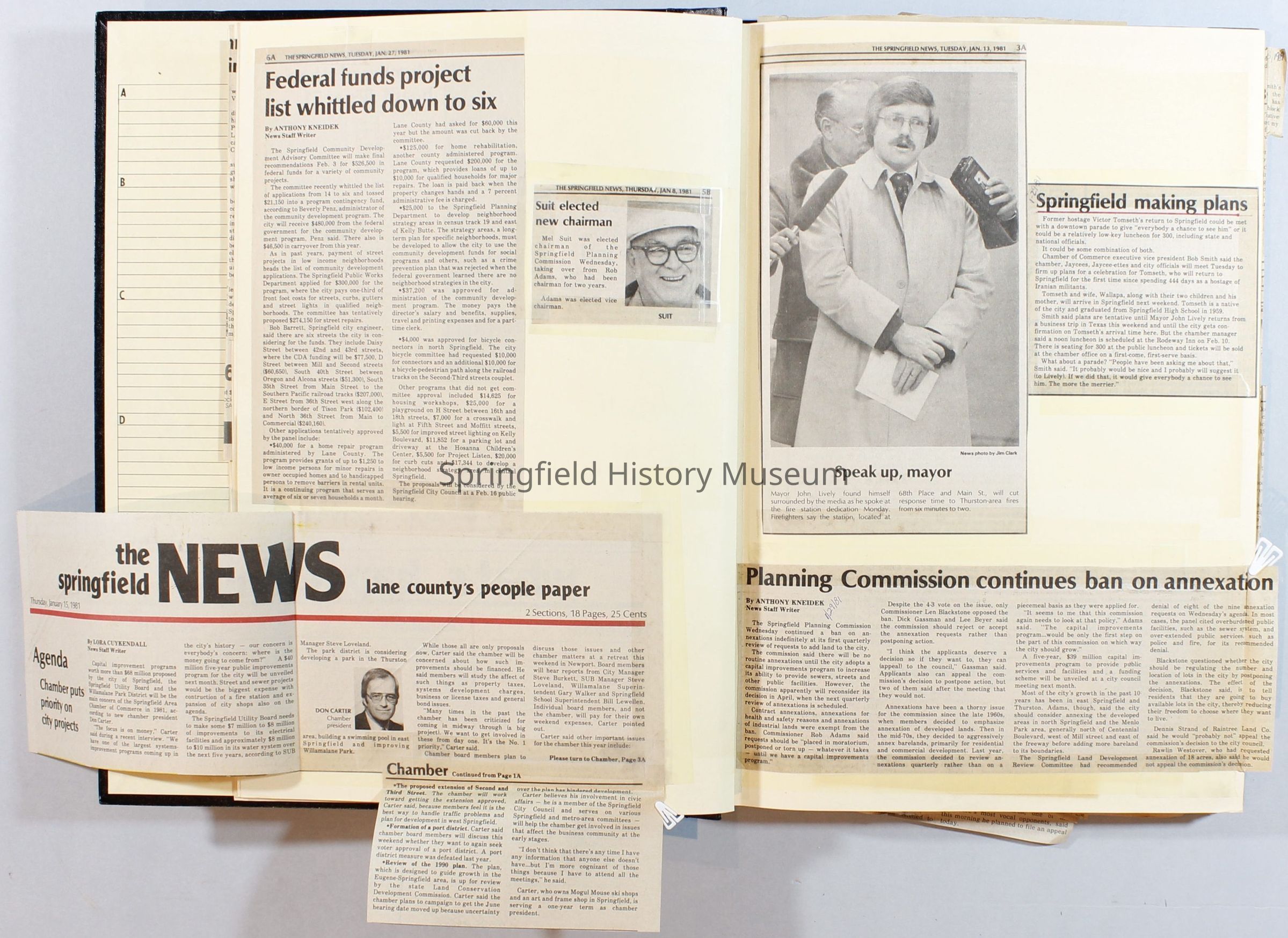 Scrapbook on the government of Springfield, Oregon. Newspaper articles from the Springfield News, 1981.