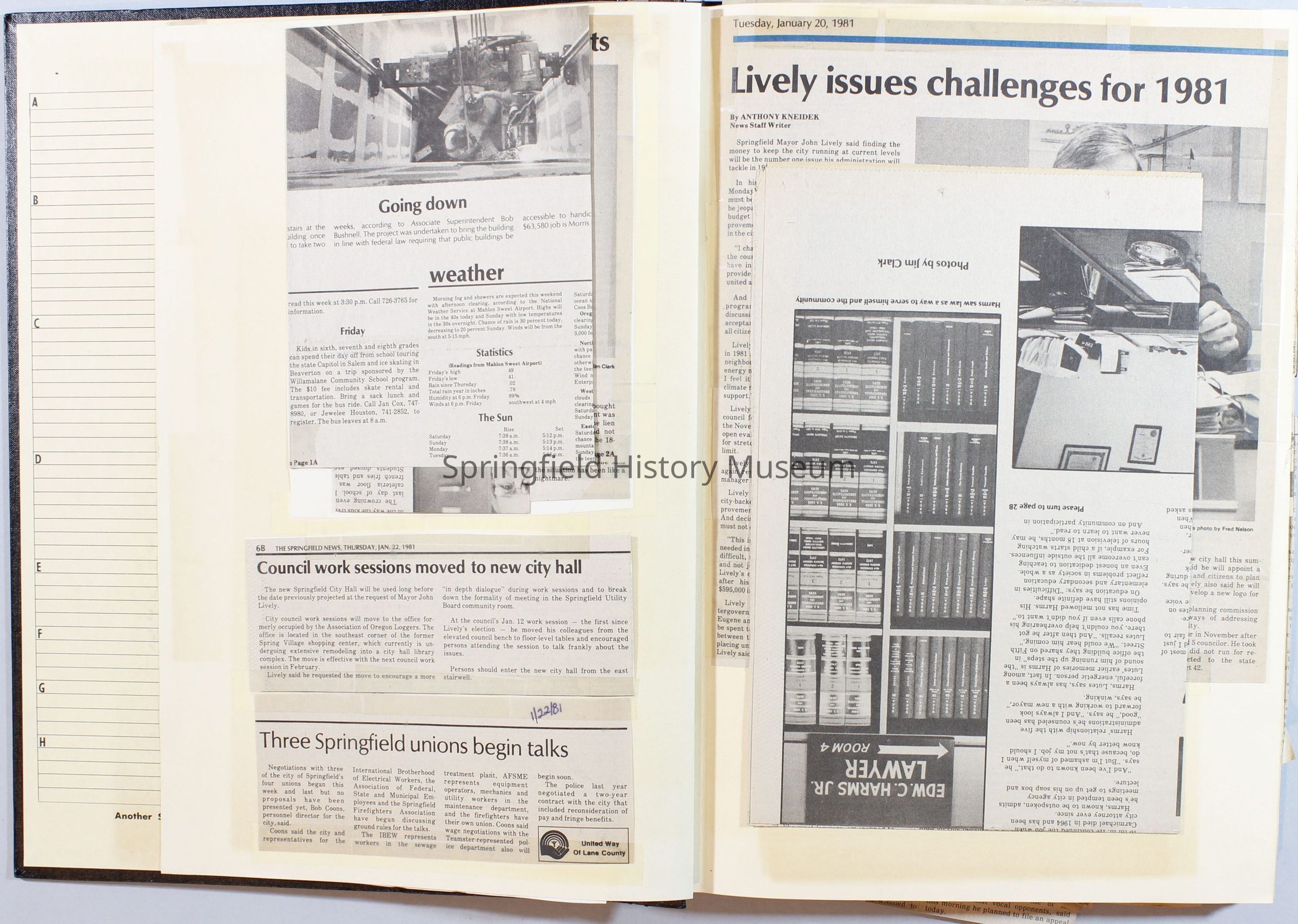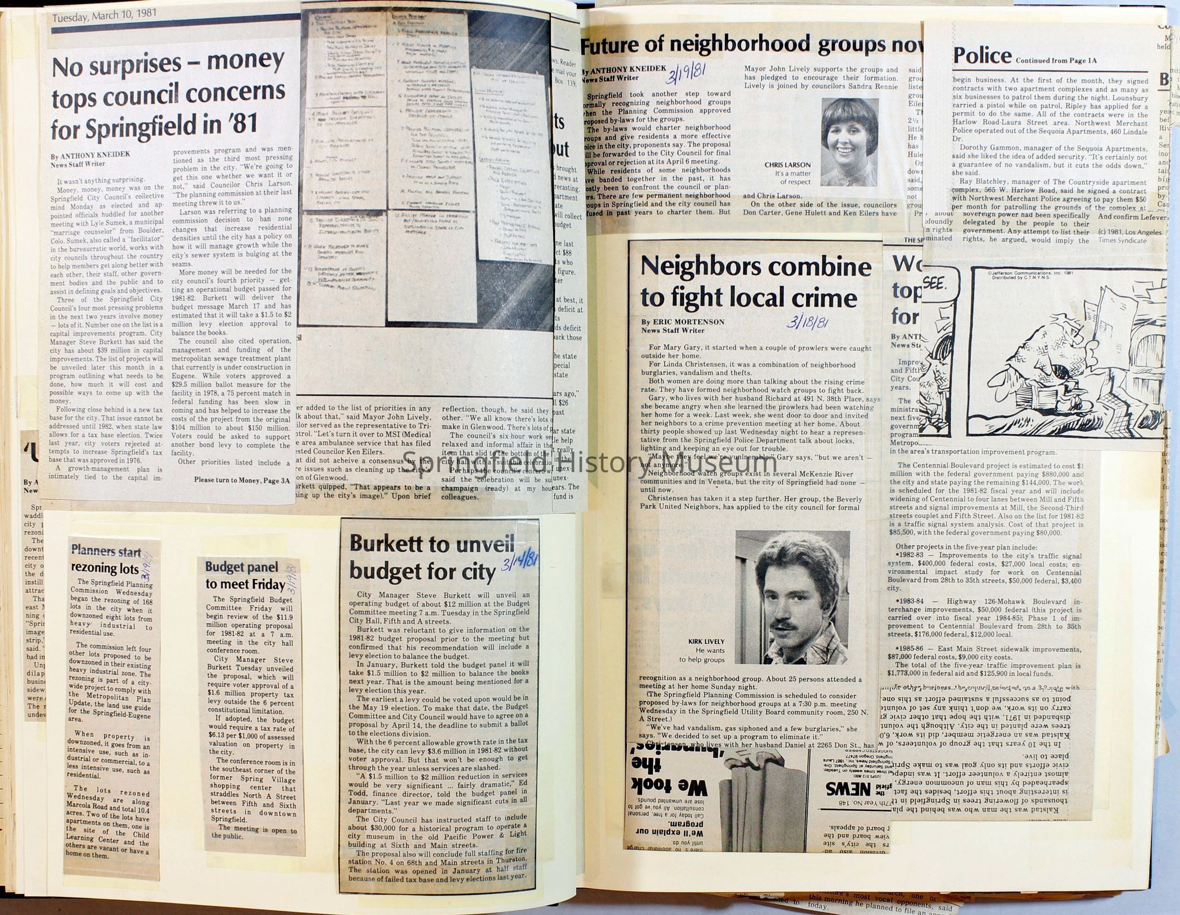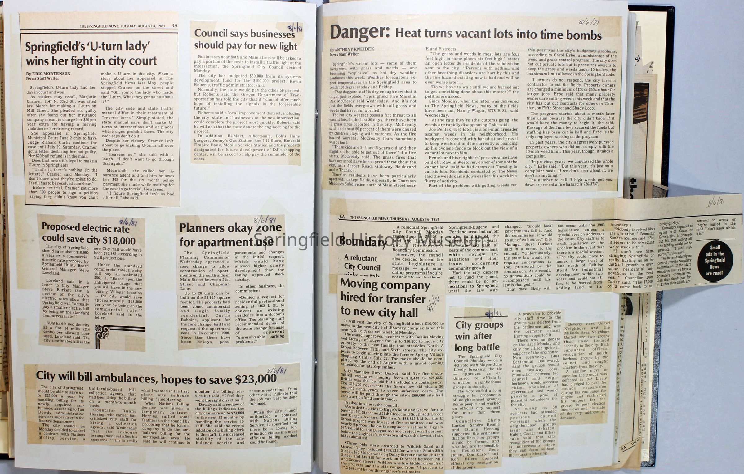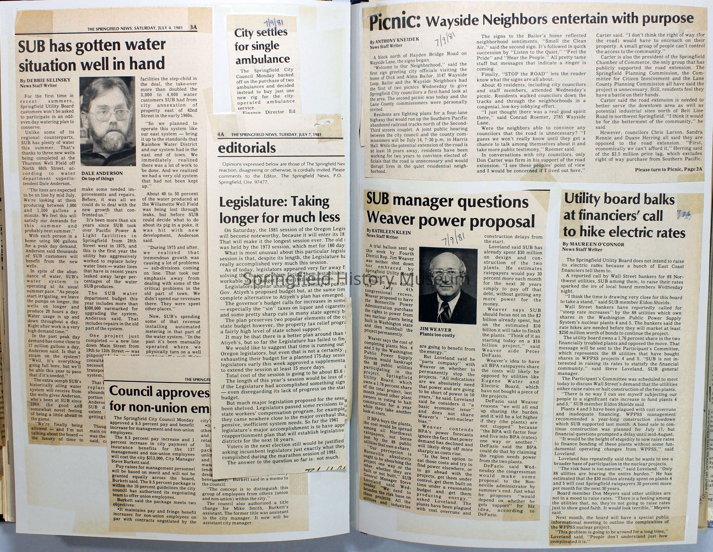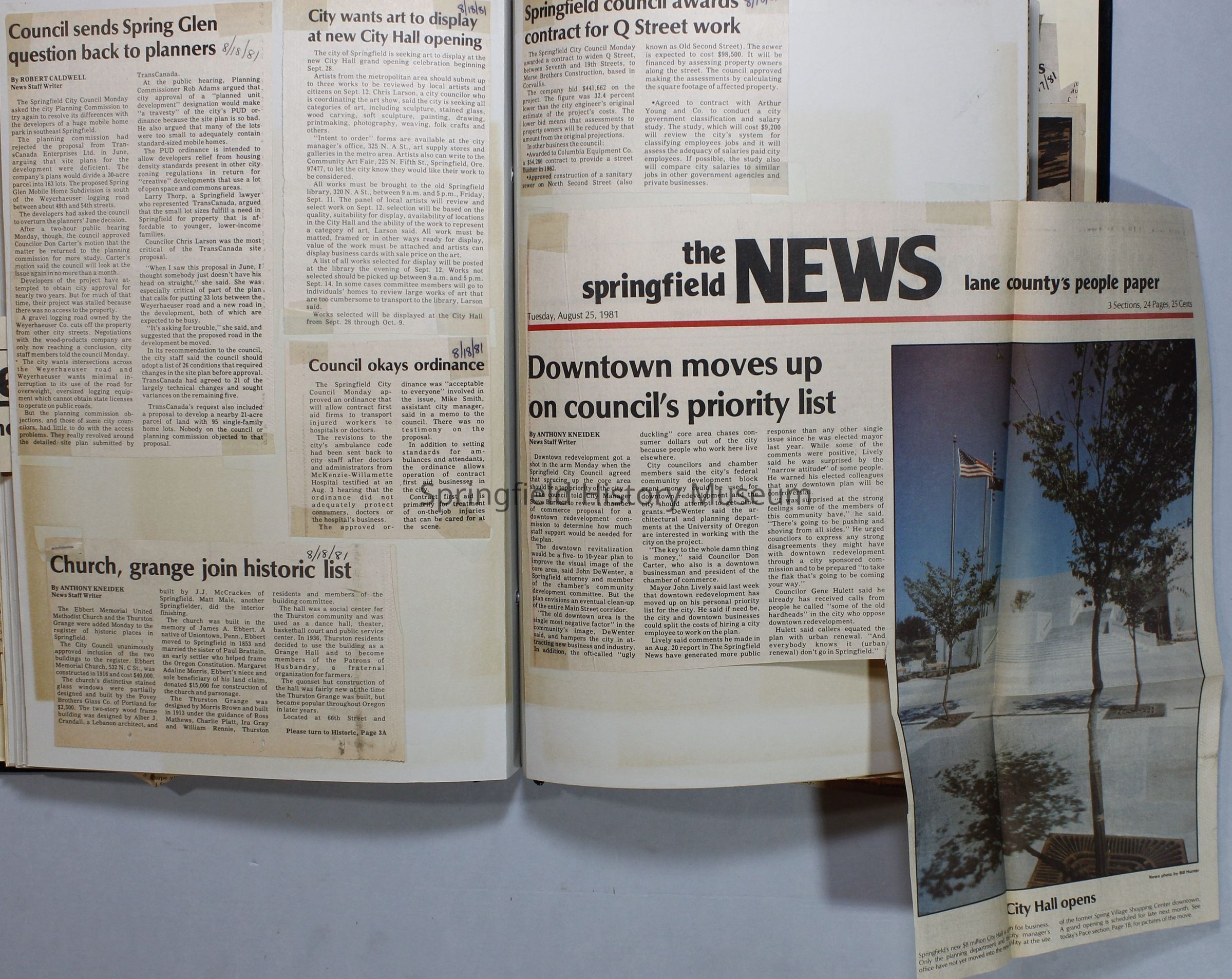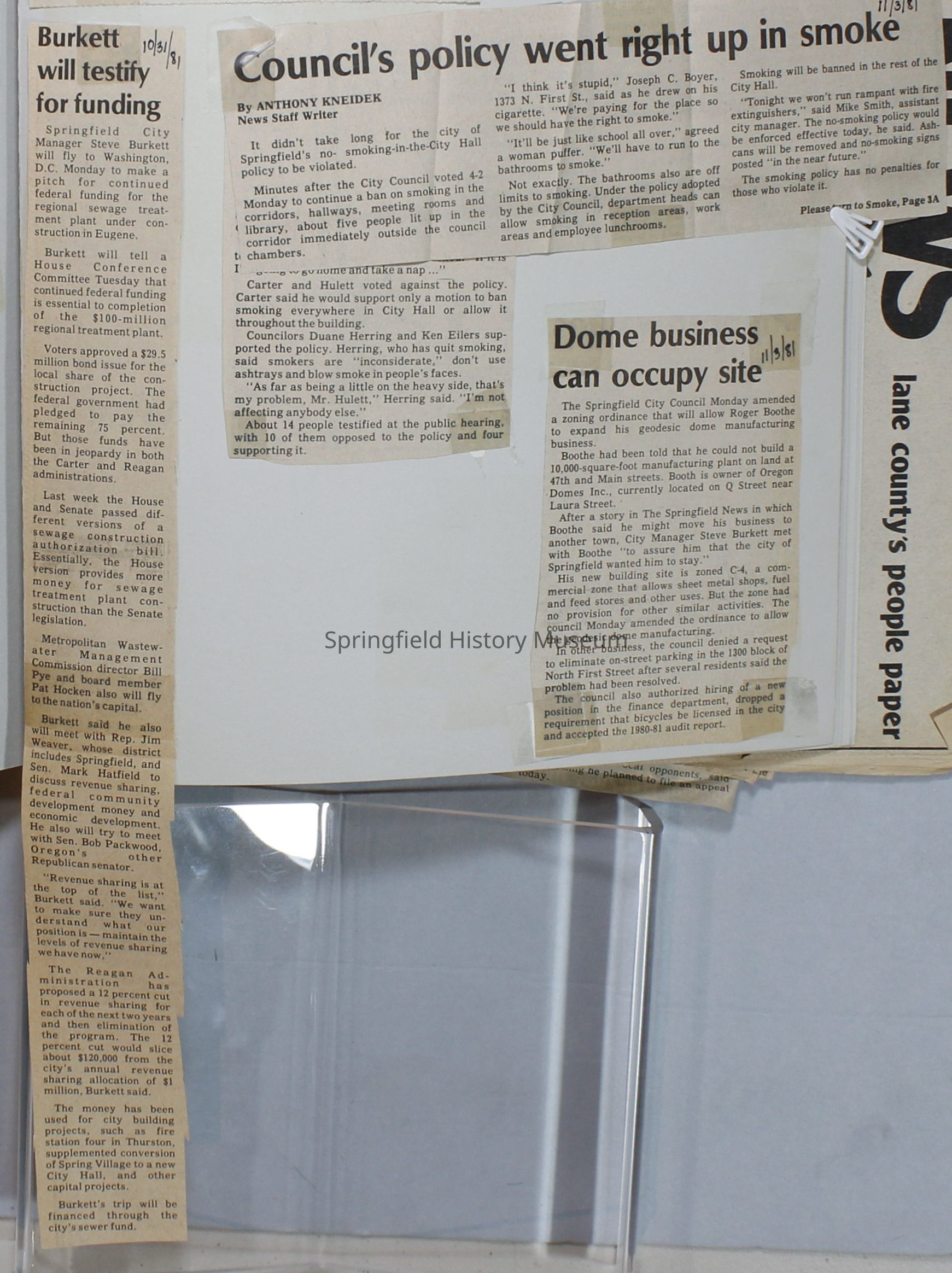 Scrapbook on the government of Springfield, Oregon. Newspaper articles from the Springfield News, 1981.