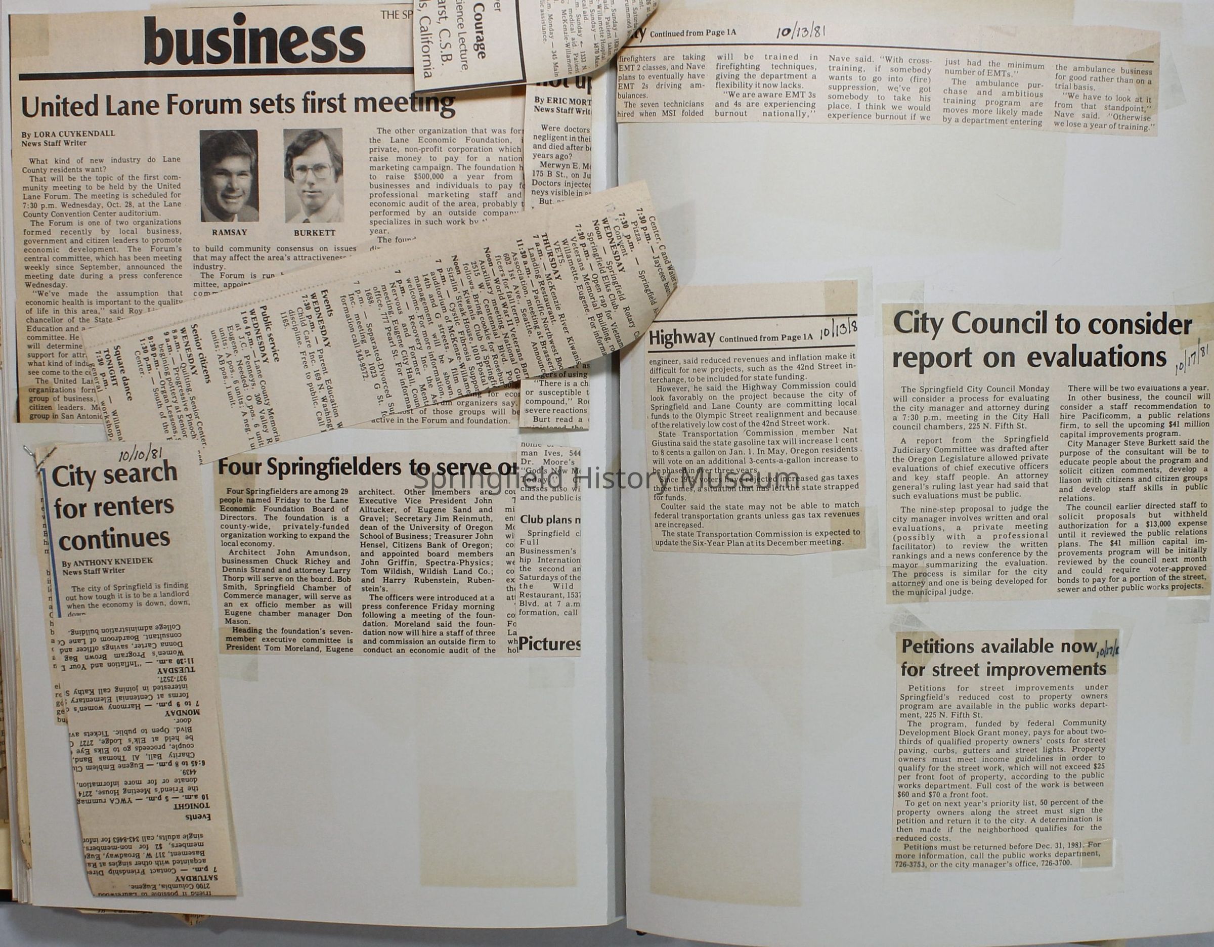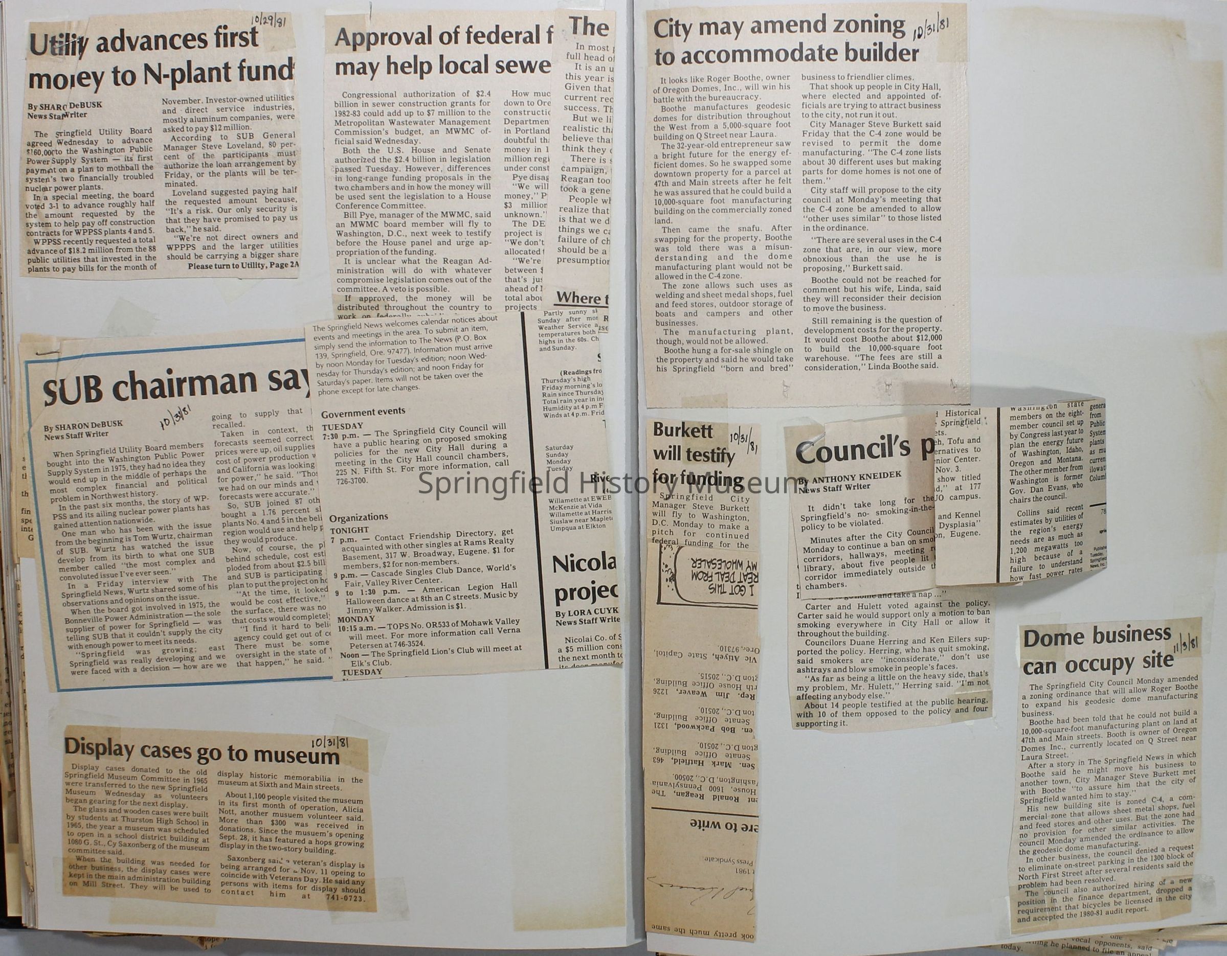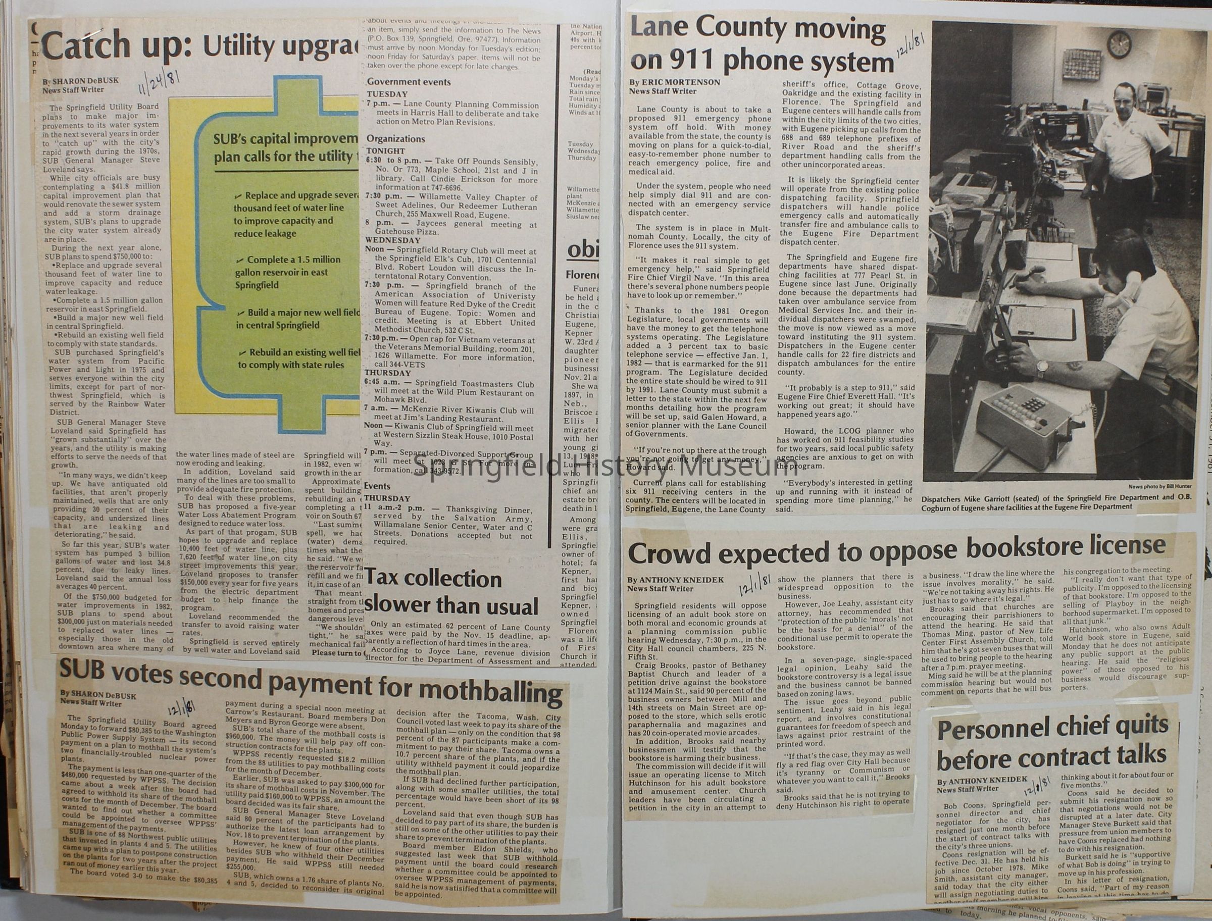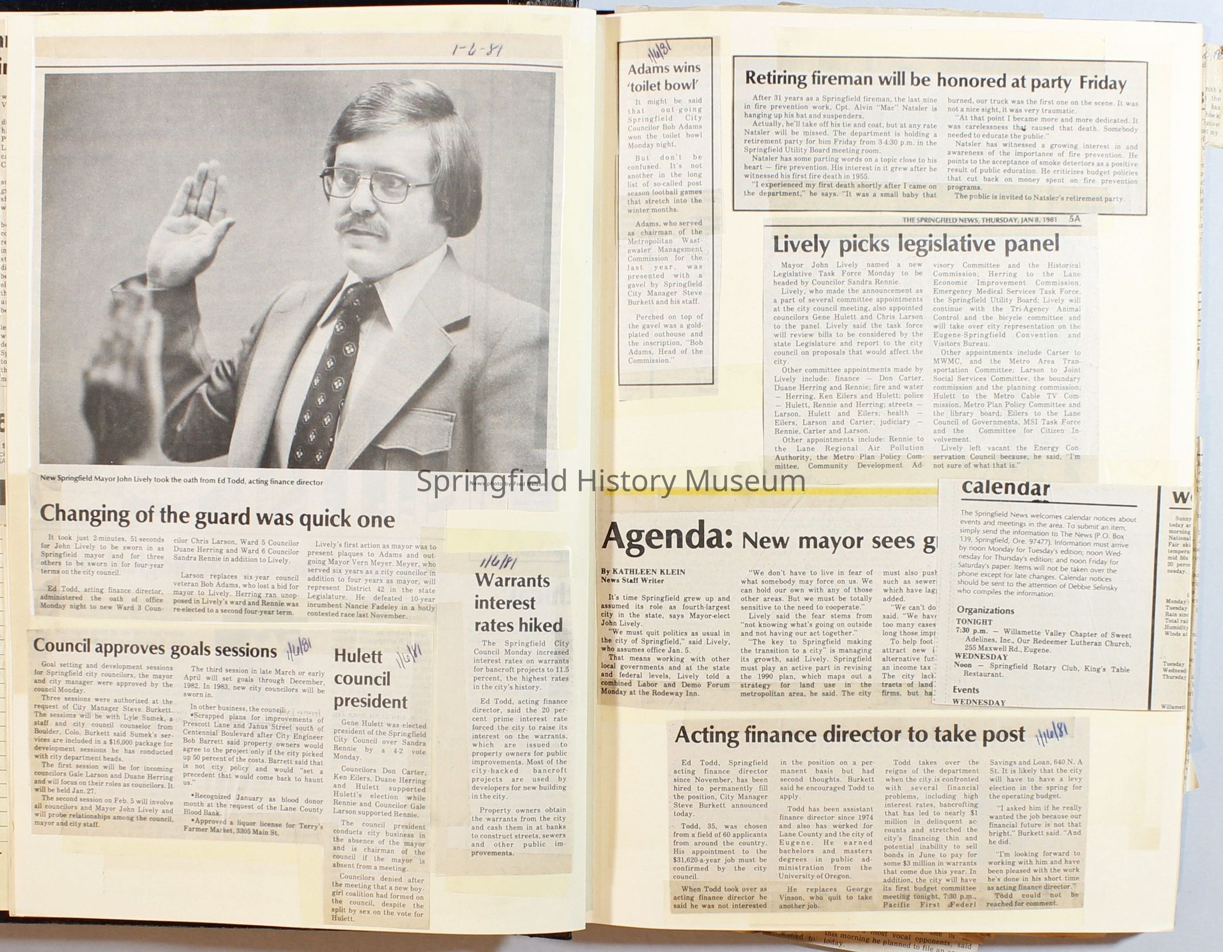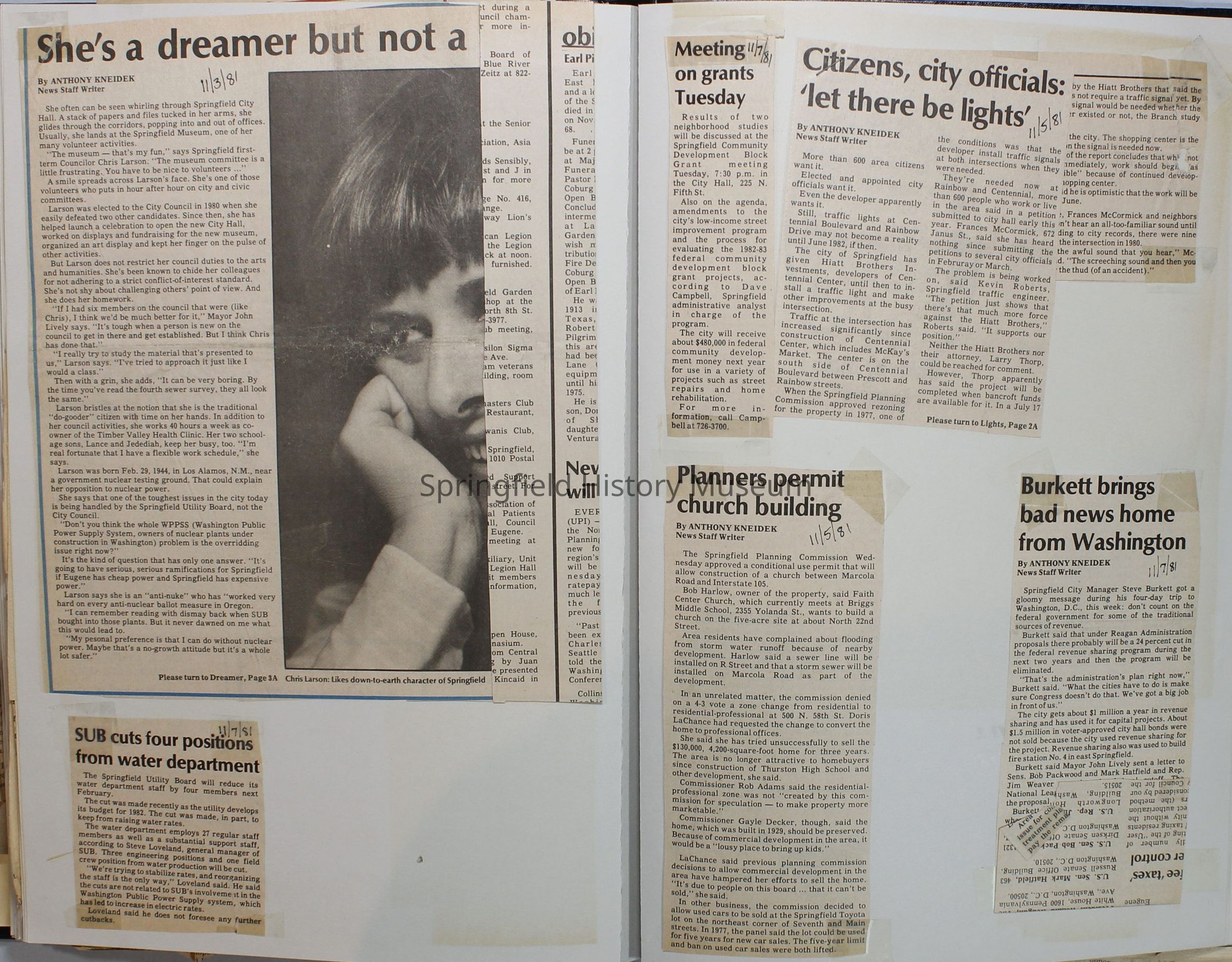 Scrapbook on the government of Springfield, Oregon. Newspaper articles from the Springfield News, 1981.