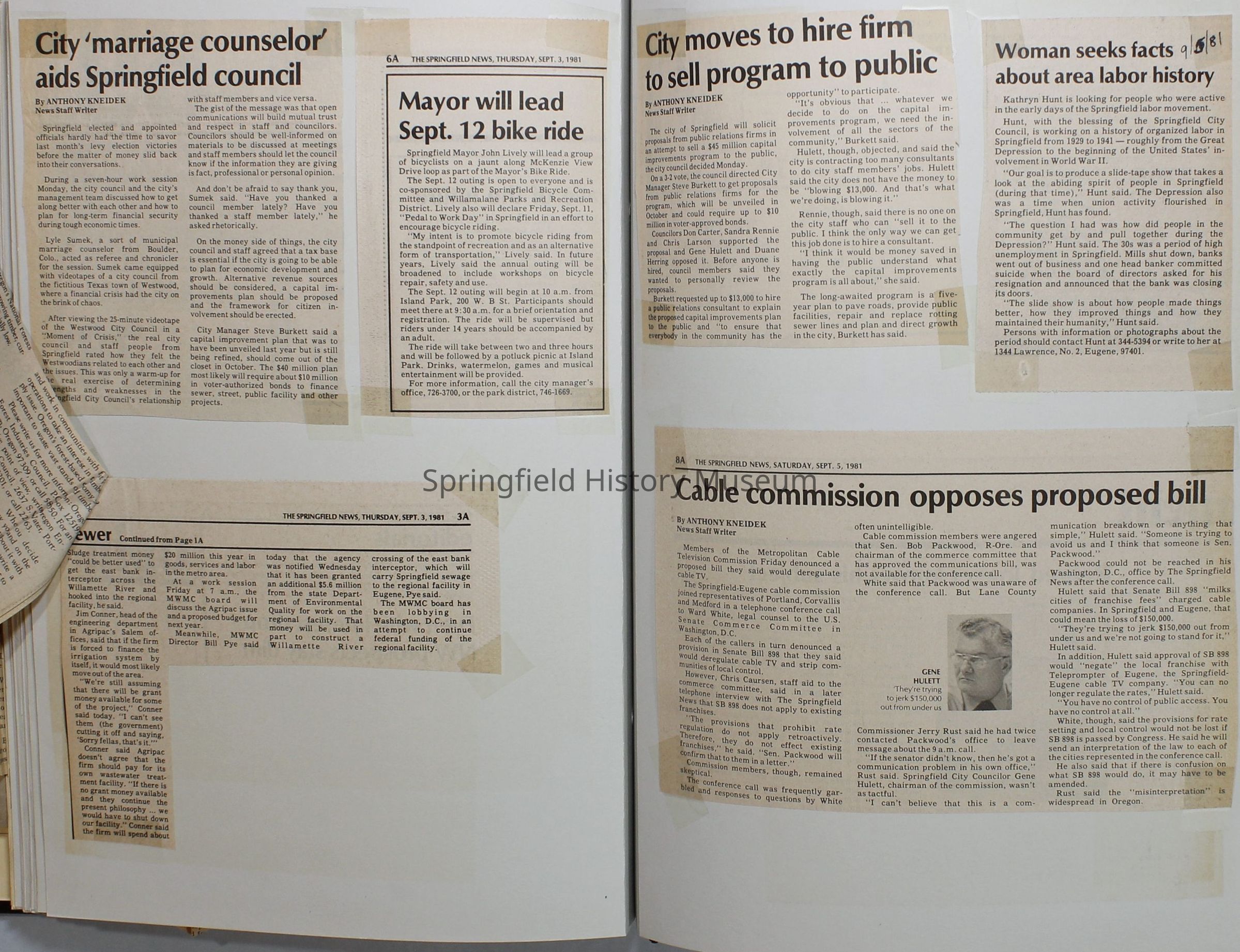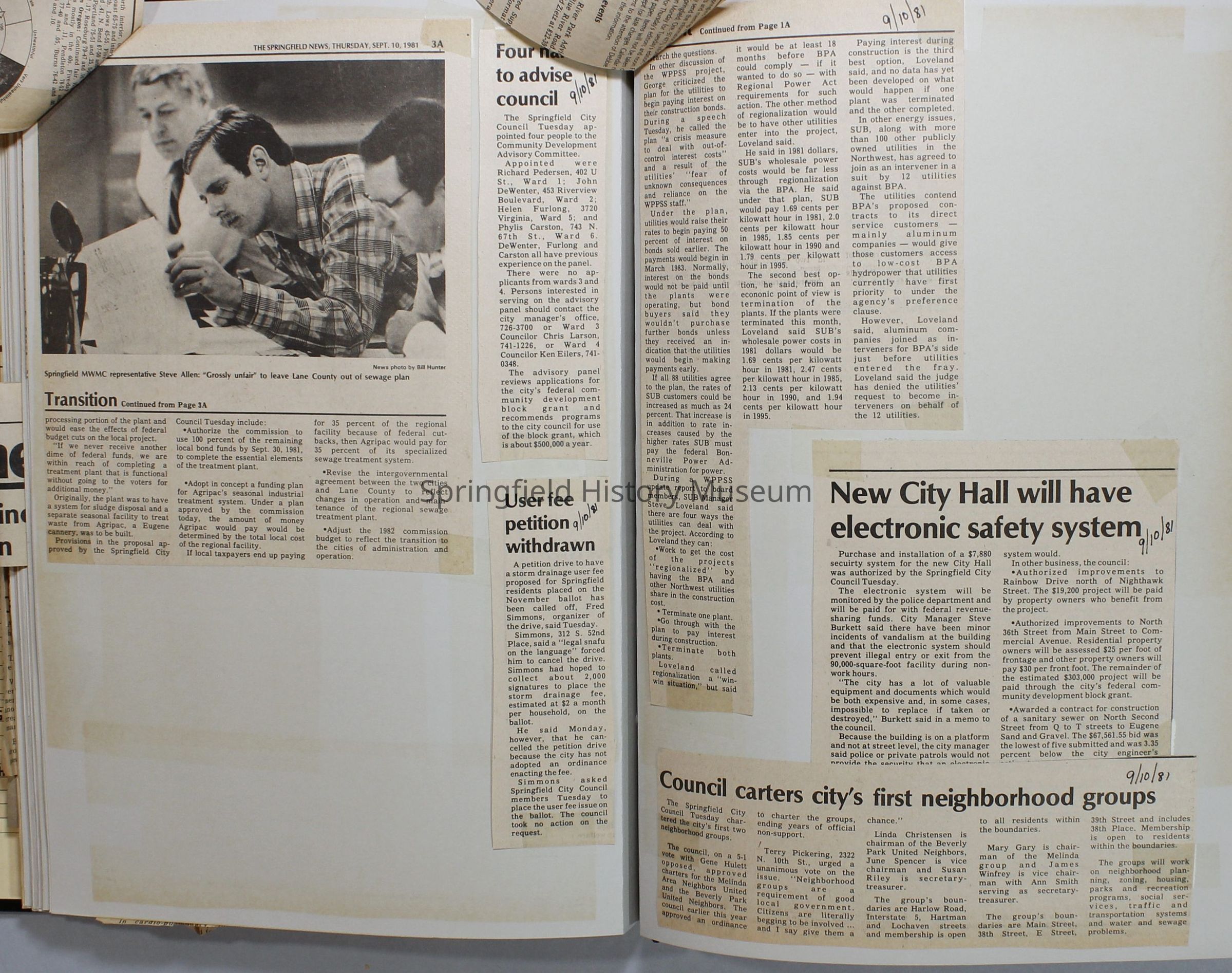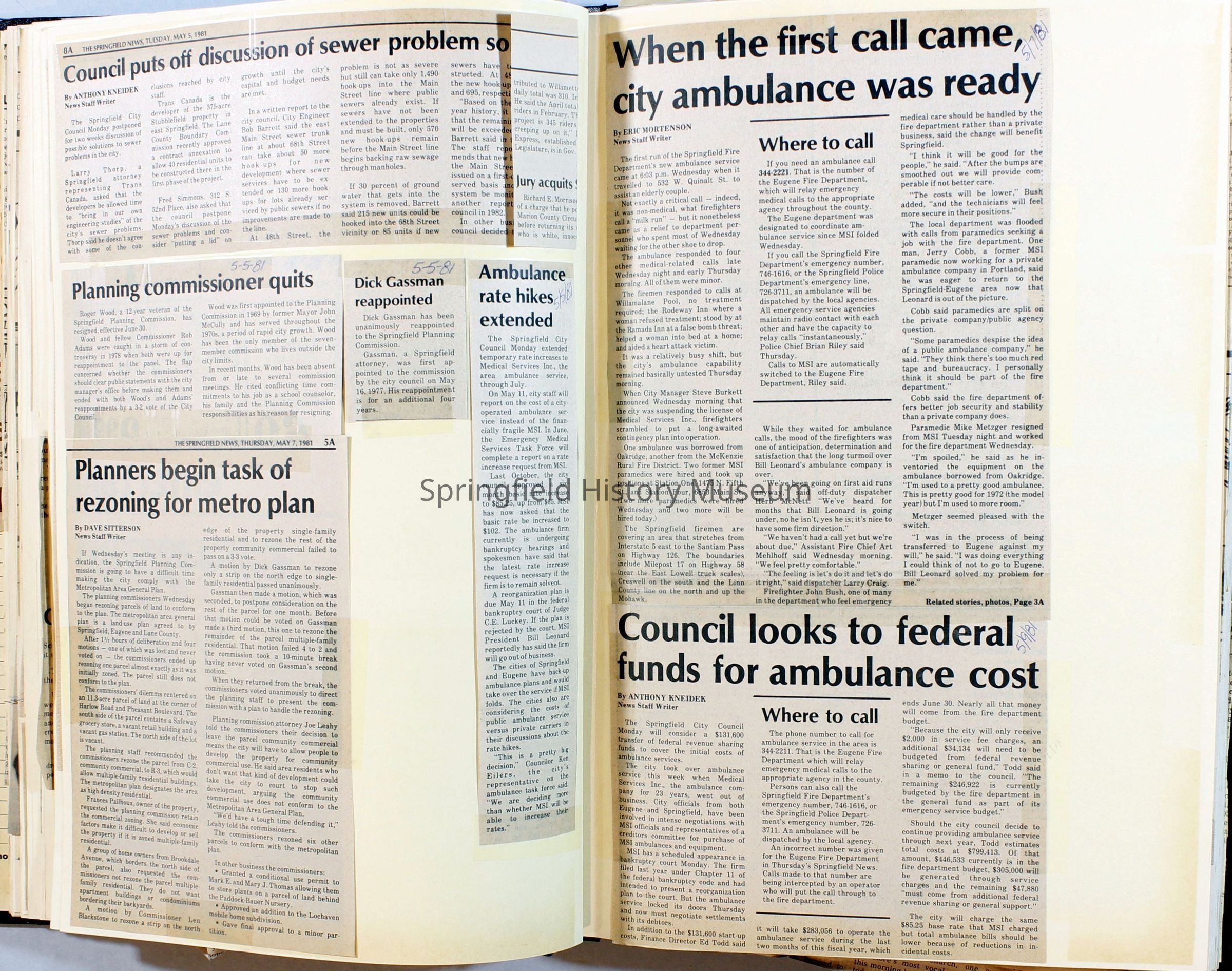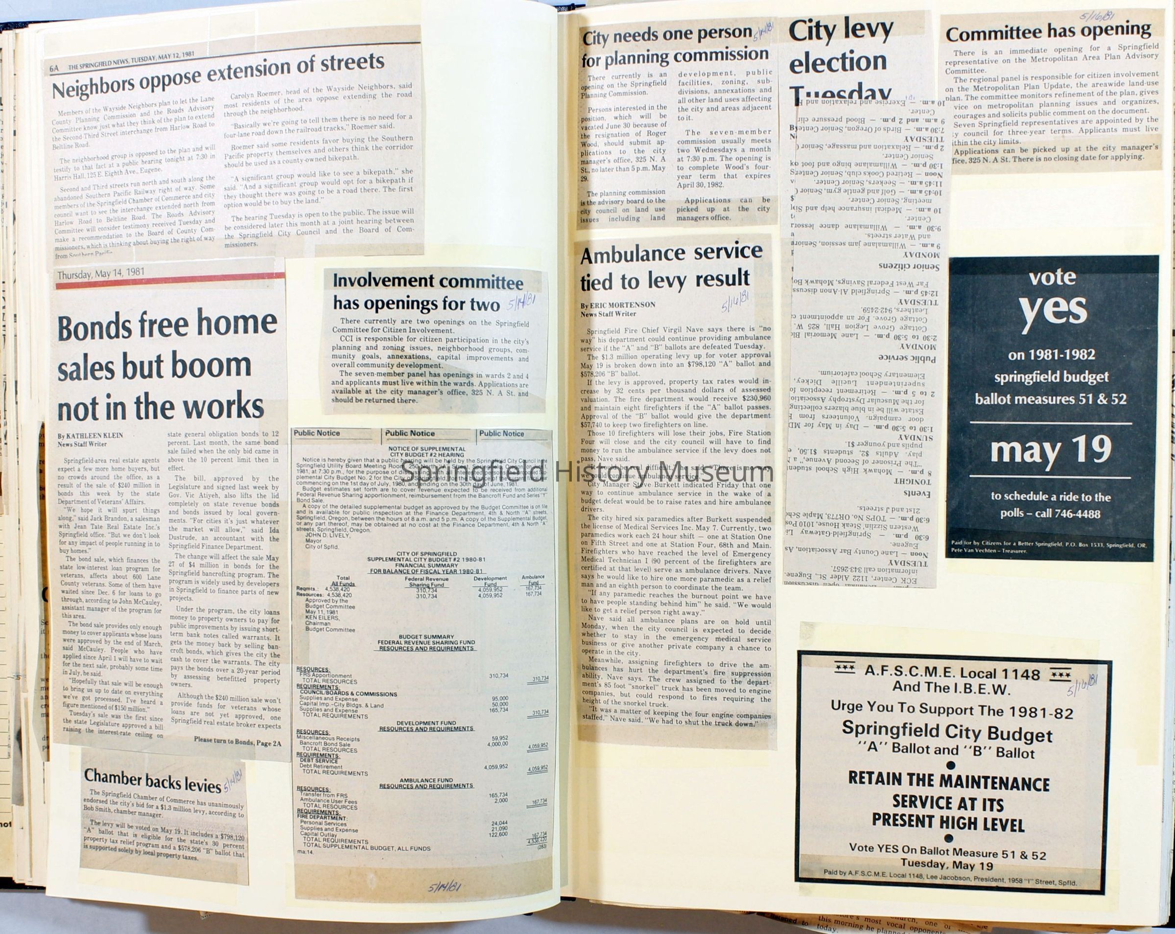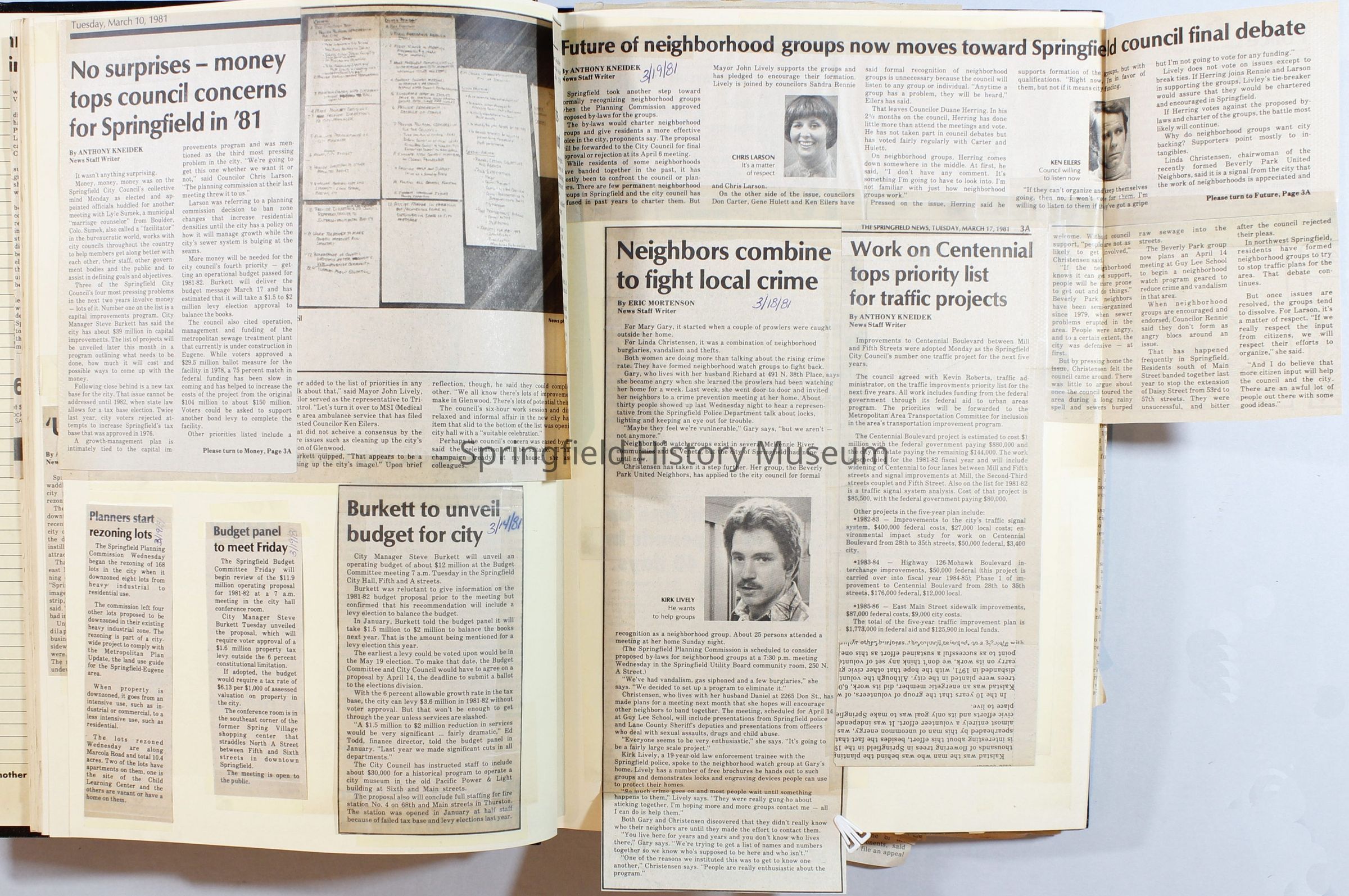Scrapbook on the government of Springfield, Oregon. Newspaper articles from the Springfield News, 1981.