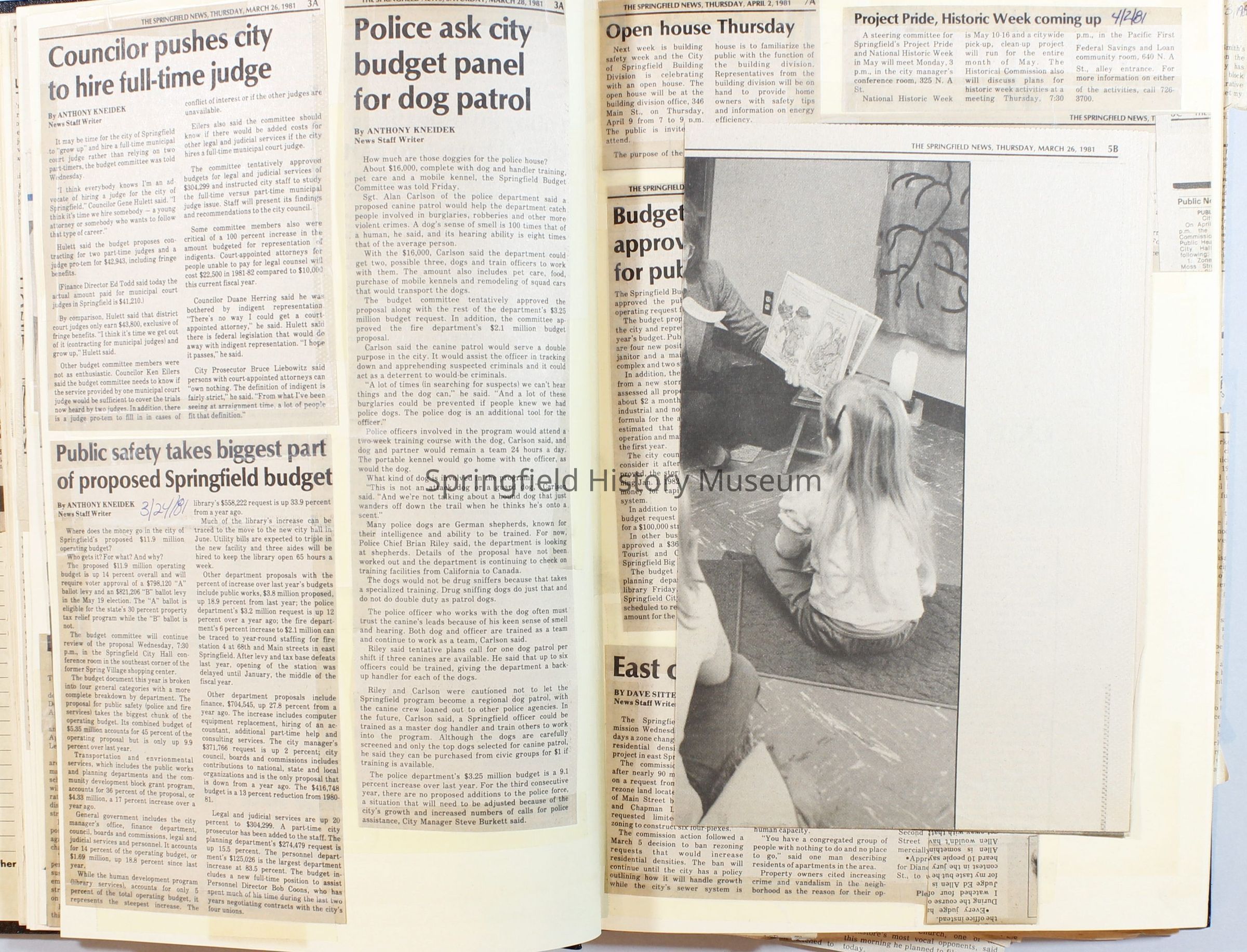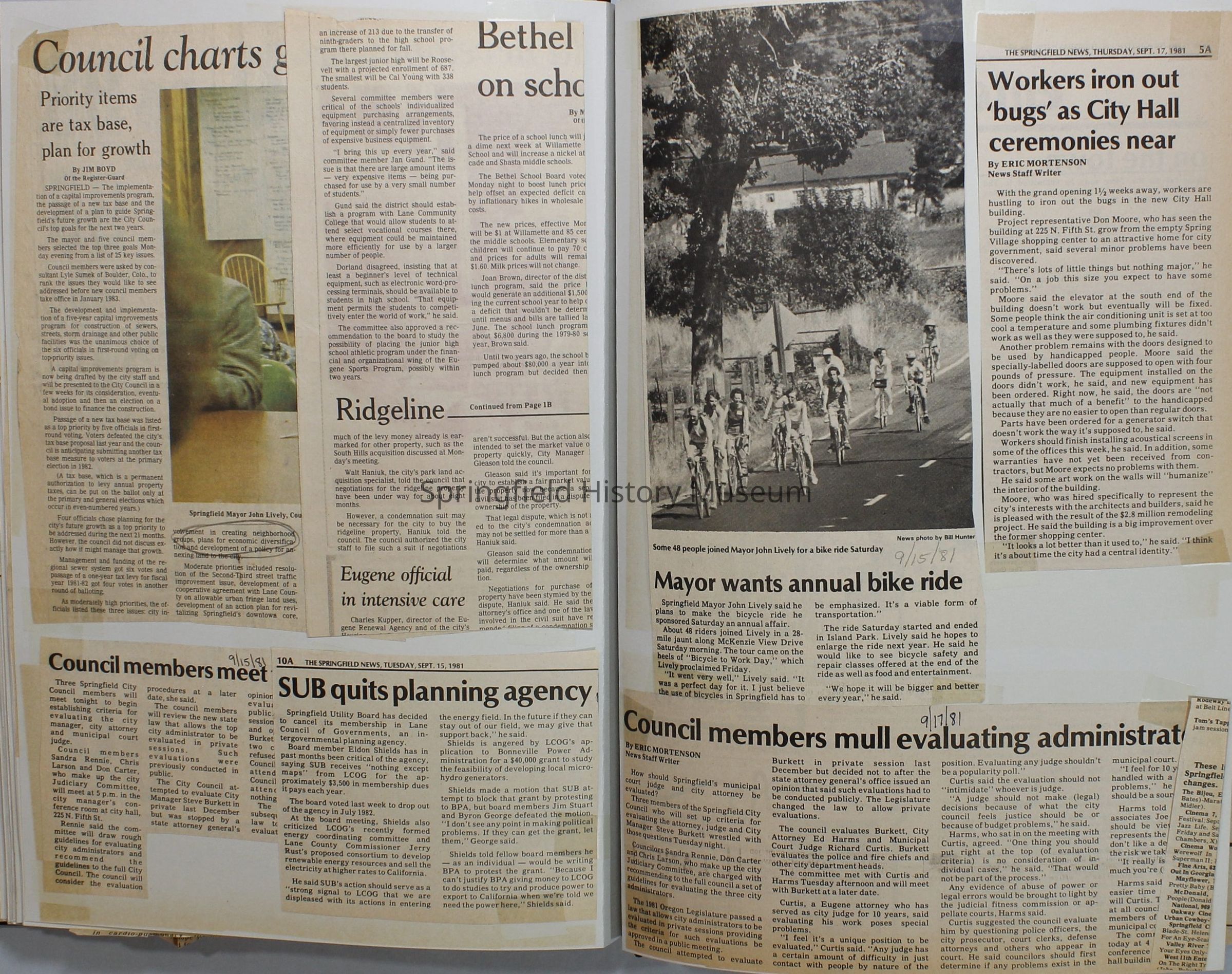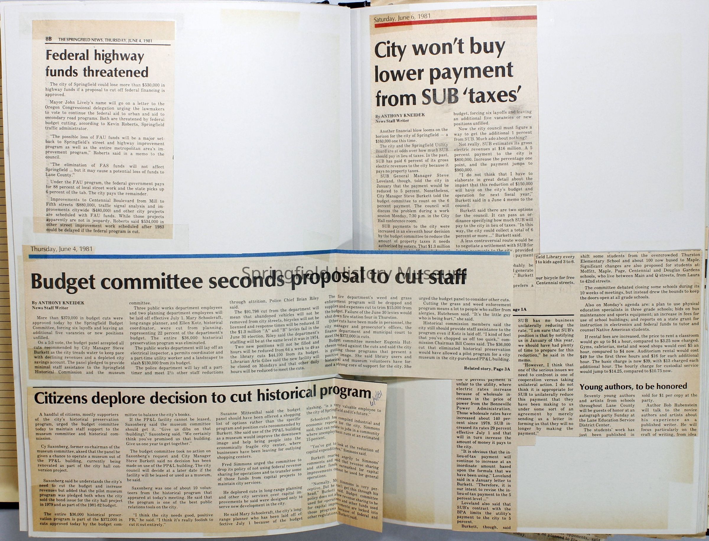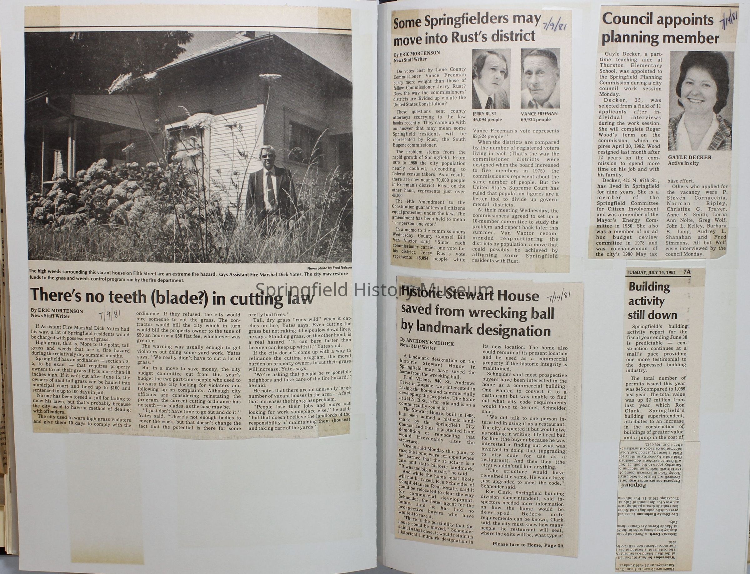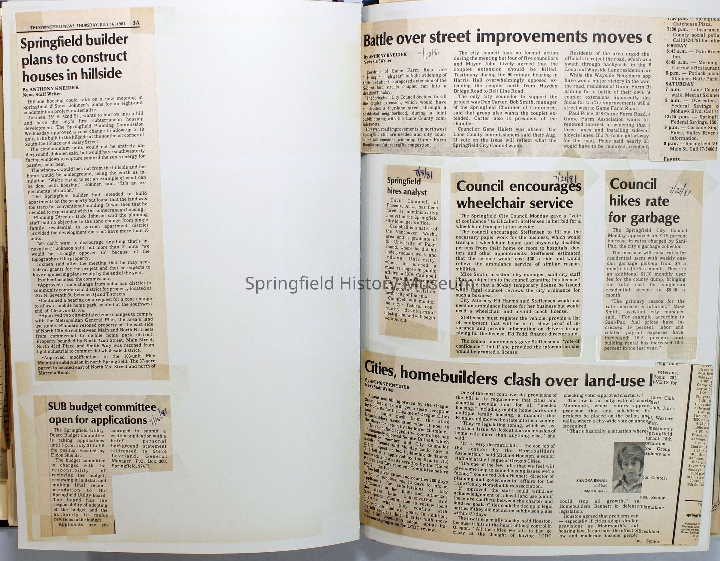 Scrapbook on the government of Springfield, Oregon. Newspaper articles from the Springfield News, 1981.