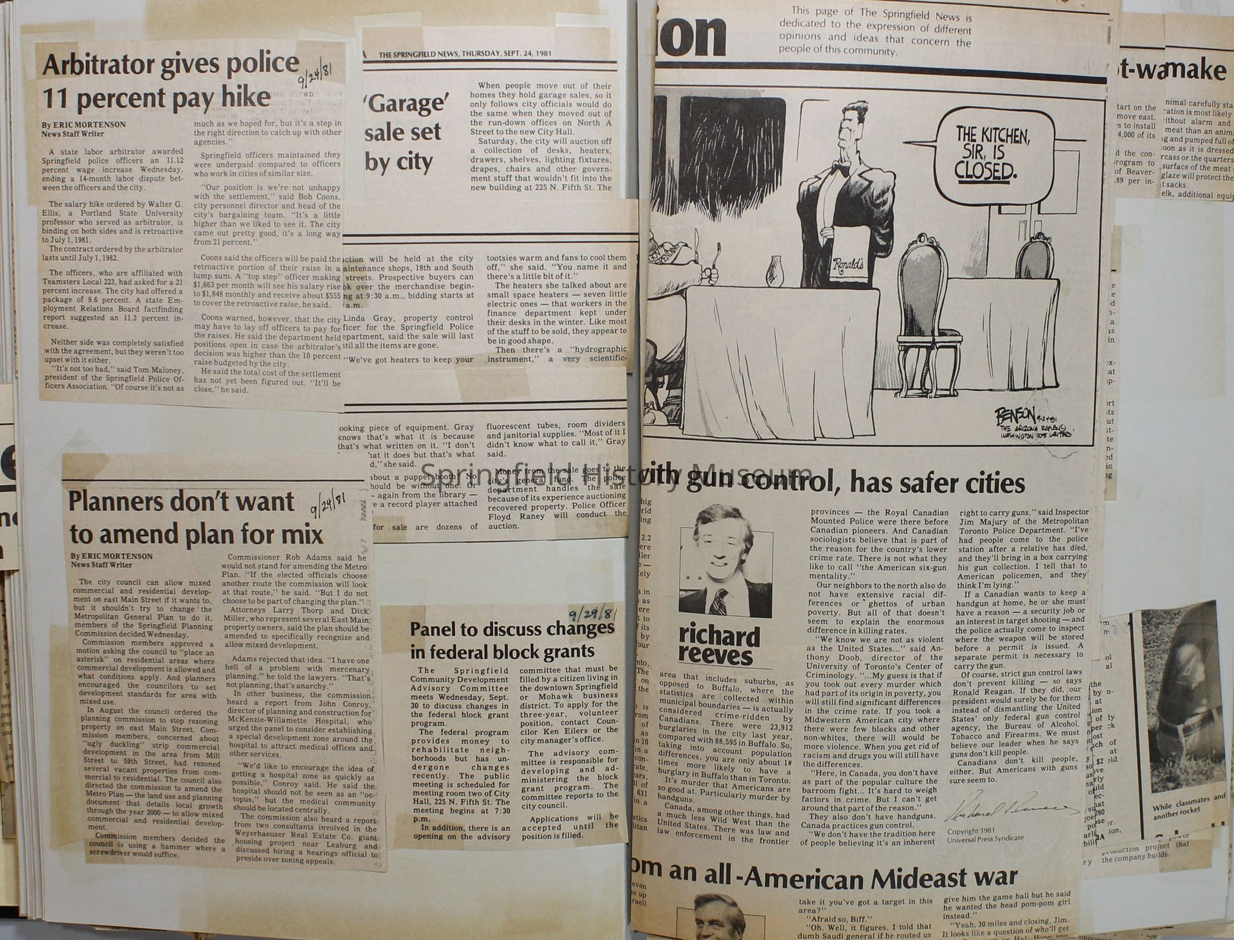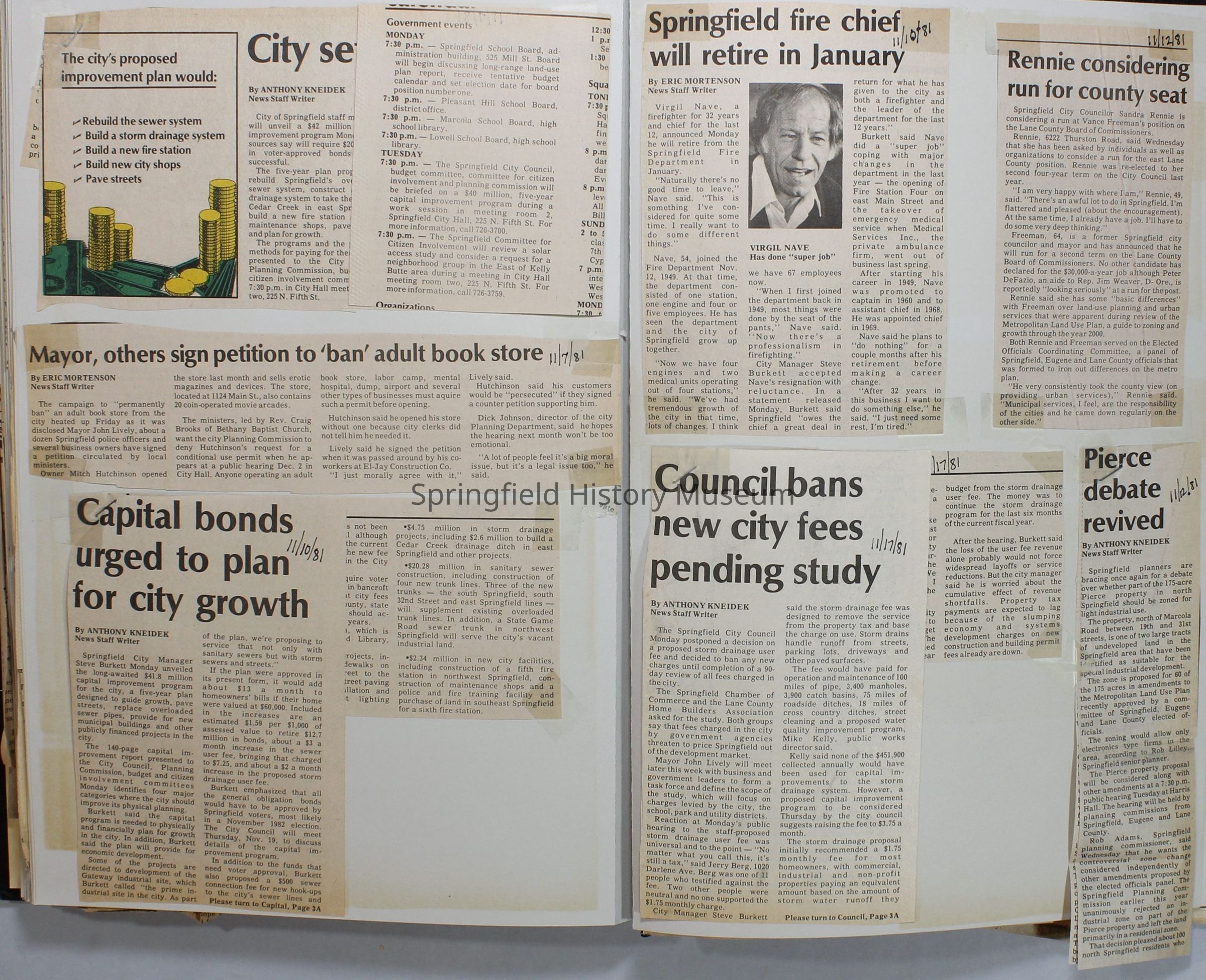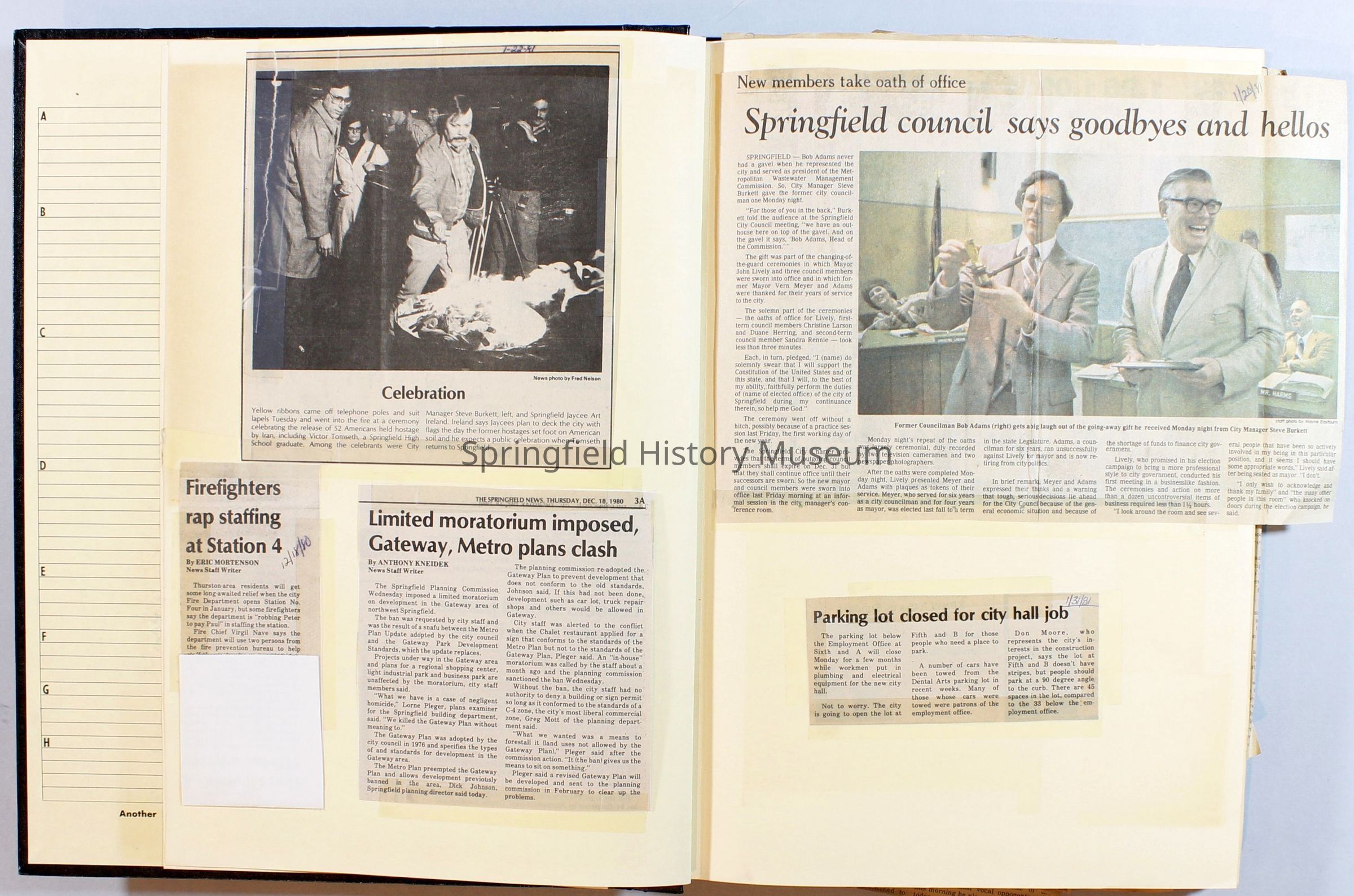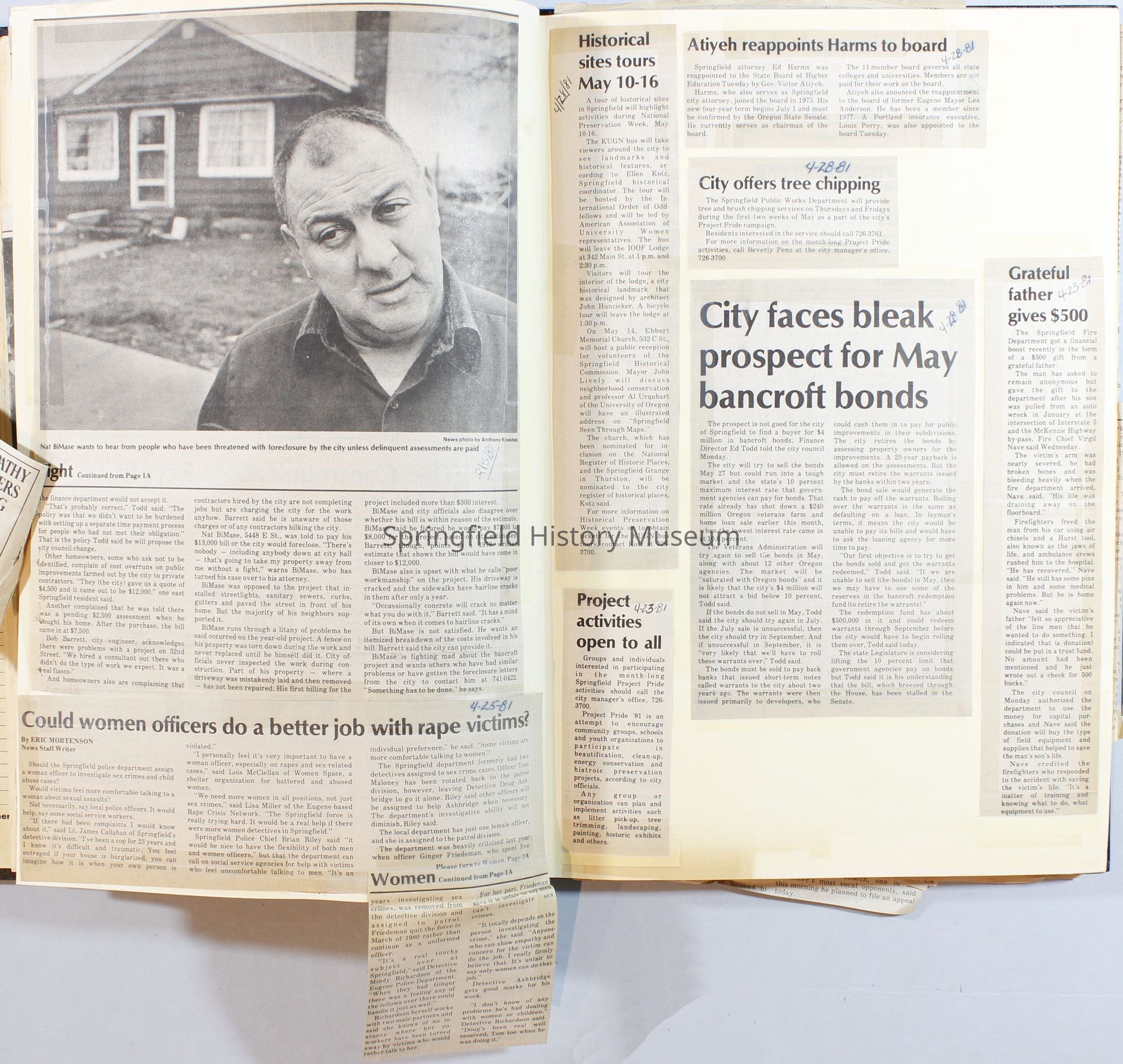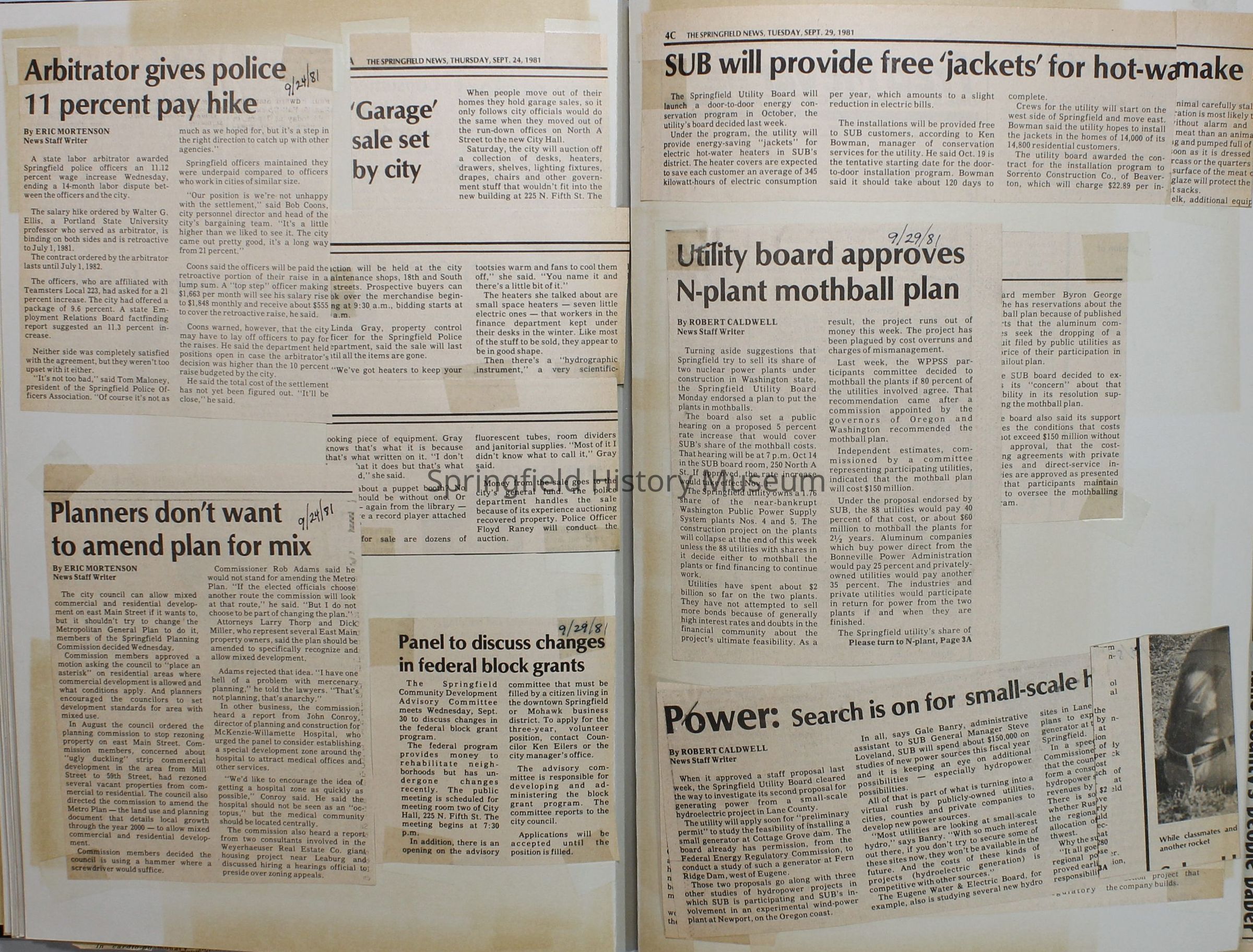 Scrapbook on the government of Springfield, Oregon. Newspaper articles from the Springfield News, 1981.