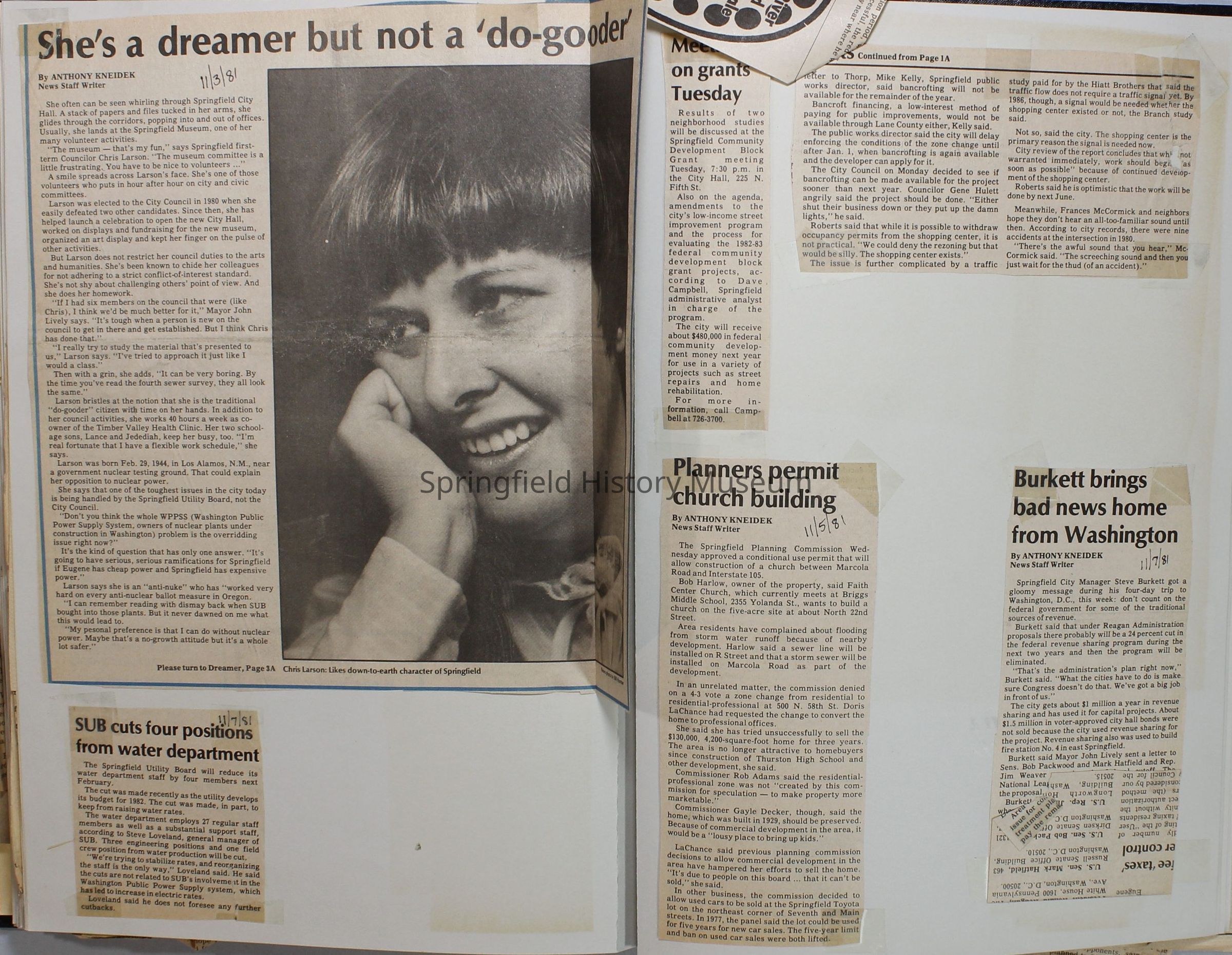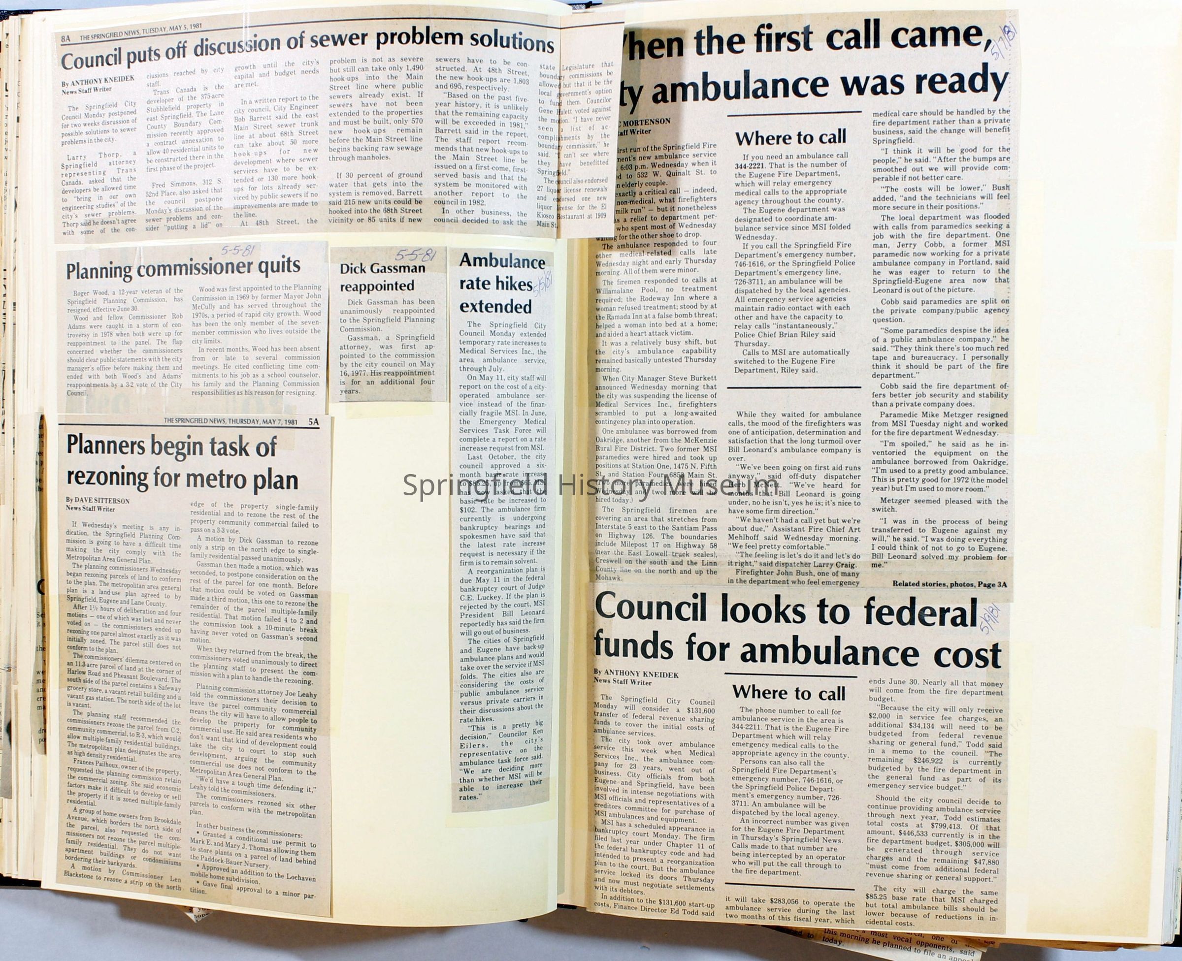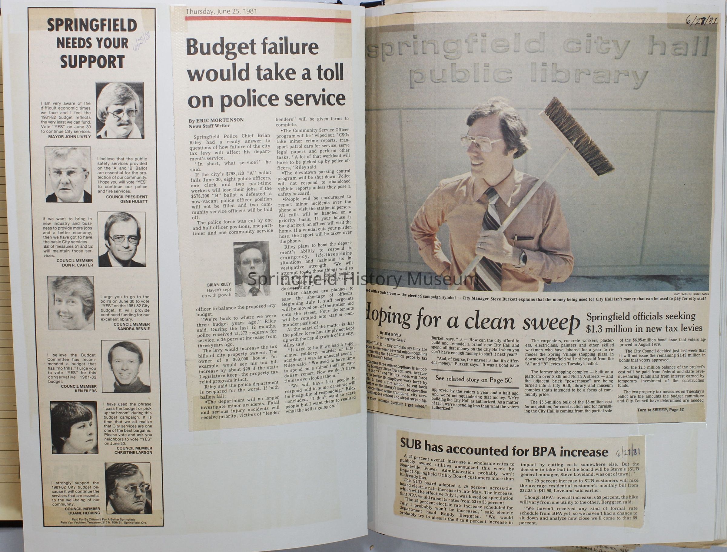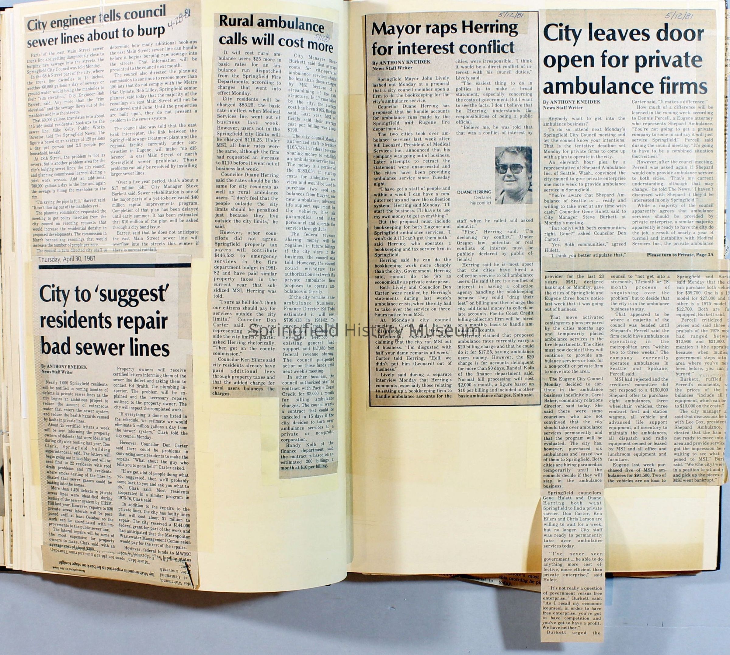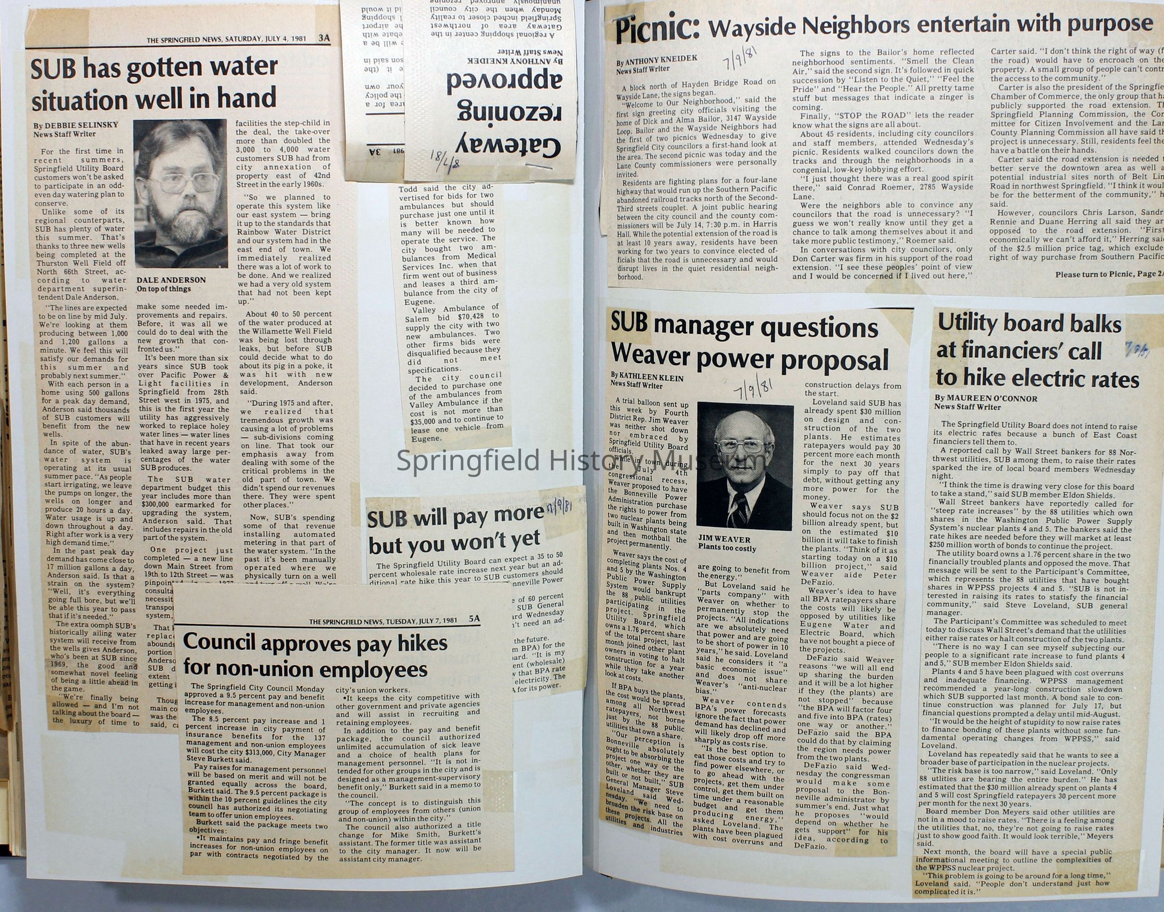Scrapbook on the government of Springfield, Oregon. Newspaper articles from the Springfield News, 1981.