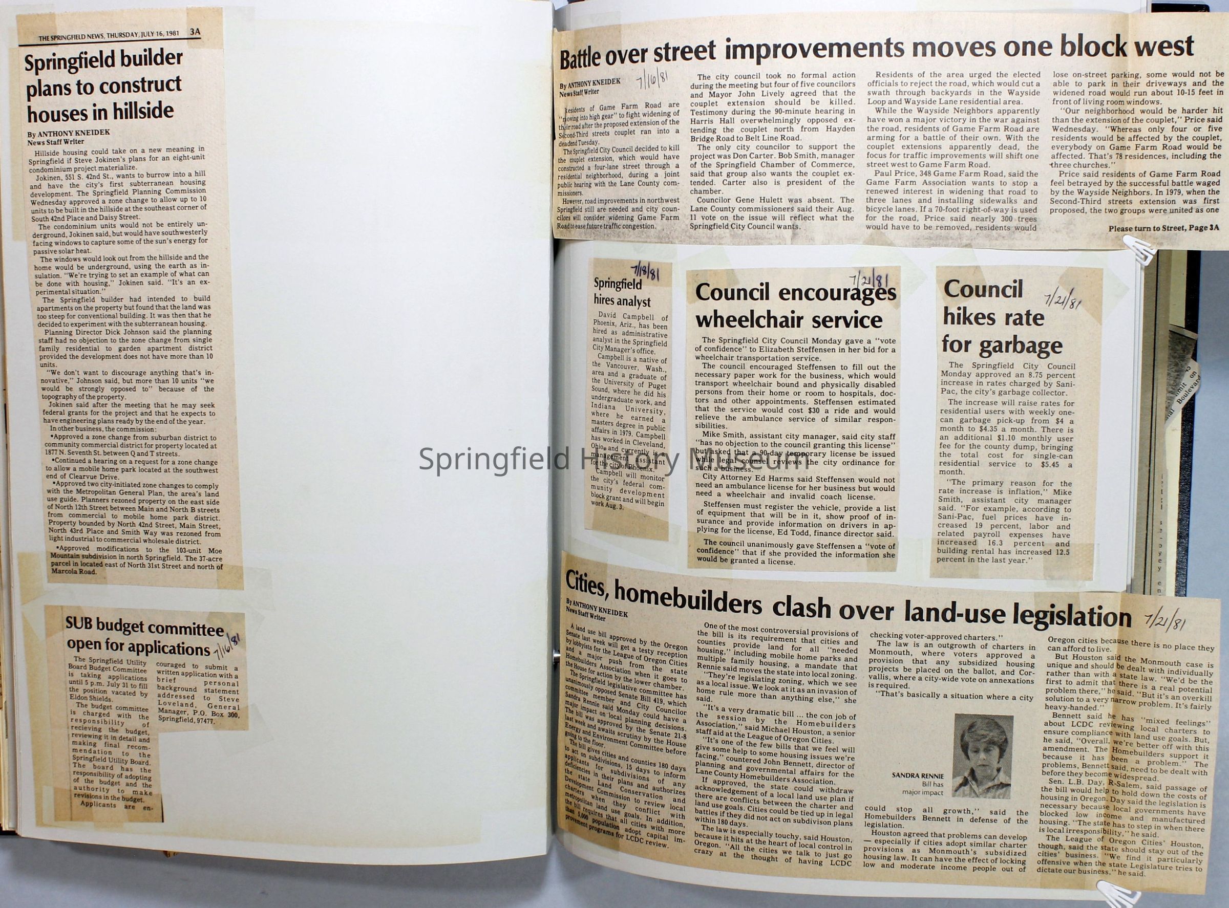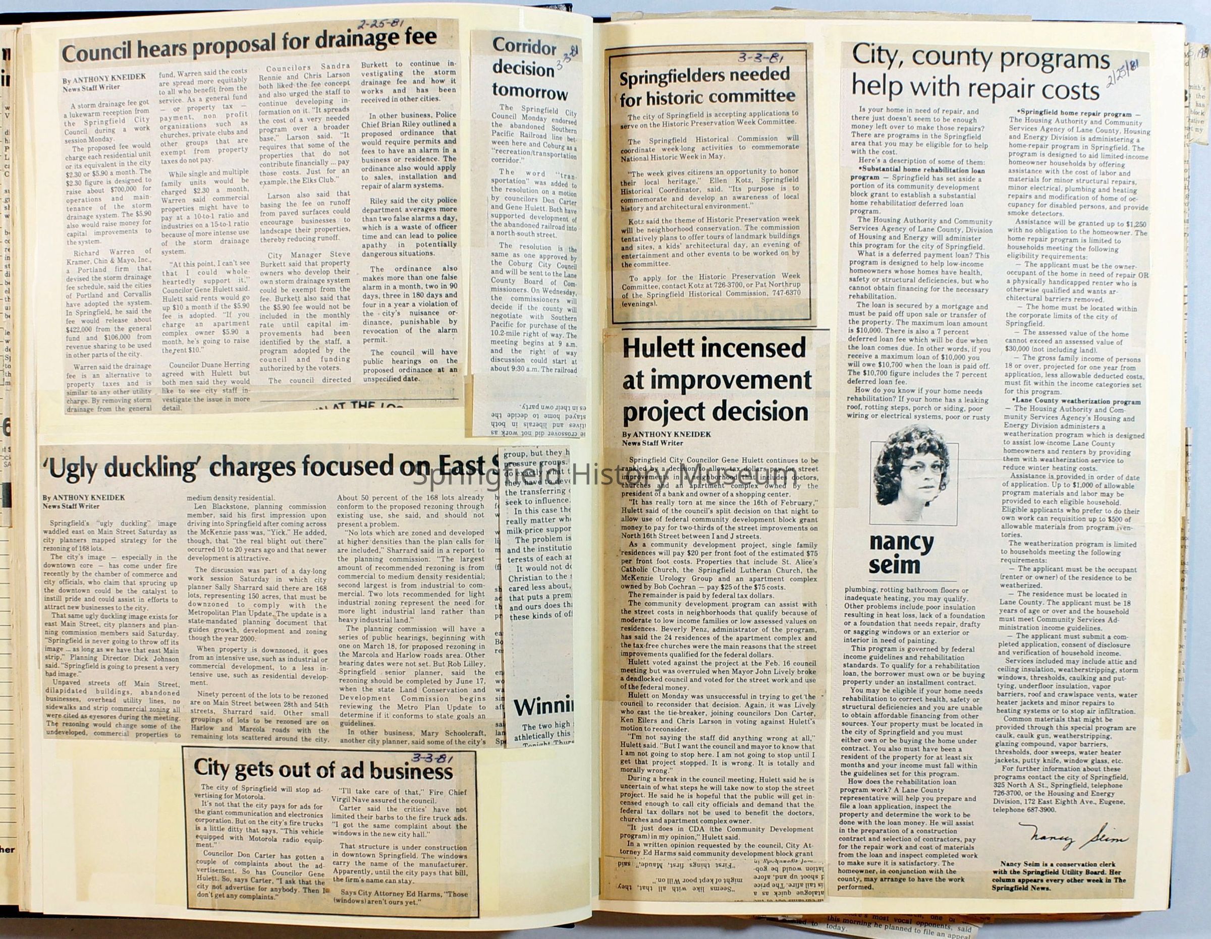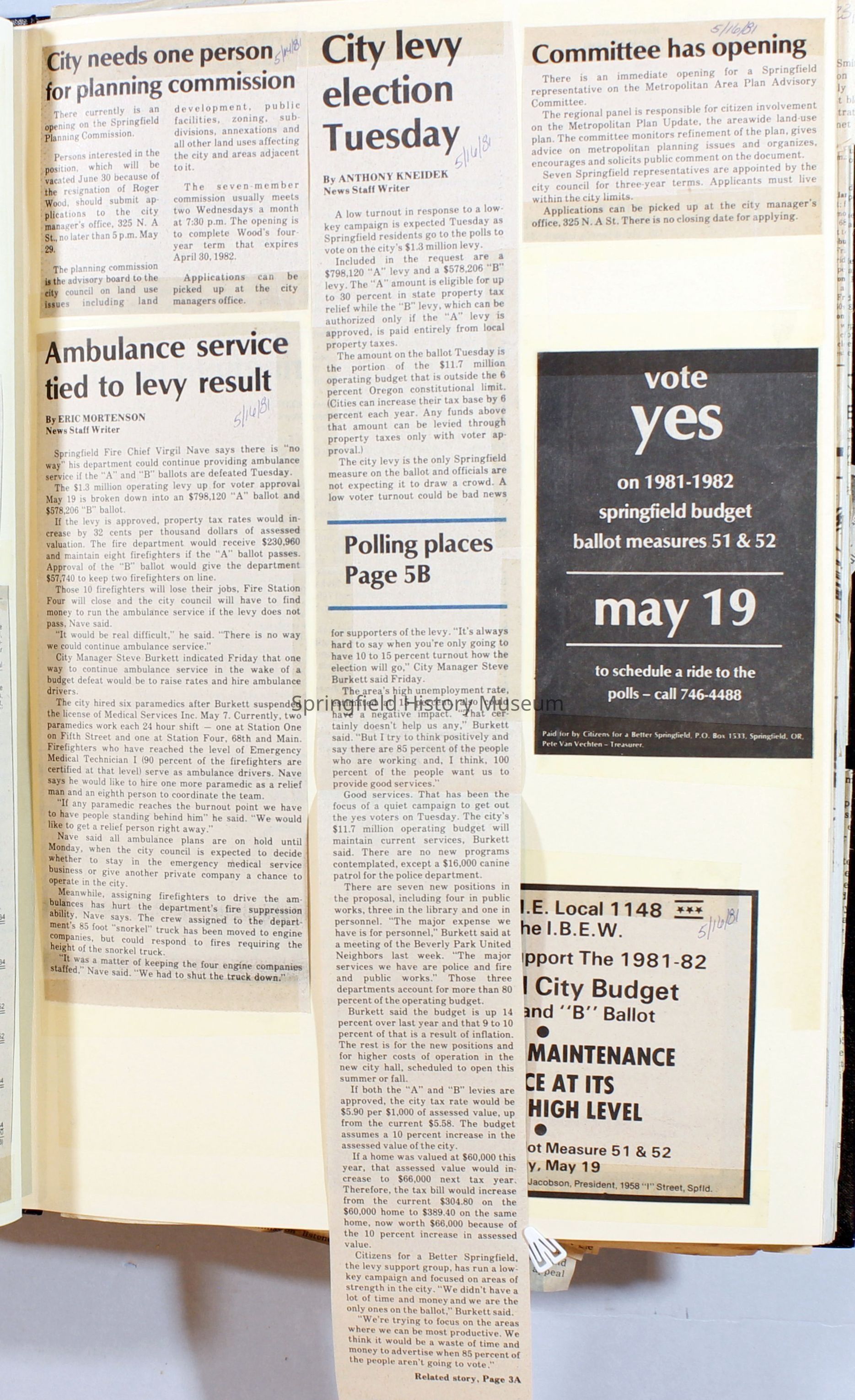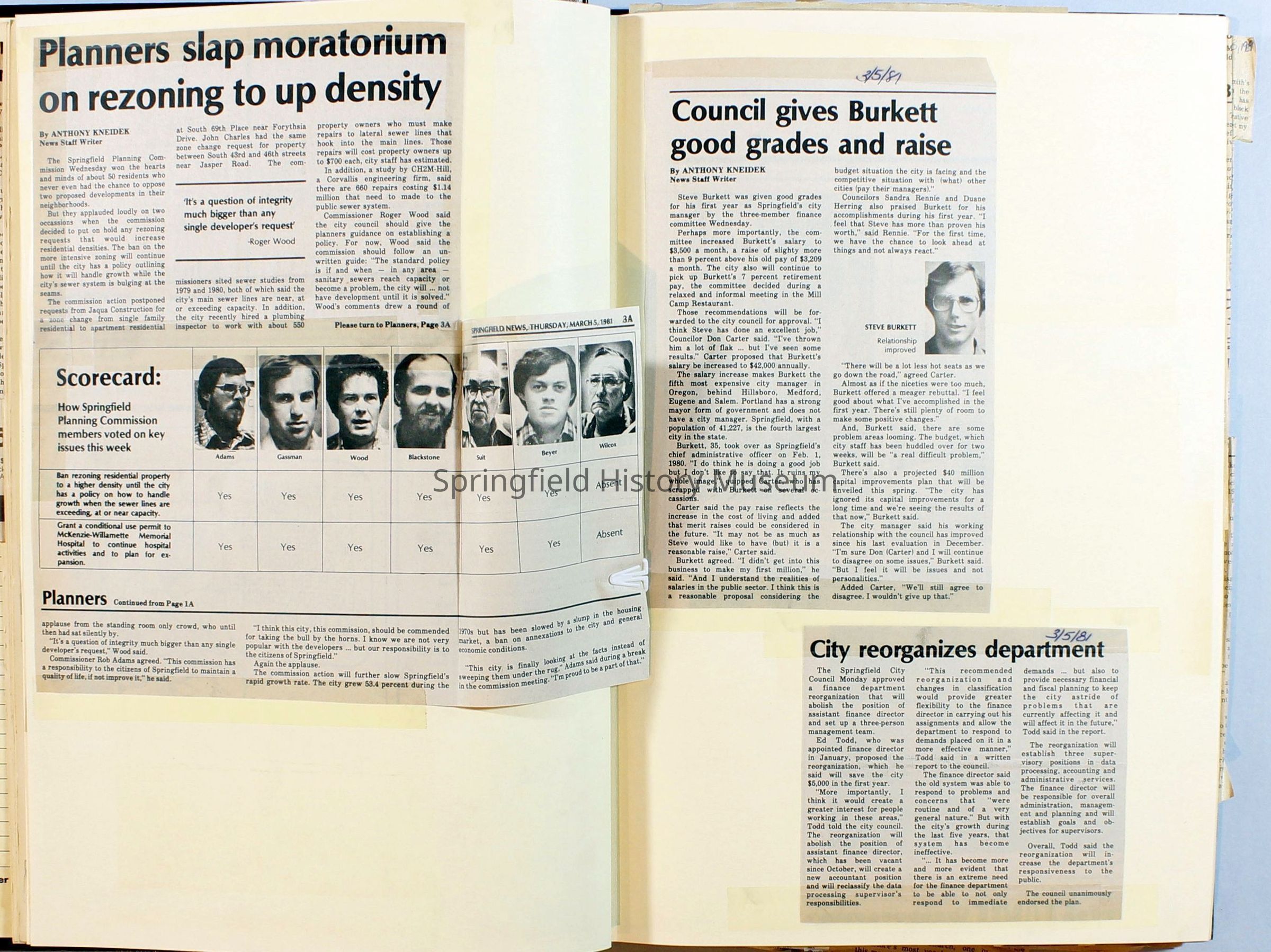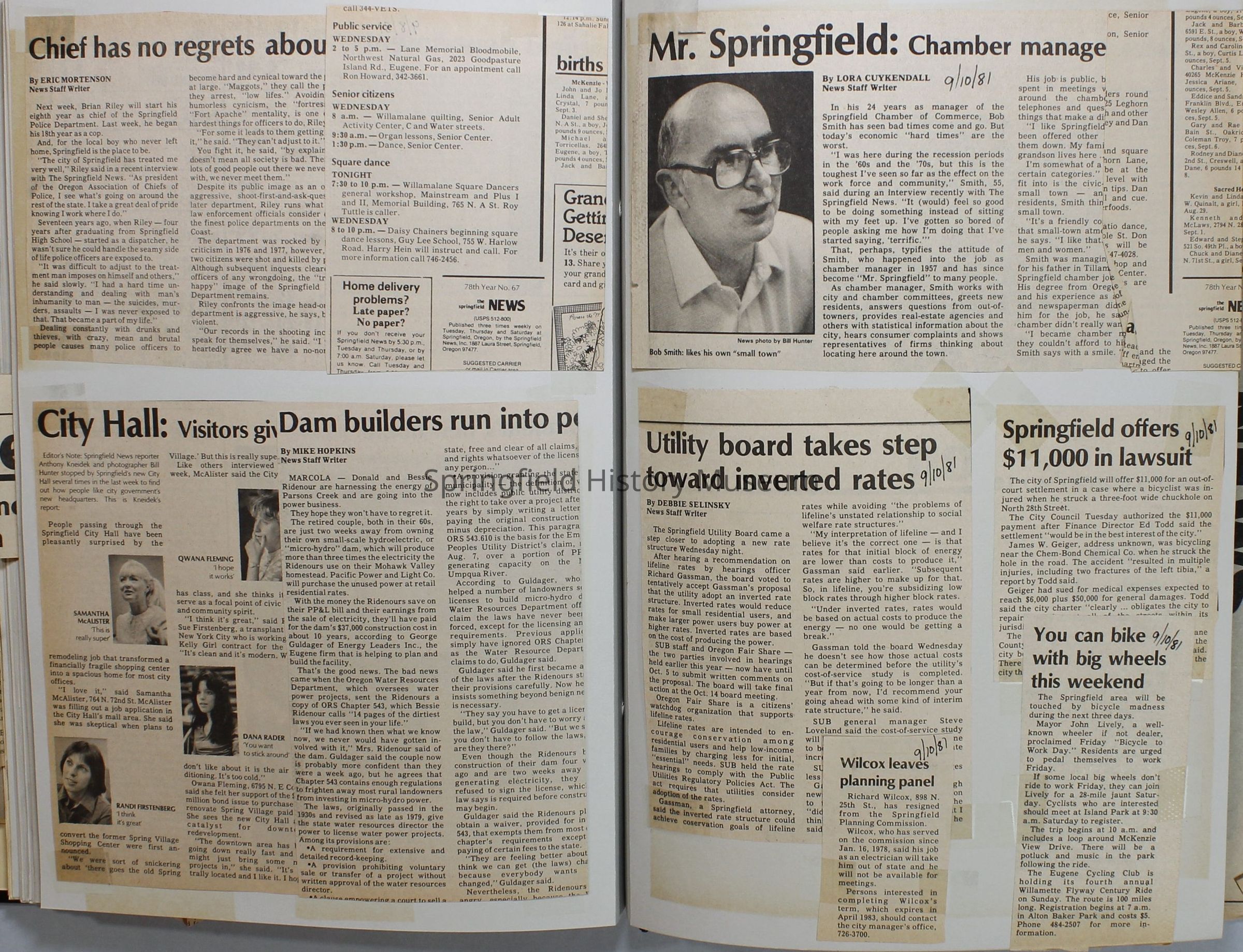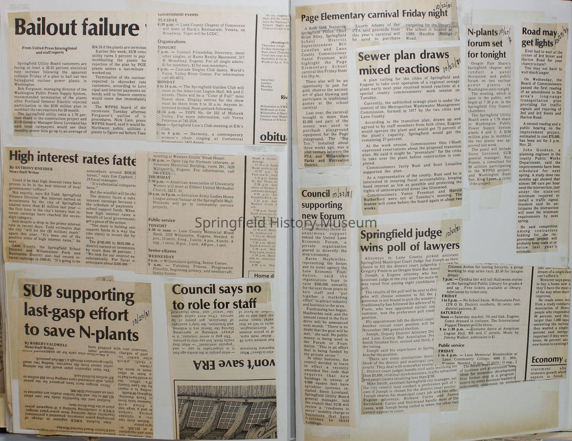 Scrapbook on the government of Springfield, Oregon. Newspaper articles from the Springfield News, 1981.