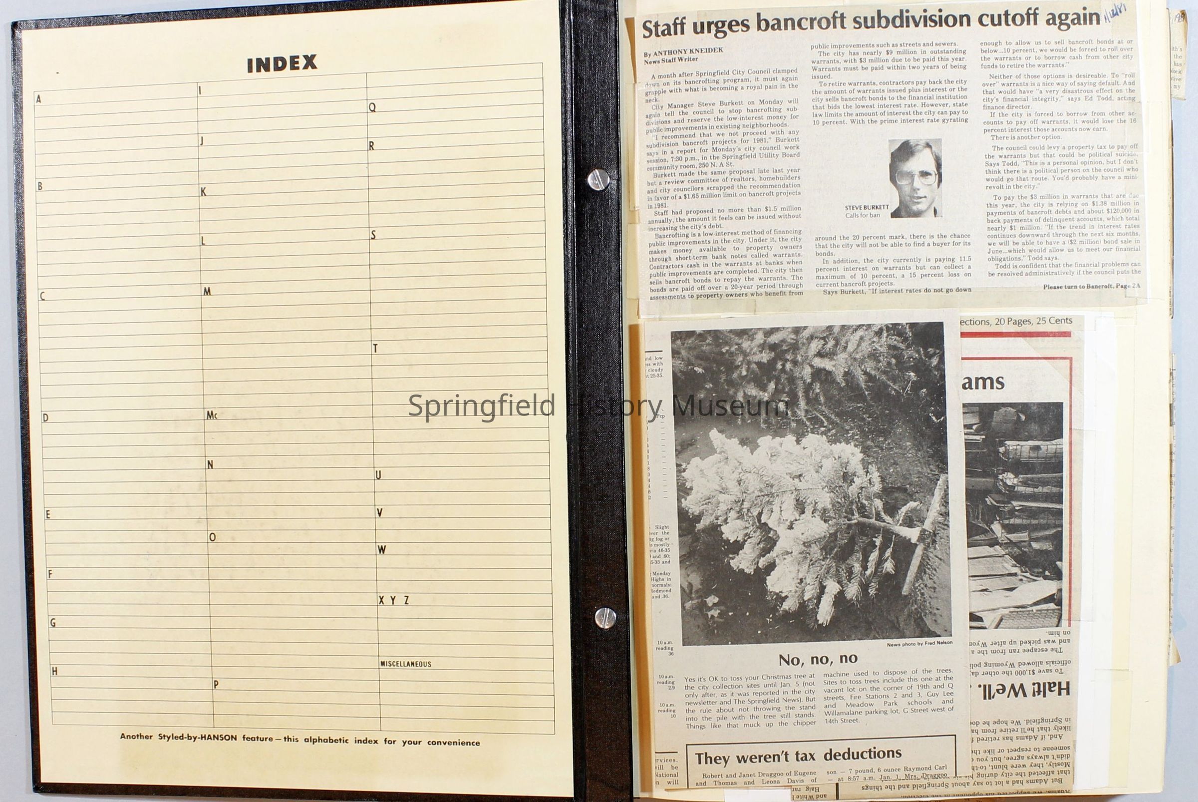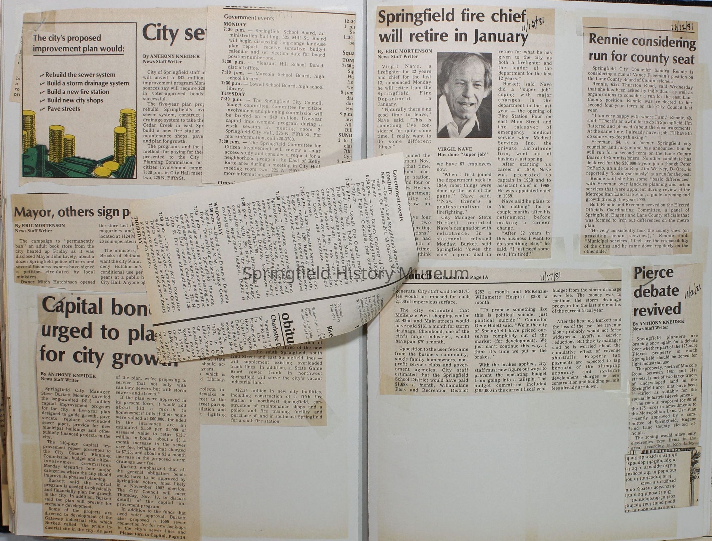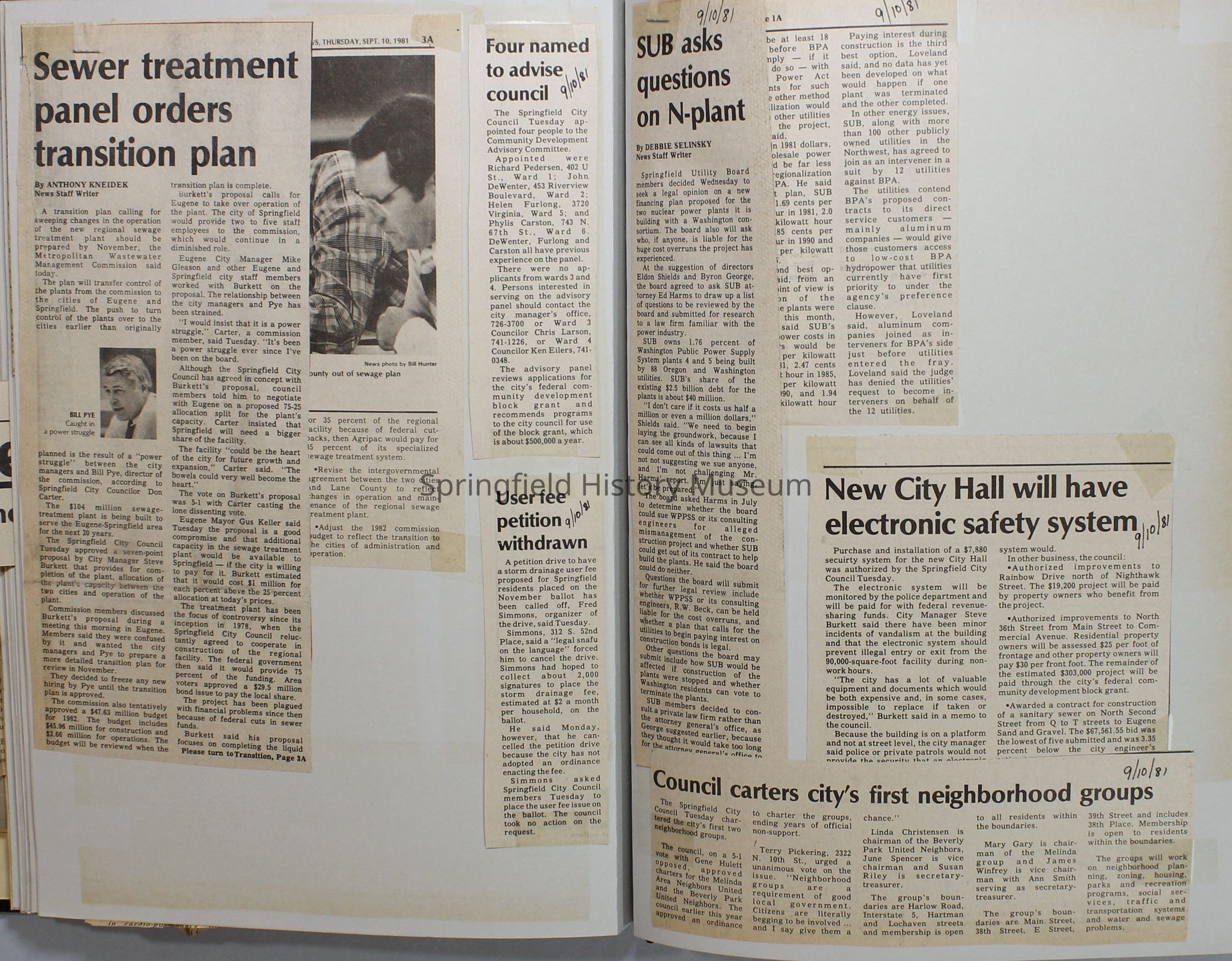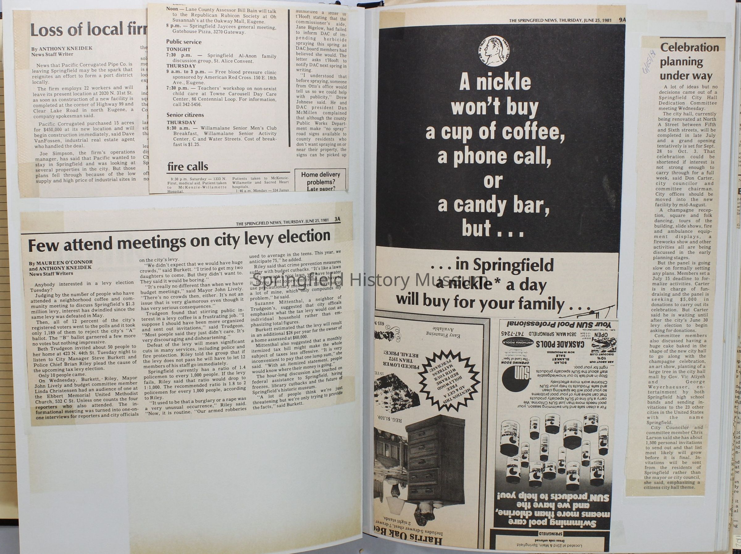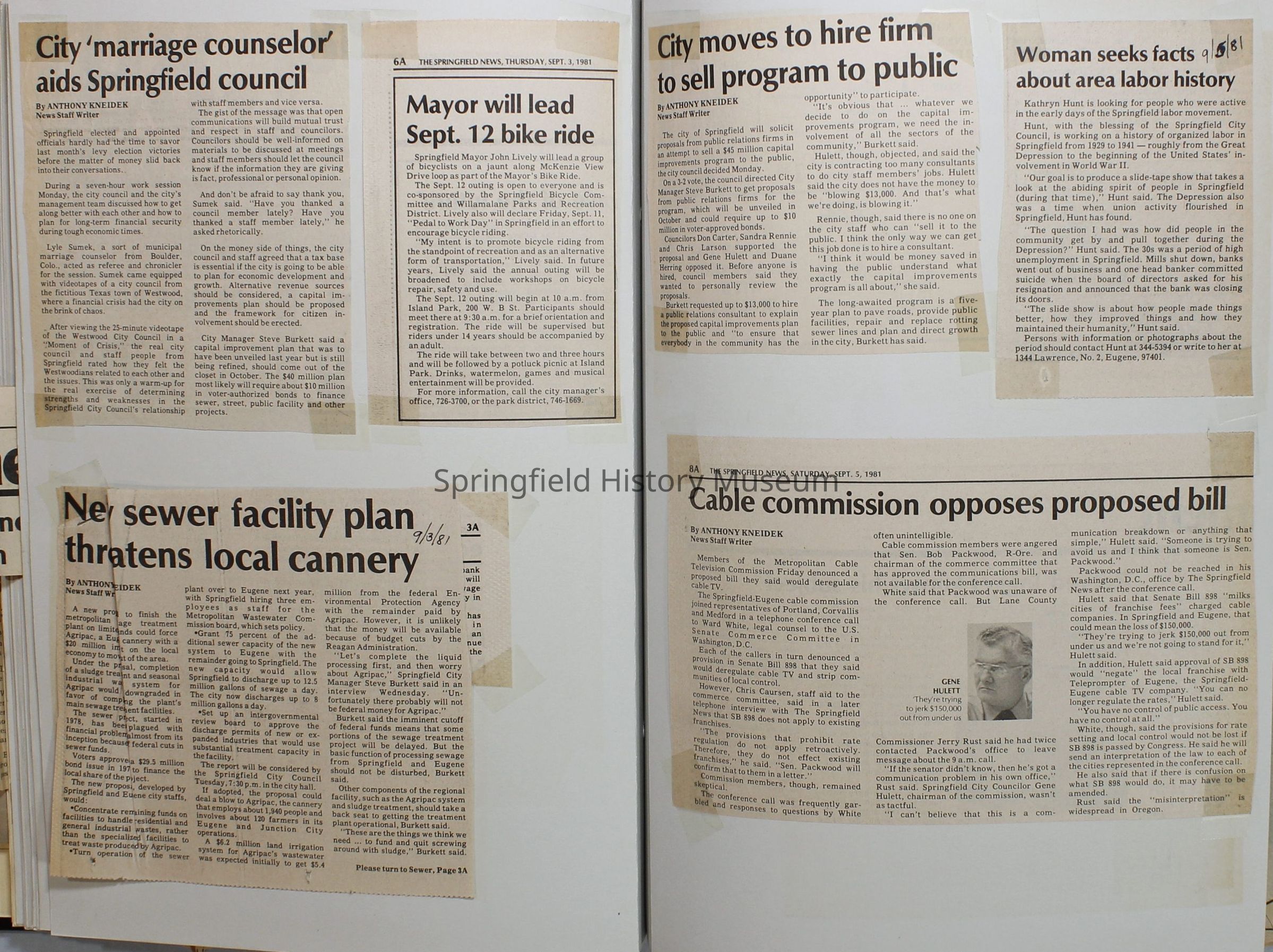 Scrapbook on the government of Springfield, Oregon. Newspaper articles from the Springfield News, 1981.