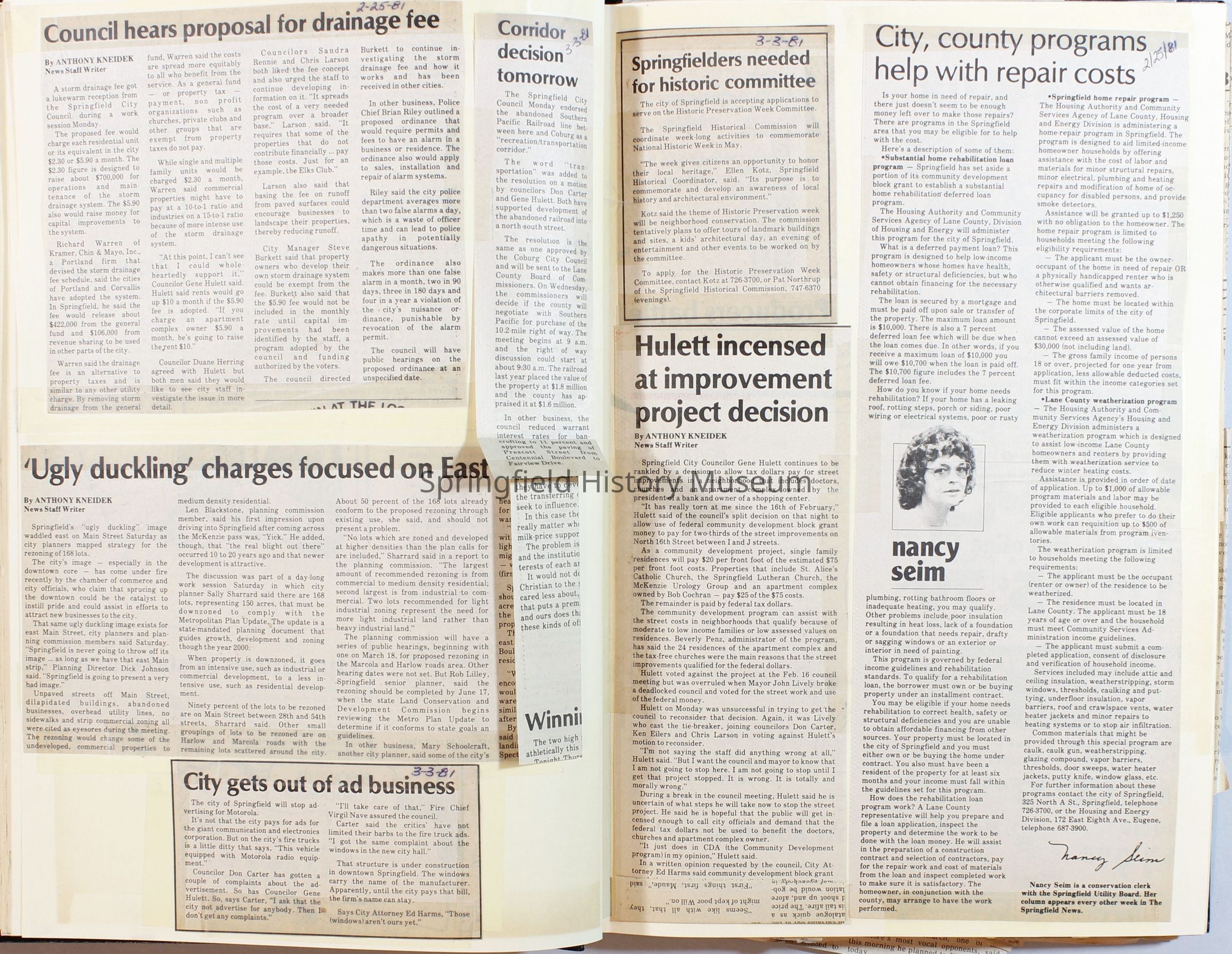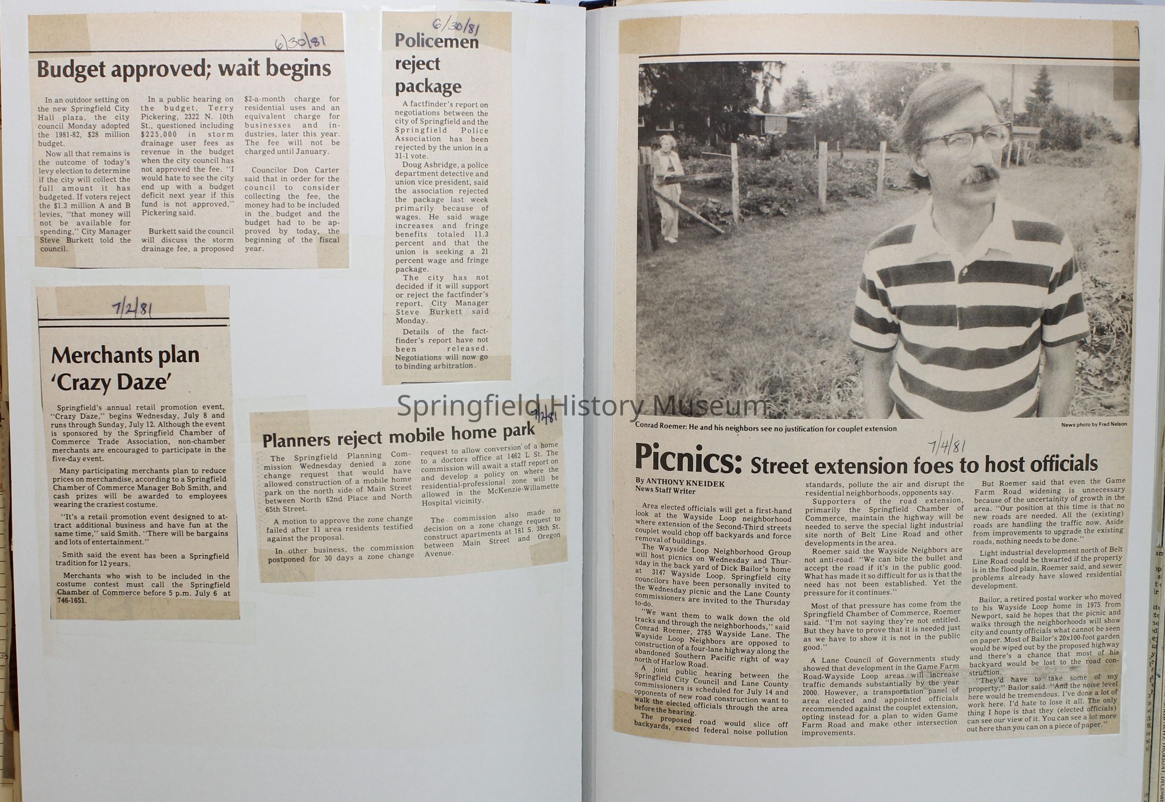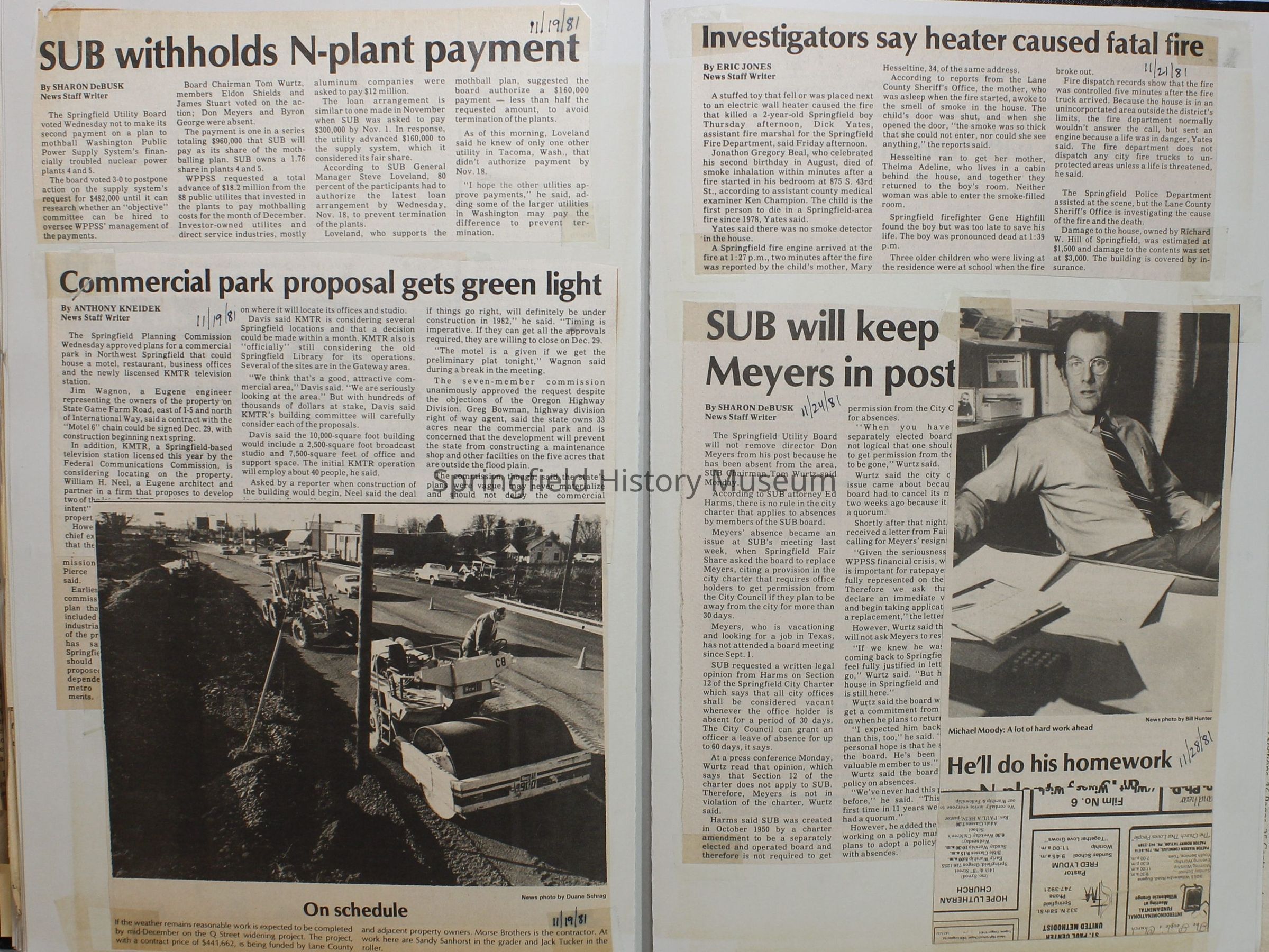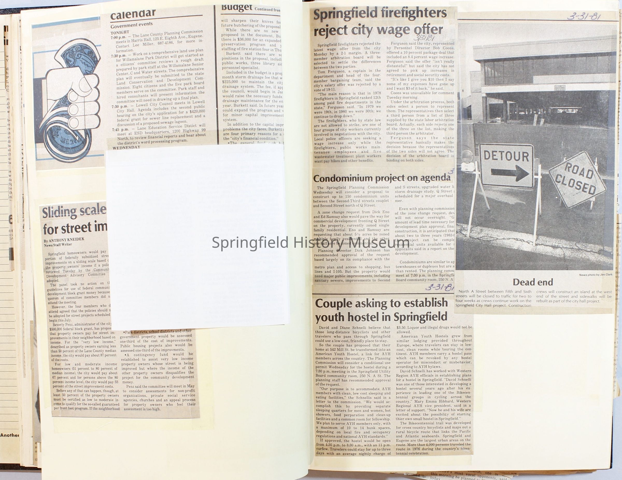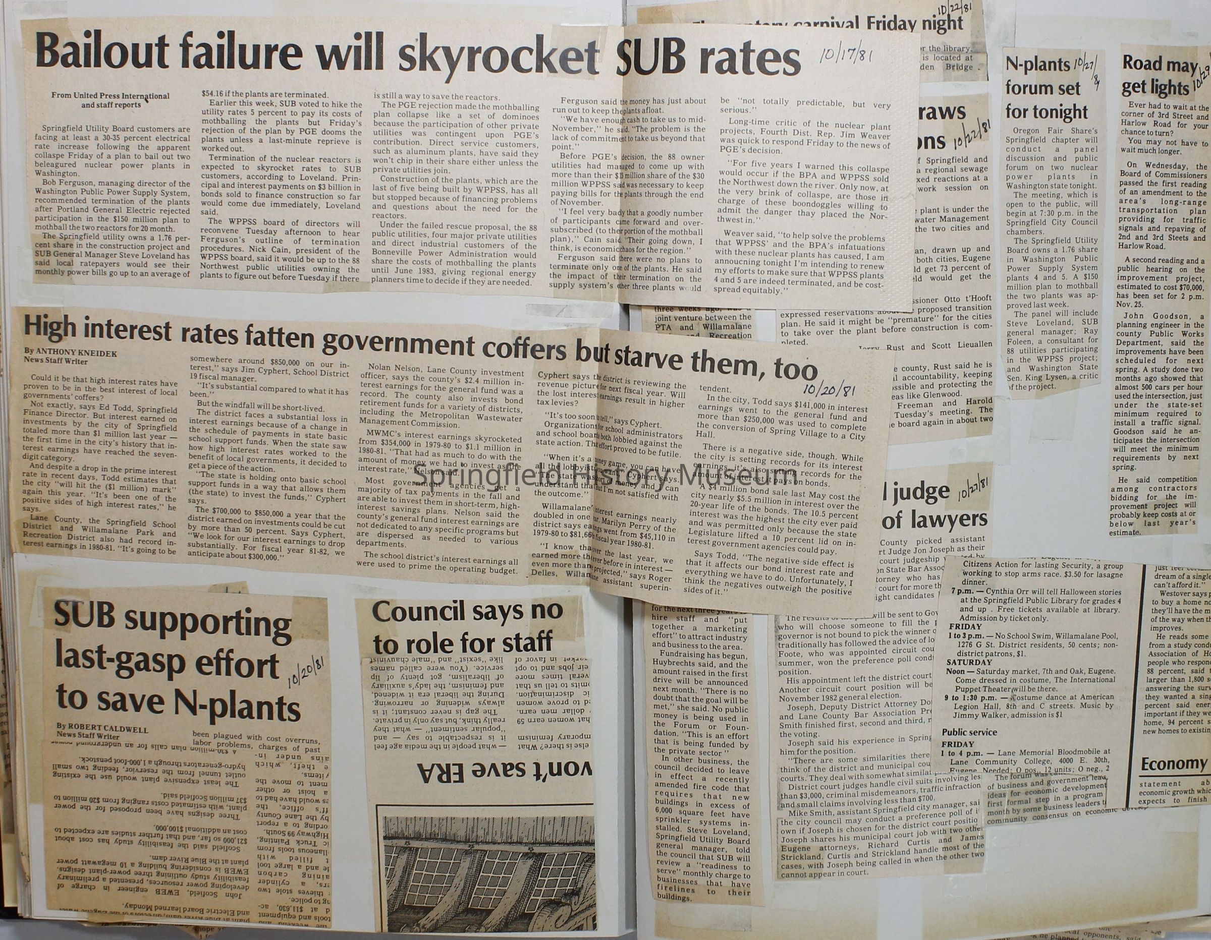 Scrapbook on the government of Springfield, Oregon. Newspaper articles from the Springfield News, 1981.