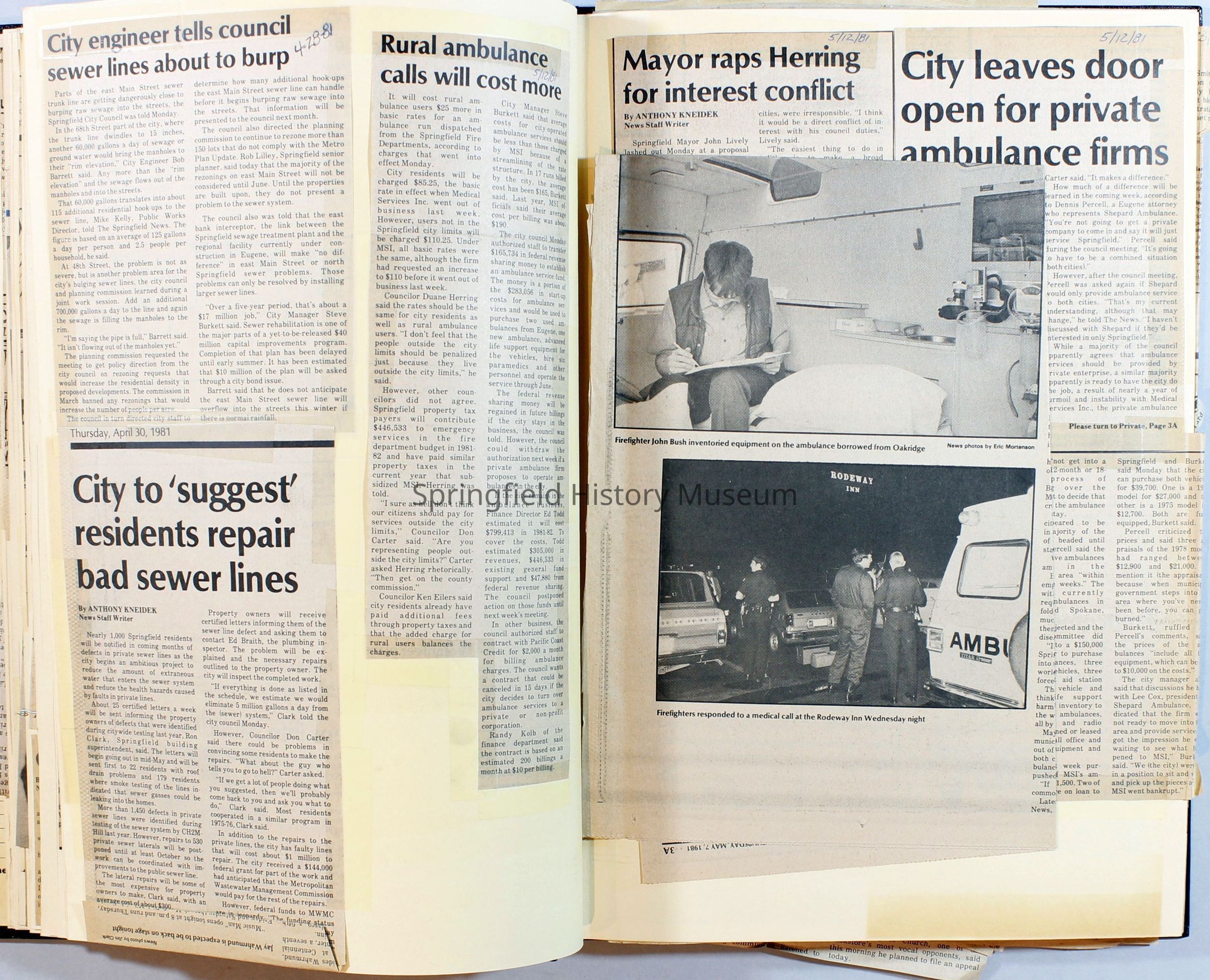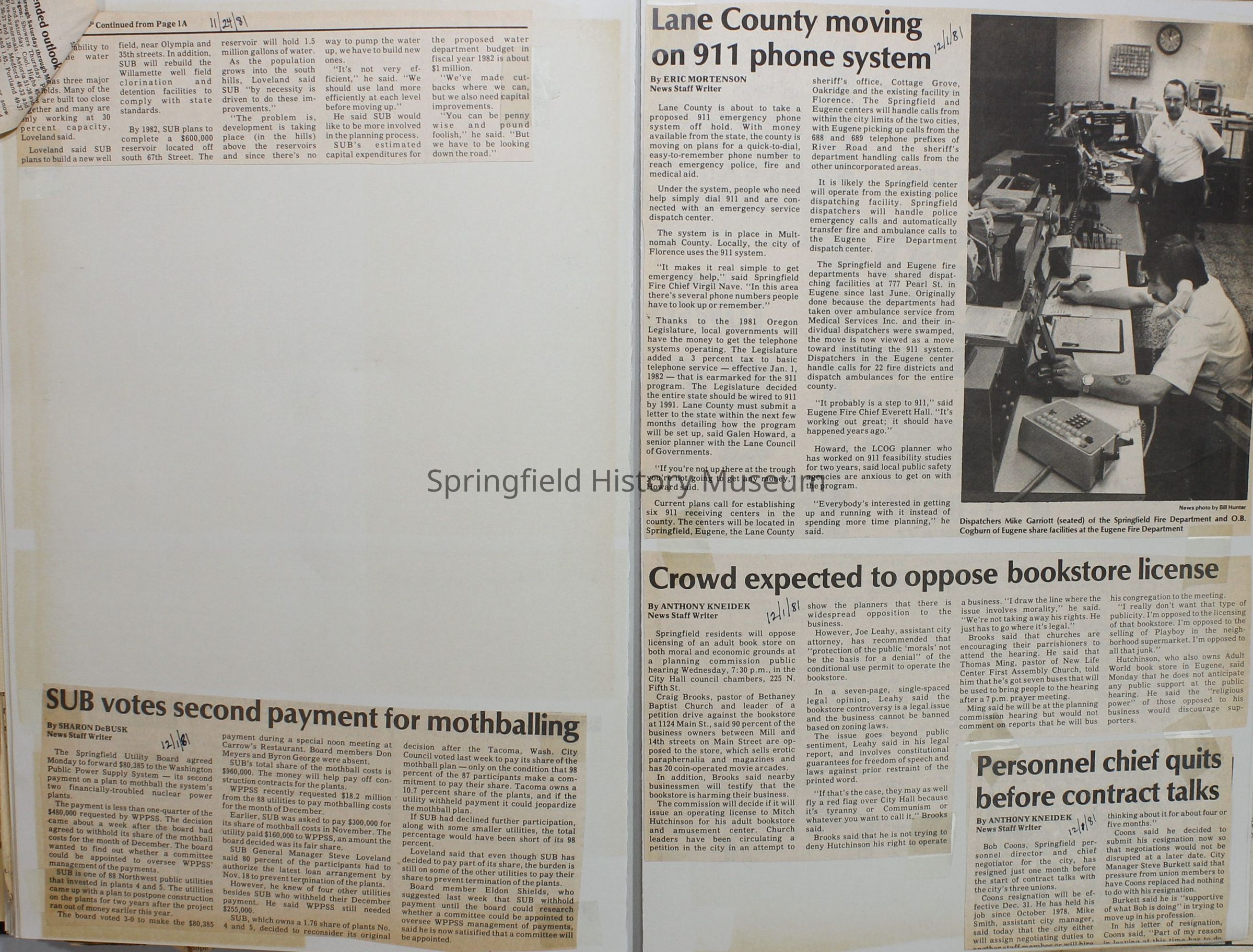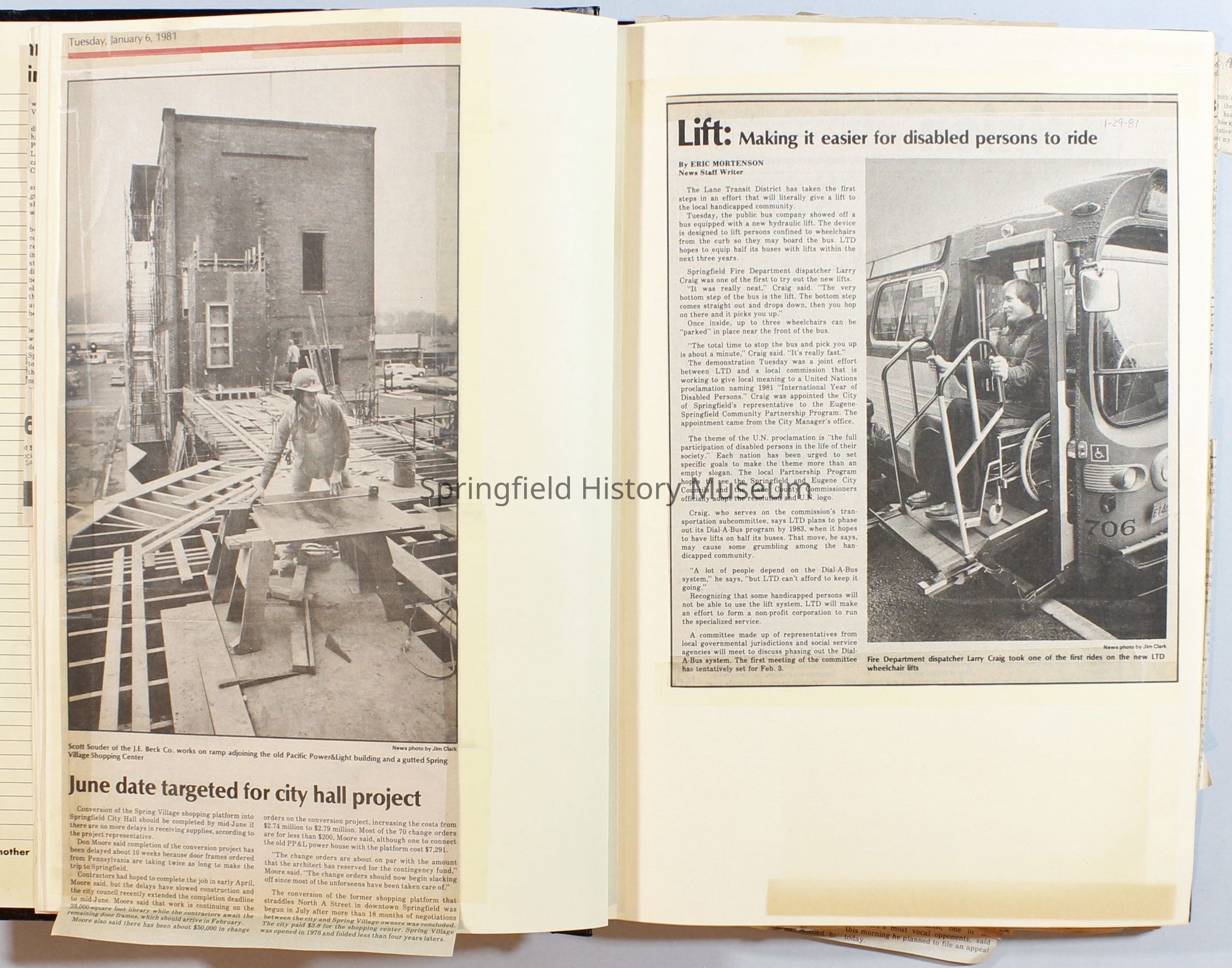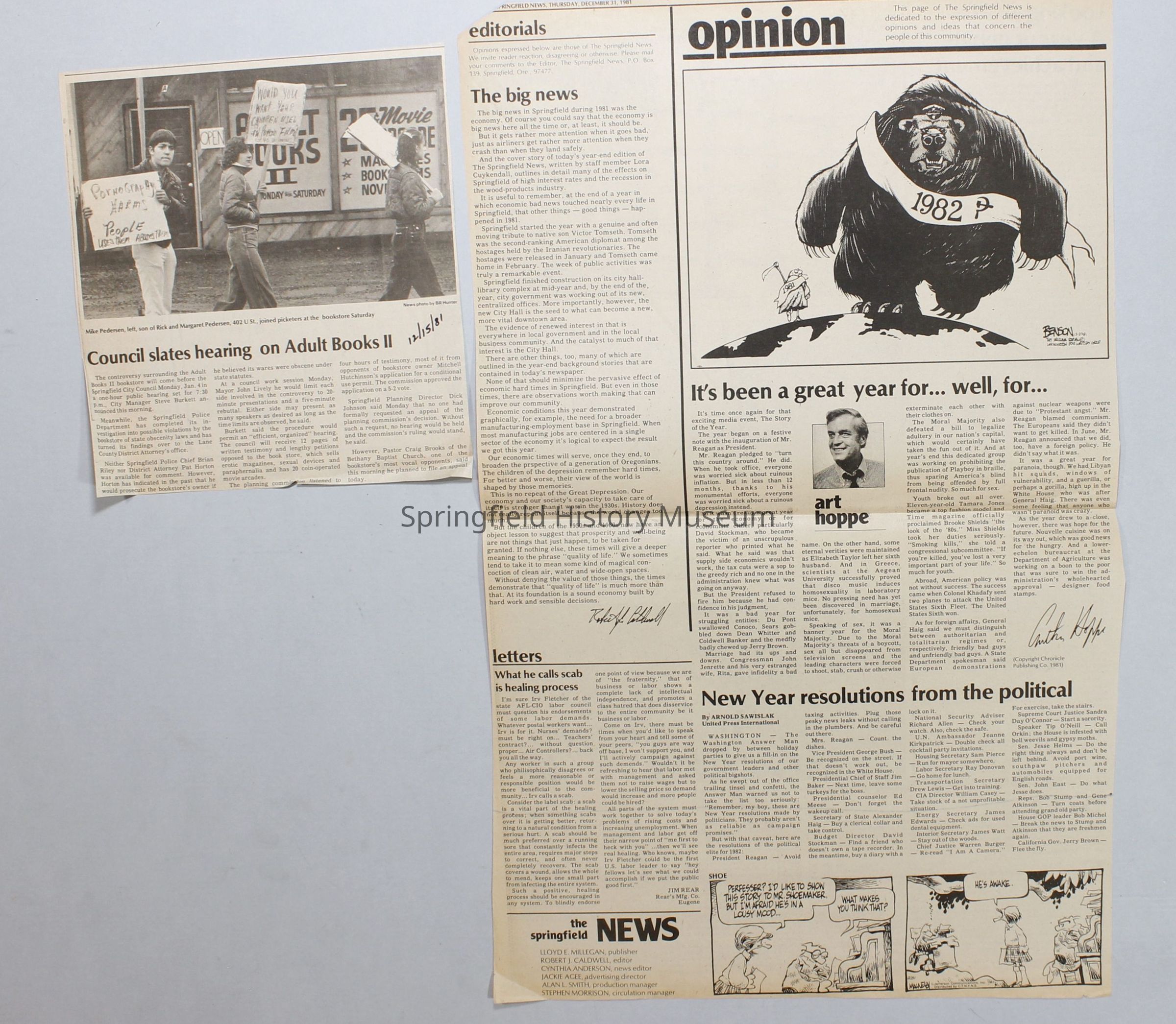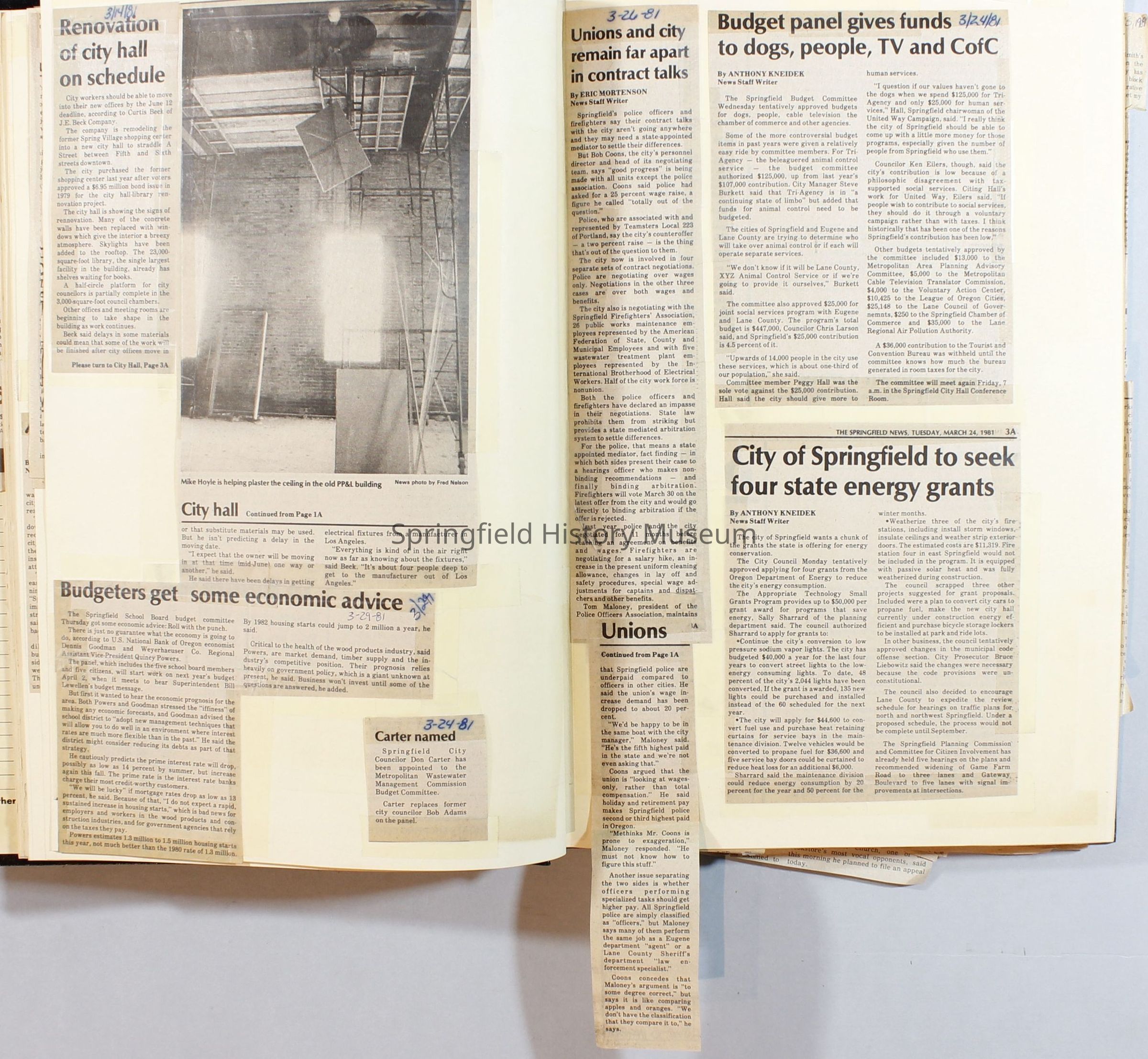 Scrapbook on the government of Springfield, Oregon. Newspaper articles from the Springfield News, 1981.