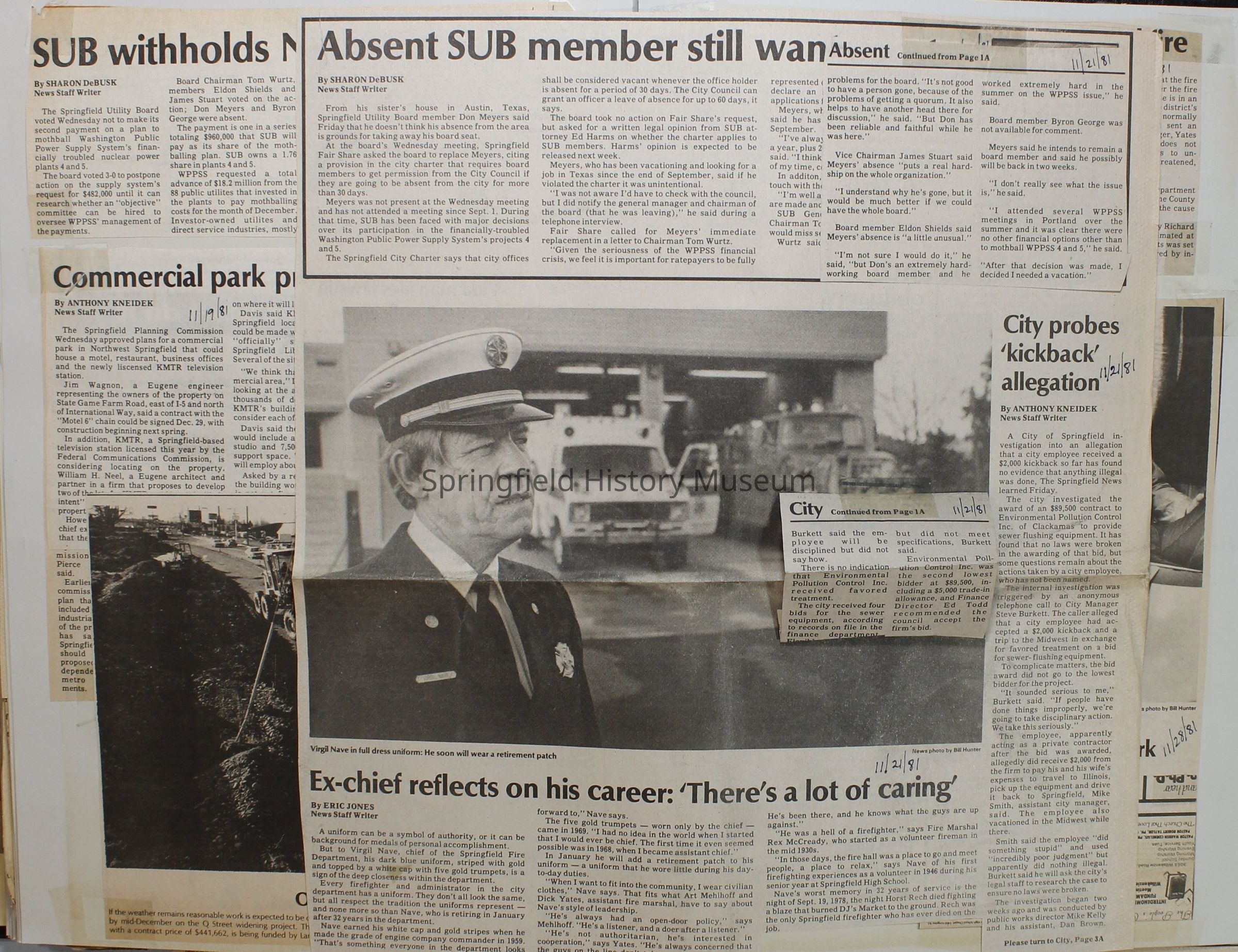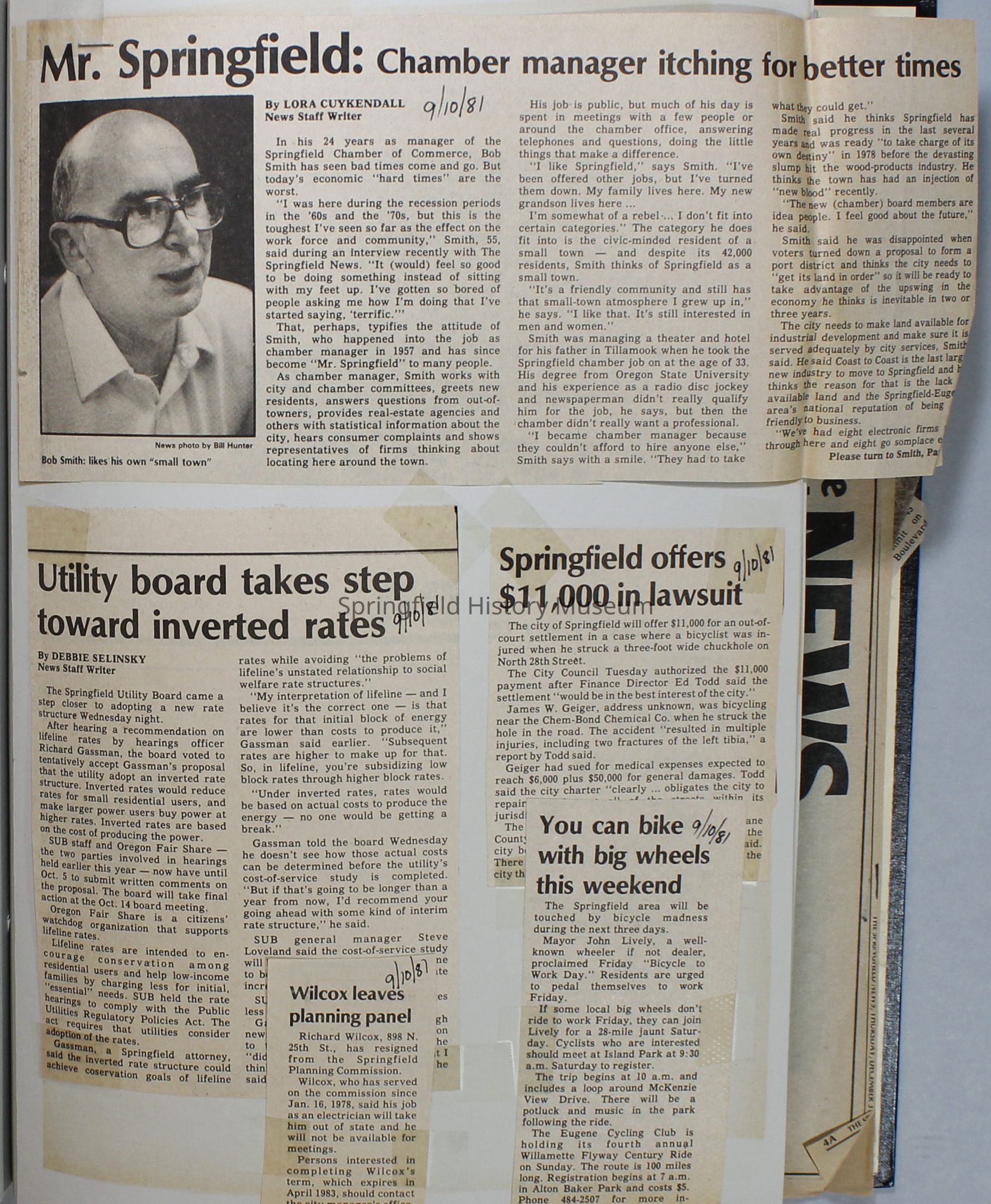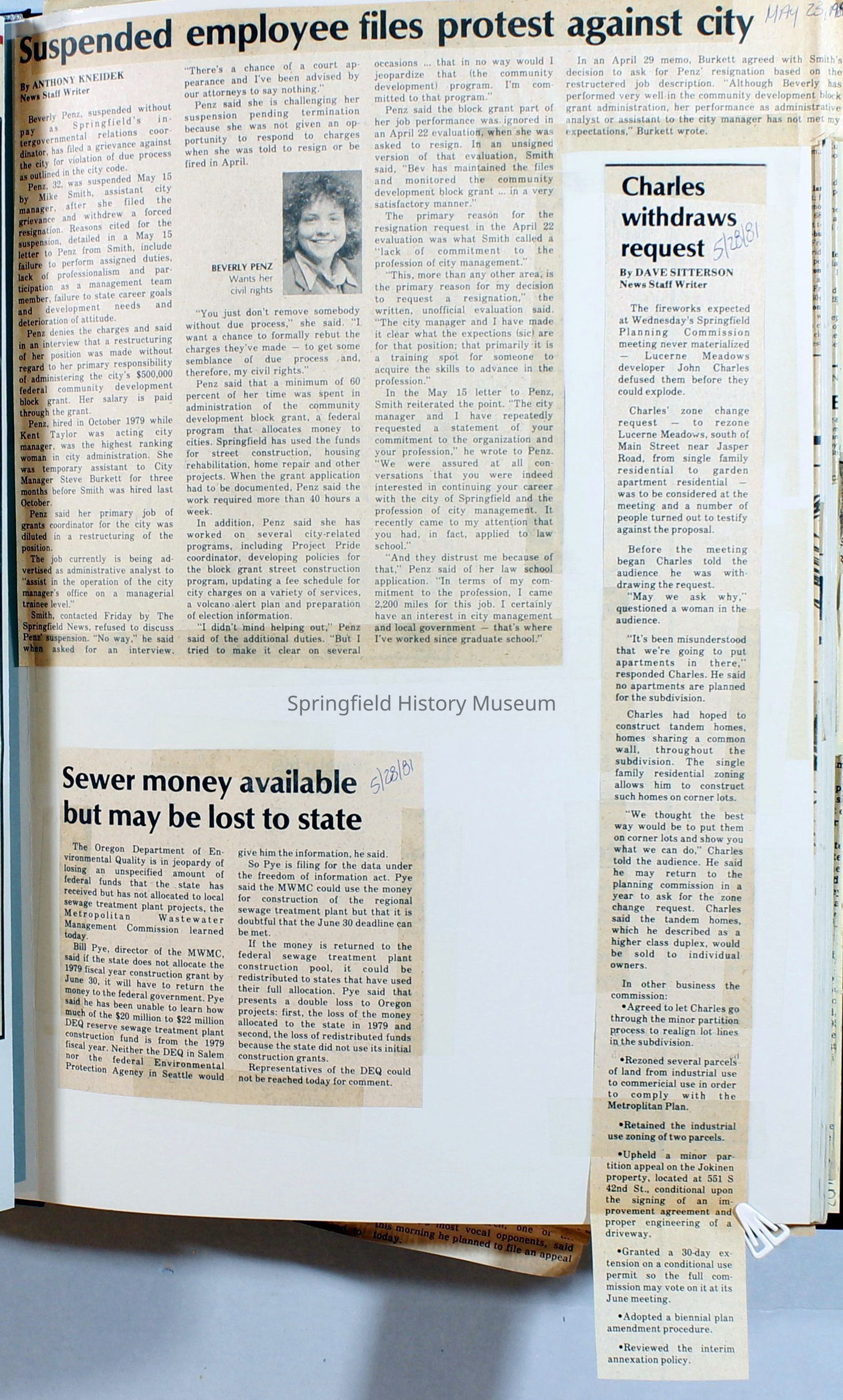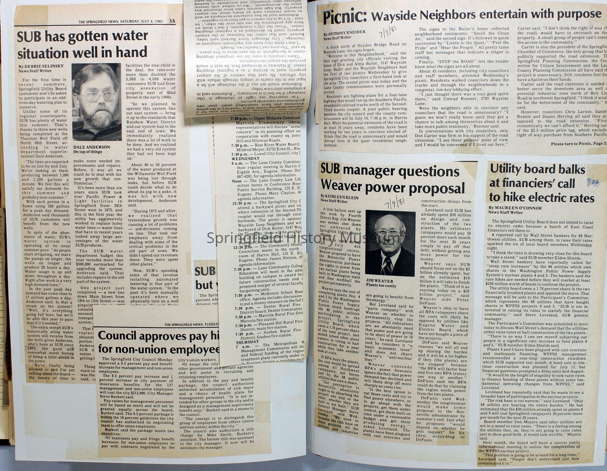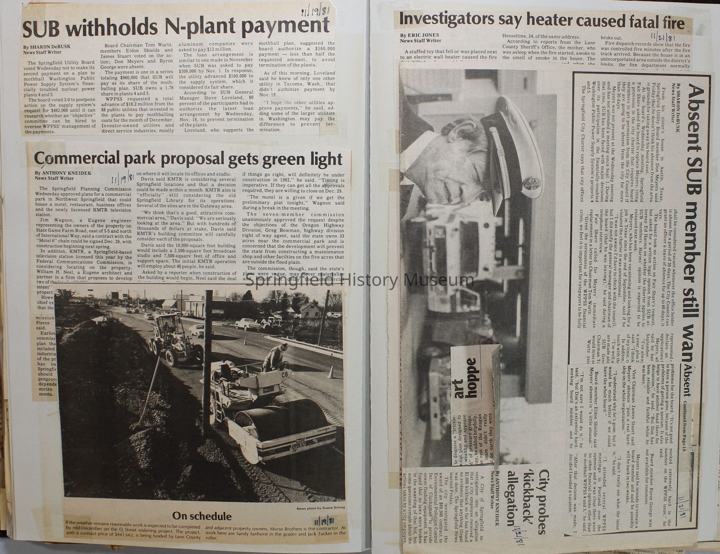 Scrapbook on the government of Springfield, Oregon. Newspaper articles from the Springfield News, 1981.